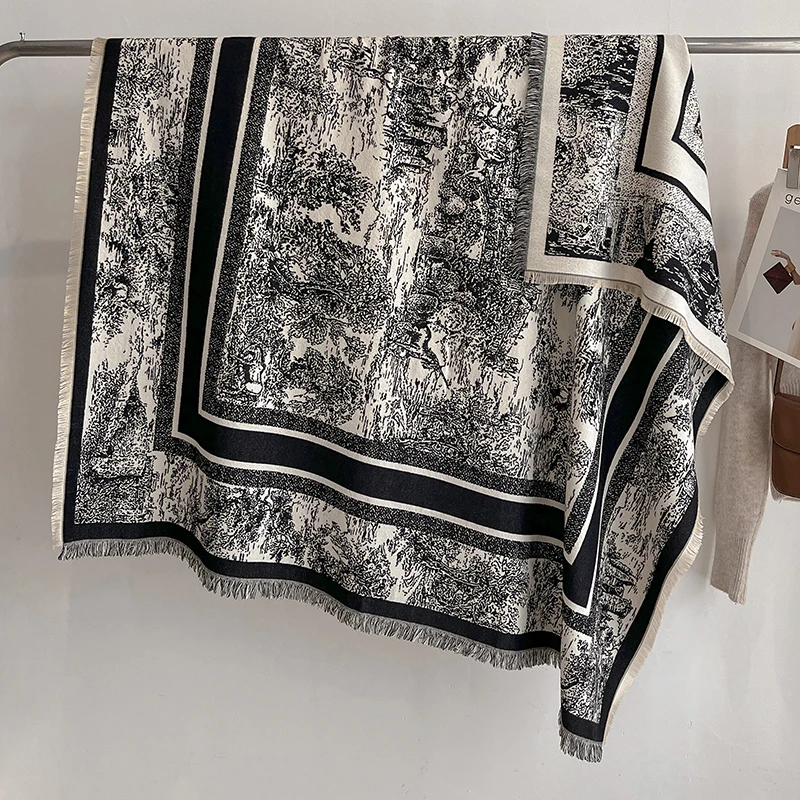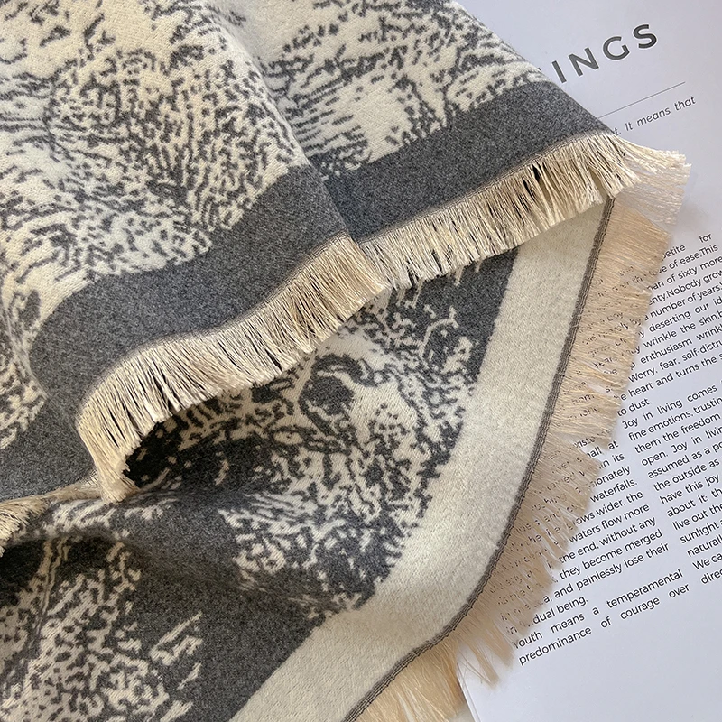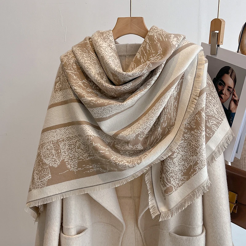 Sciarpa invernale in cashmere di marca di lusso 2025 per donna – Scialle stampato con griglia con nappe, caldo poncho avvolgente e foulard in pashmina