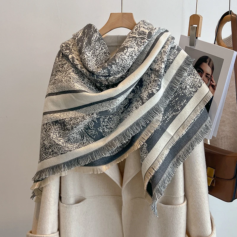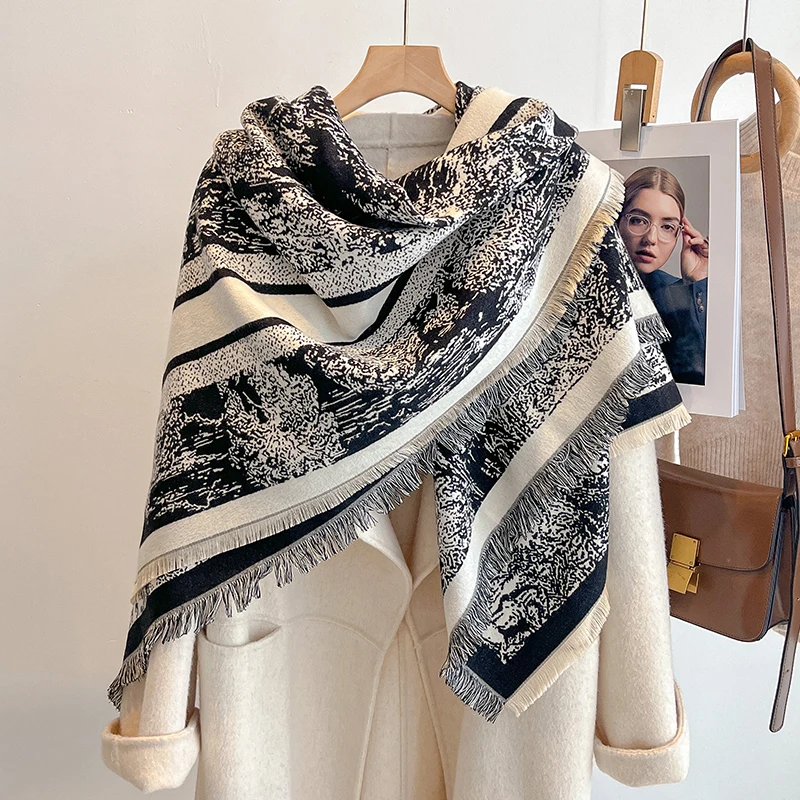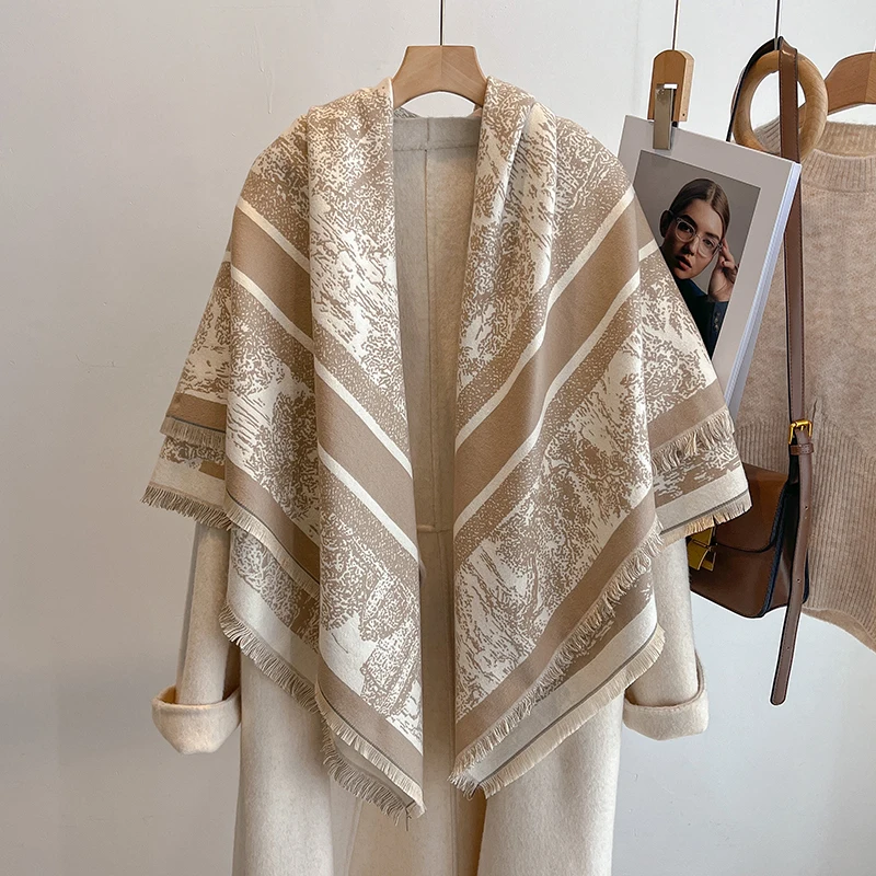 Sciarpa invernale in cashmere di marca di lusso 2025 per donna – Scialle stampato con griglia con nappe, caldo poncho avvolgente e foulard in pashmina