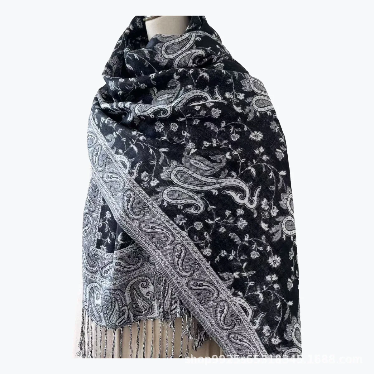 Sciarpa retrò elegante da donna, scialle jacquard di anacardi, sciarpe calde avvolgenti da donna per l’autunno e l’inverno