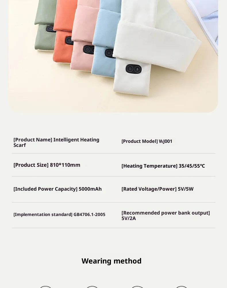 Sciarpa riscaldante elettrica USB per donna uomo scaldacollo in pile lavabile non inclusa batteria per campeggio all’aperto ufficio inverno