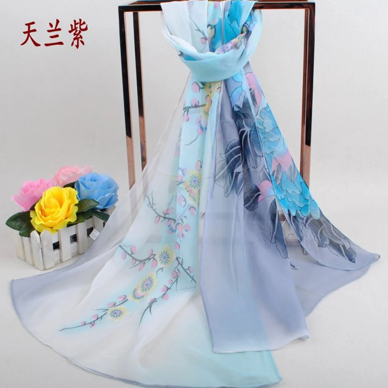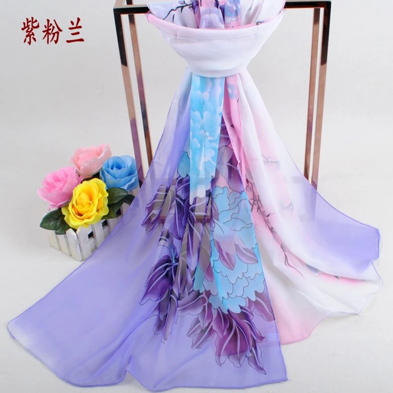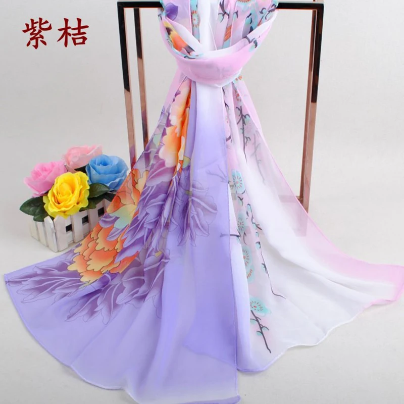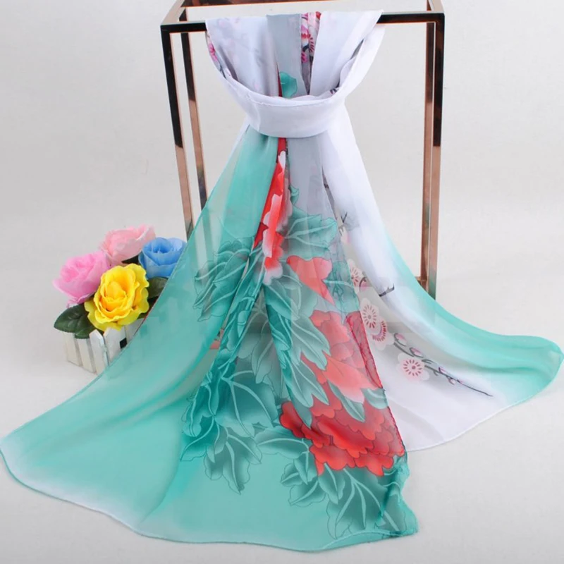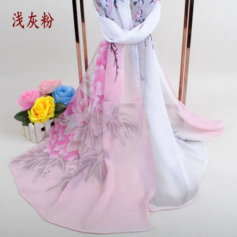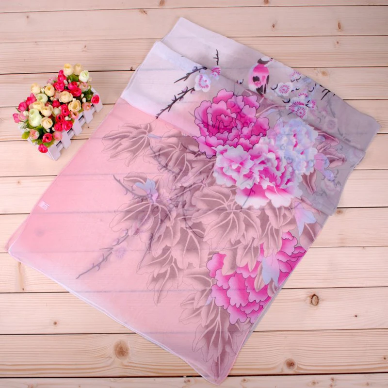 Sciarpe lunghe in chiffon stampato da donna con fiori di peonia nuove Sciarpe autunnali e invernali all’ingrosso di Yiwu Piccole sciarpe