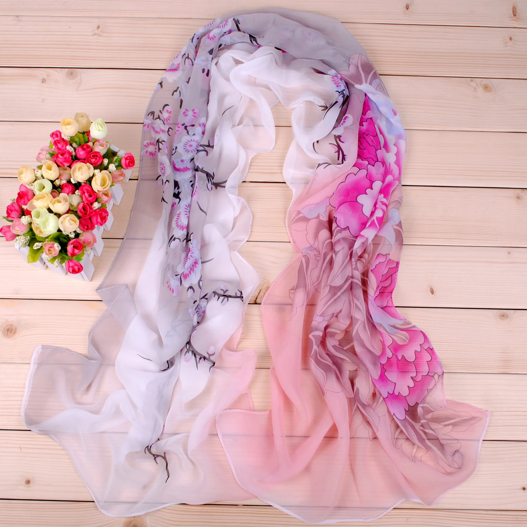 Sciarpe lunghe in chiffon stampato da donna con fiori di peonia nuove Sciarpe autunnali e invernali all’ingrosso di Yiwu Piccole sciarpe