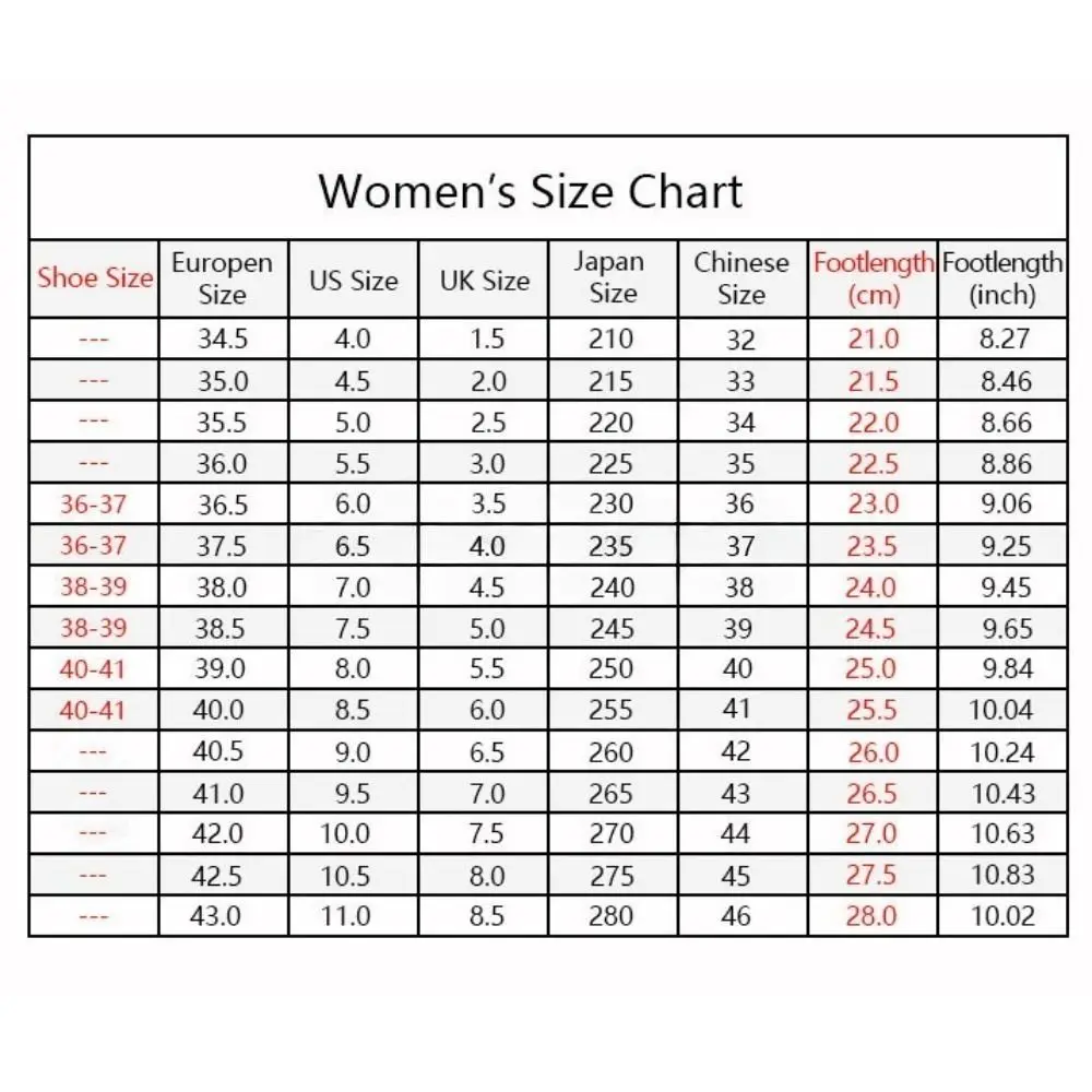 Size EU40-41, suitable for245mm(9.65in)-250mm(9.84in) foot, [one size smaller] fits 39/40