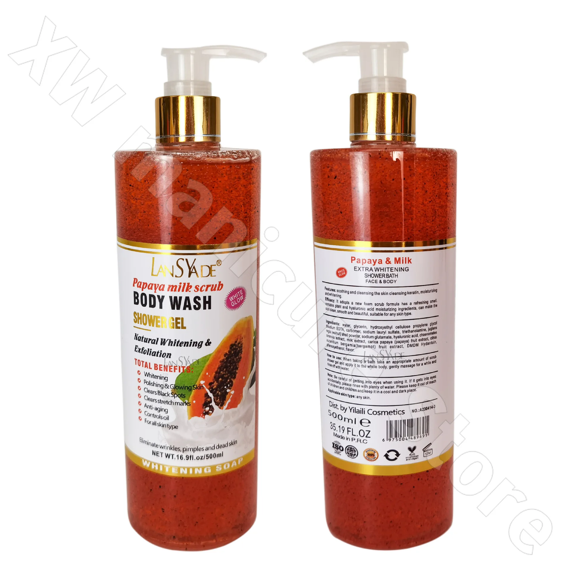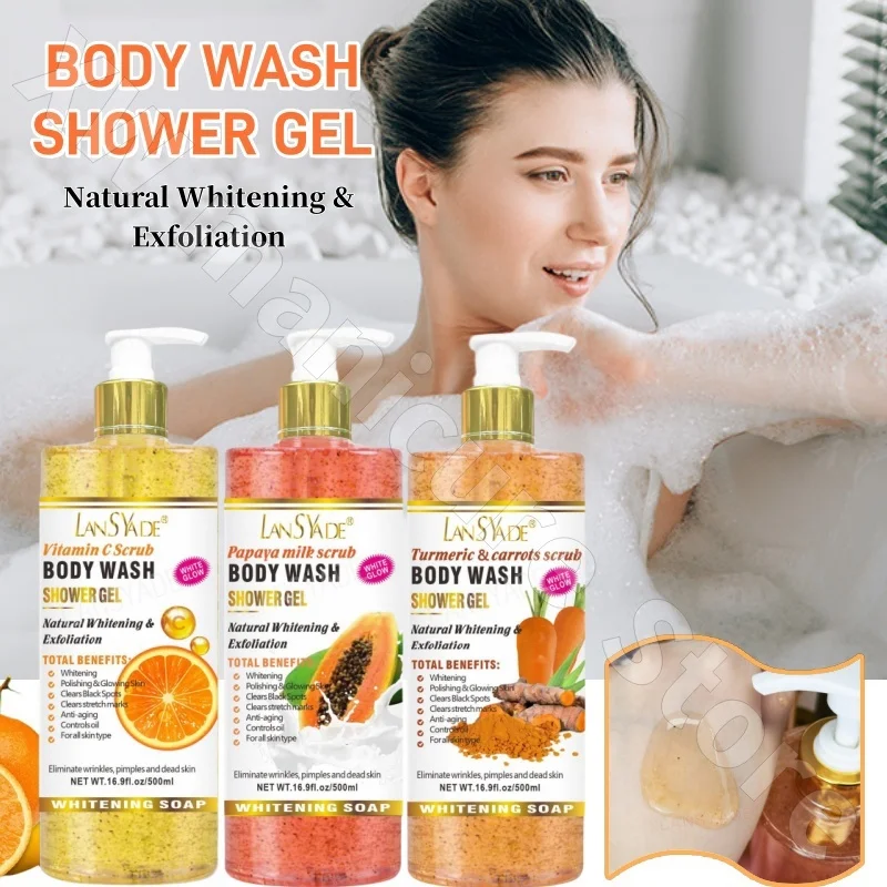 Scrub Gel doccia 500ml Schiuma ricca per la pelle setosa Rinfrescante Idratante Pulizia delicata Migliora l’opacità Fragranza a lunga durata