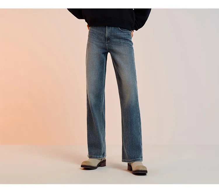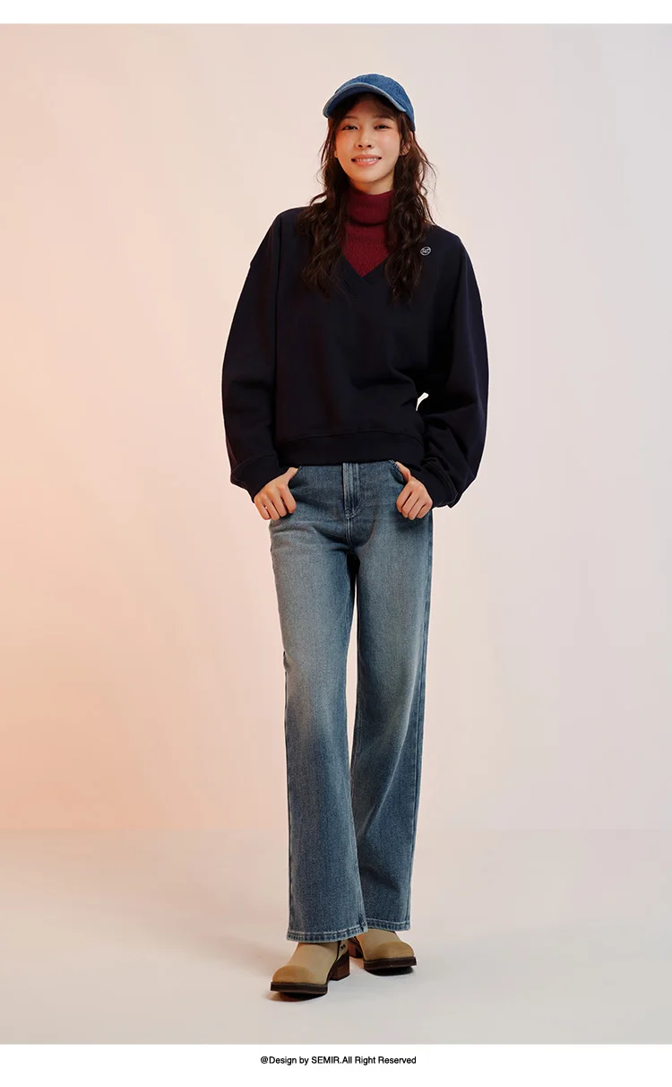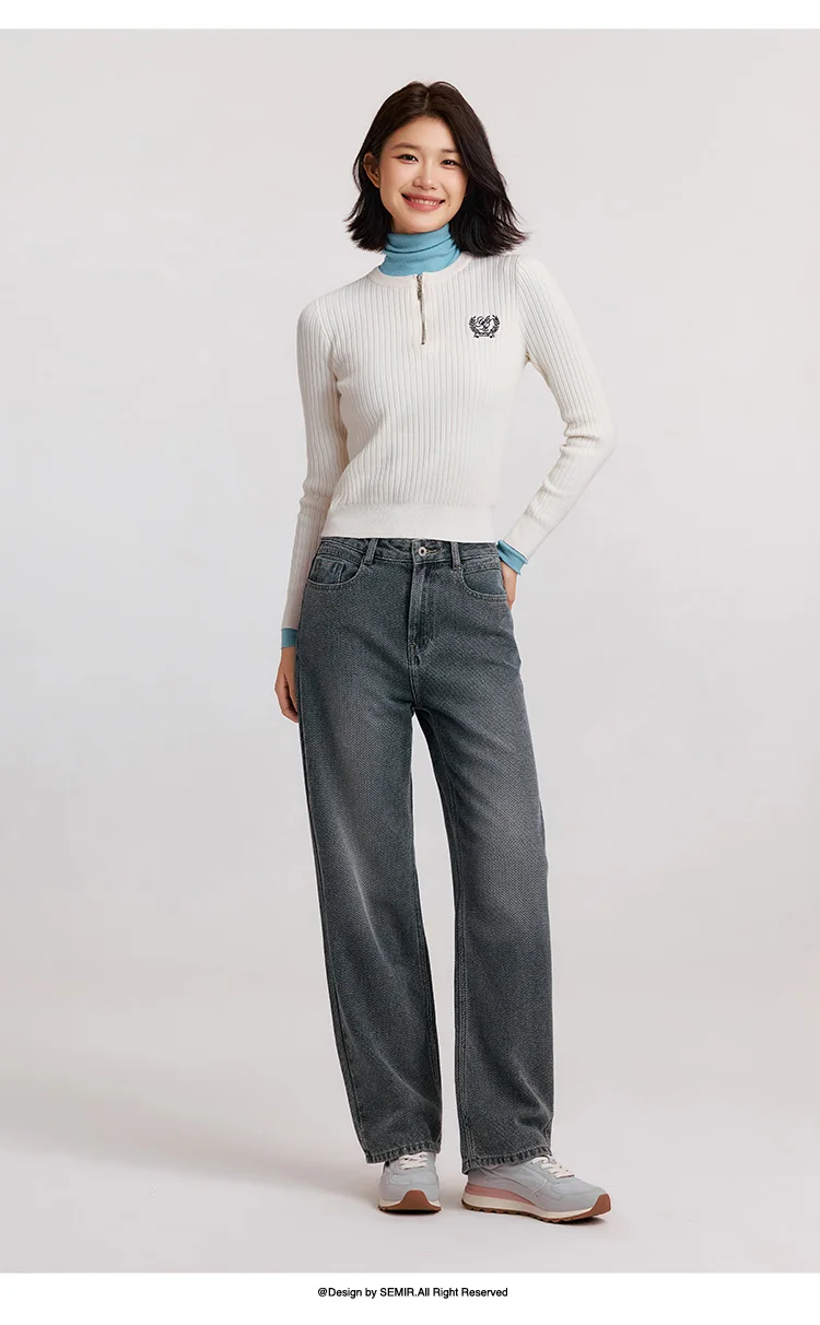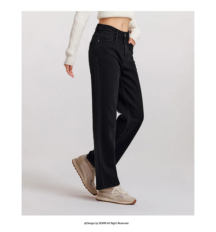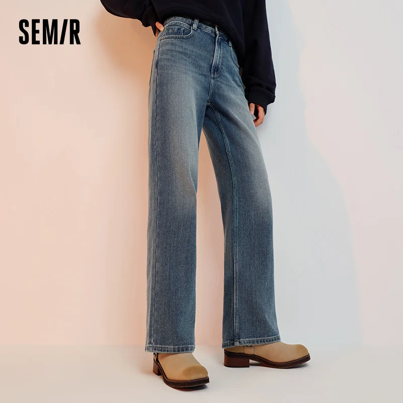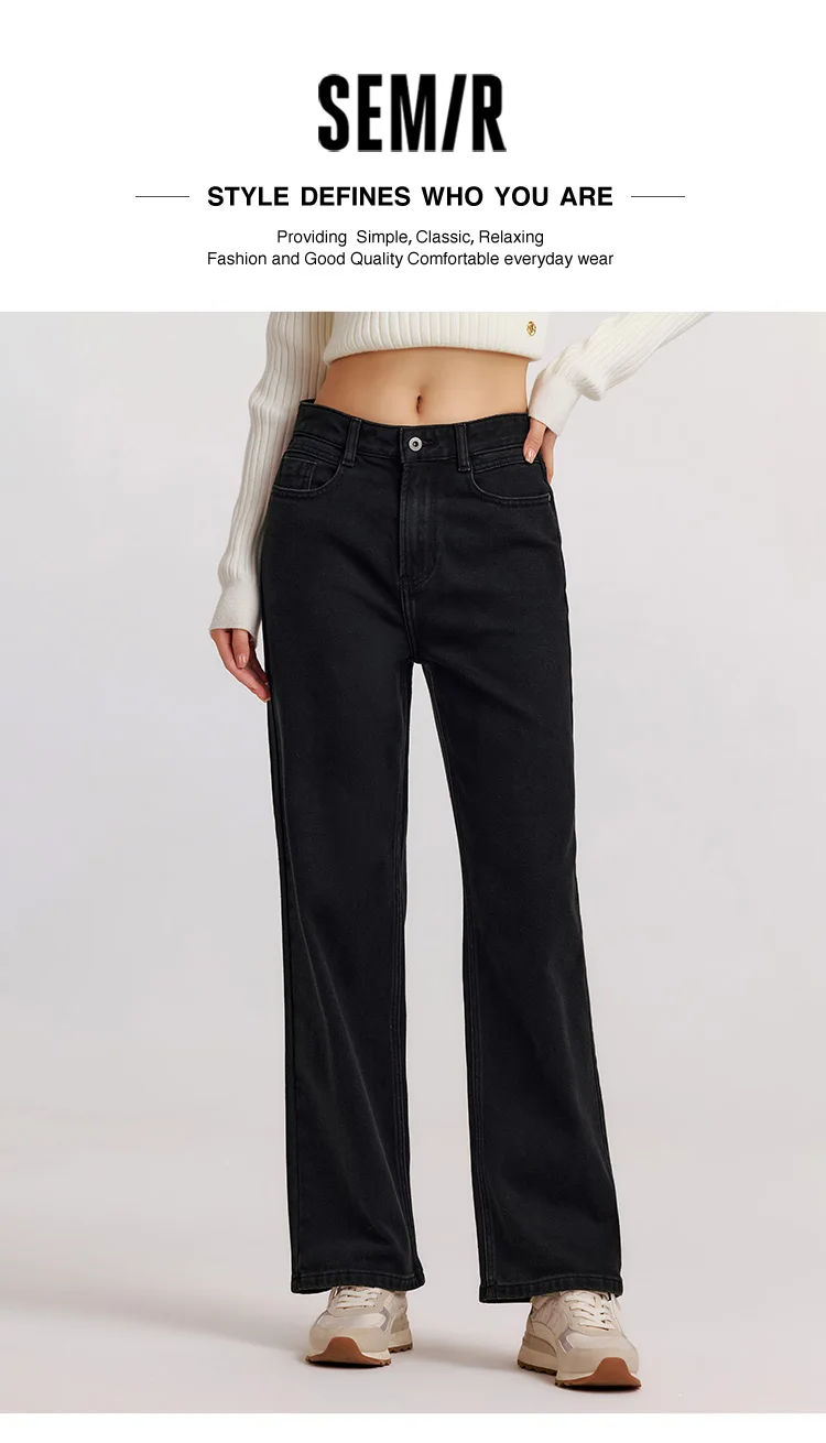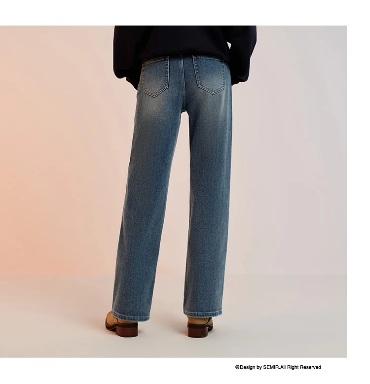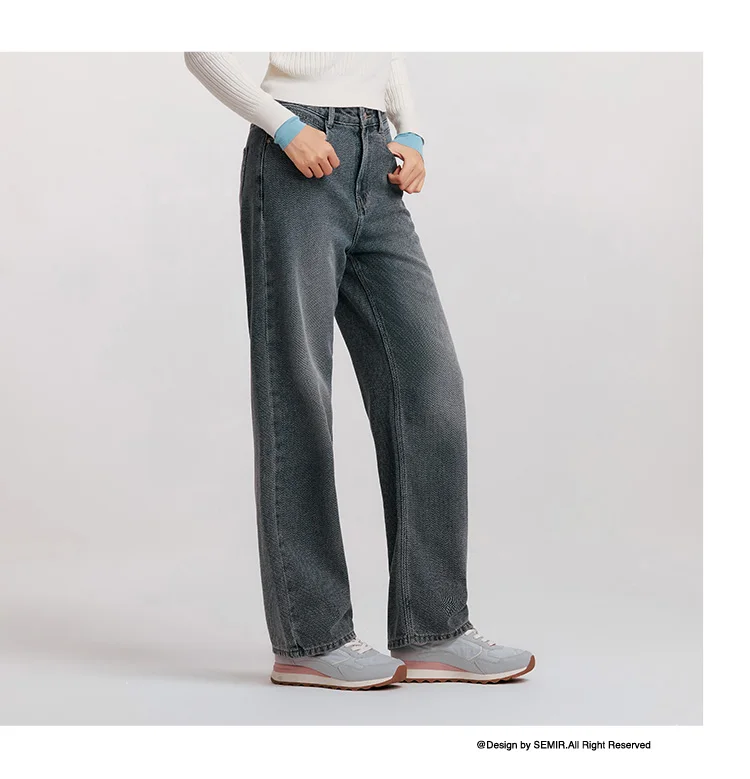 Semir Jeans Donna Spazzolato Comodo Gamba Larga Denim Lungo 2025 Pantaloni Invernali Abbigliamento Donna Jeans Larghi