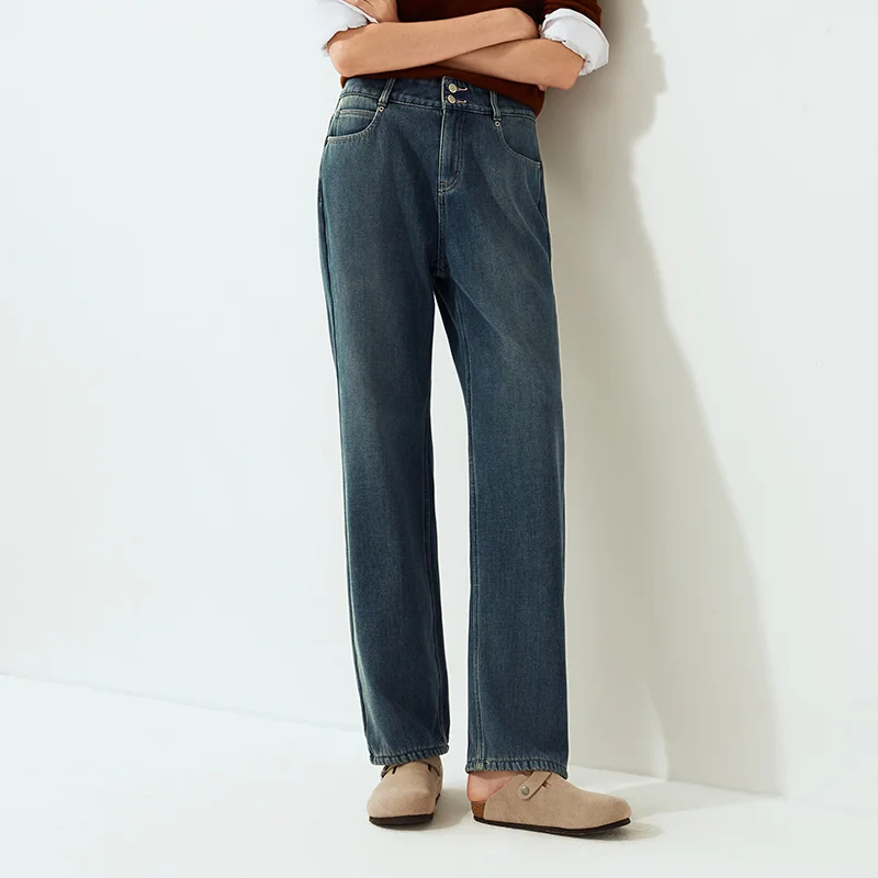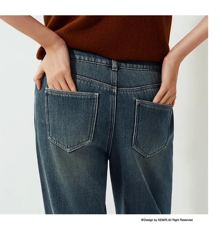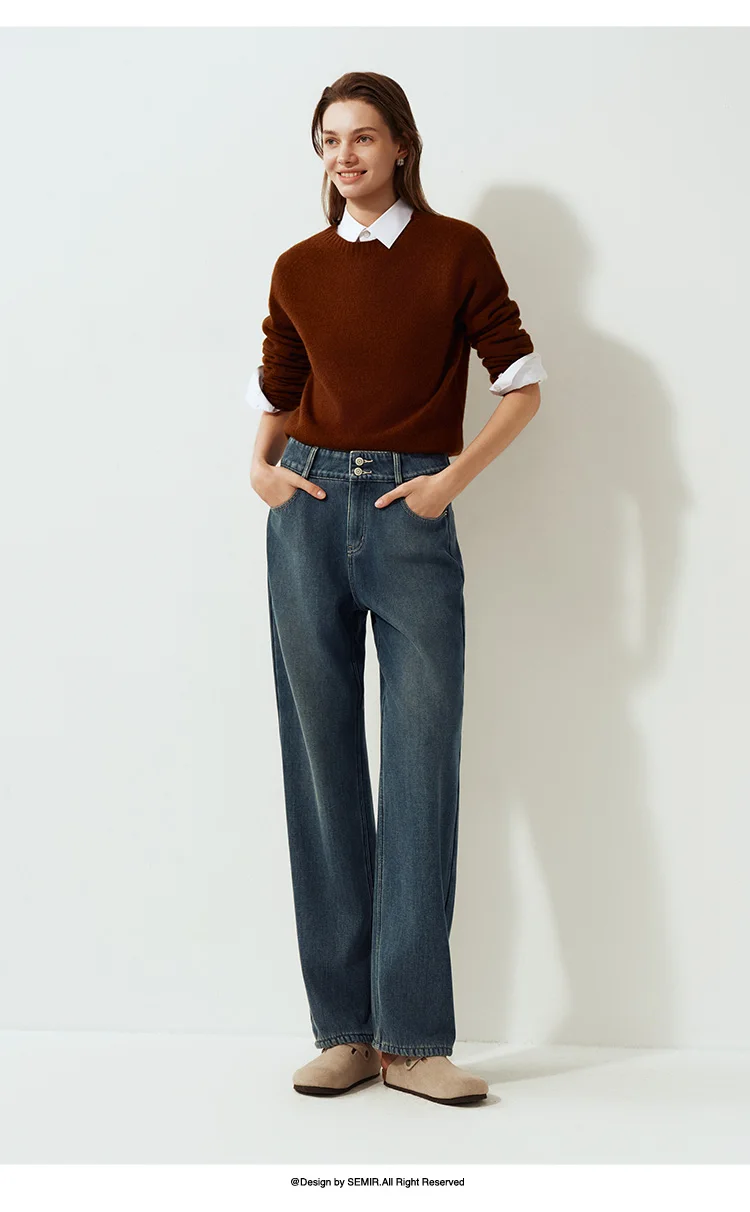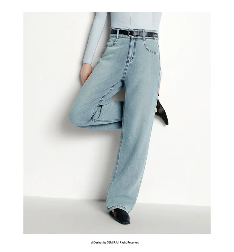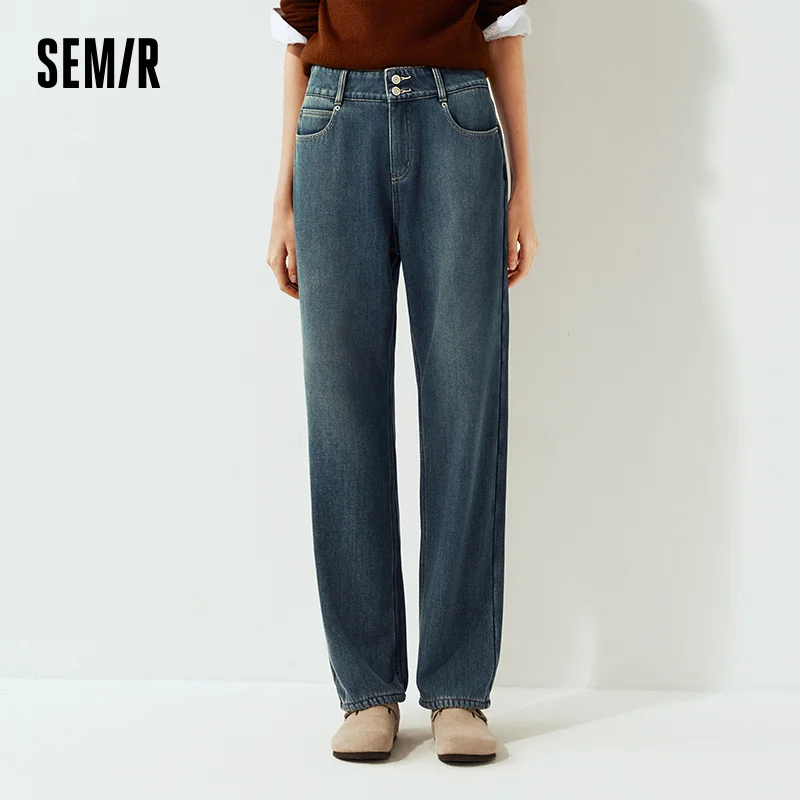 Semir Semir Jeans Donna Inverno Pile Caldo Gamba Dritta Vita Alta 2025 Nuovo Abbigliamento Donna Fresco