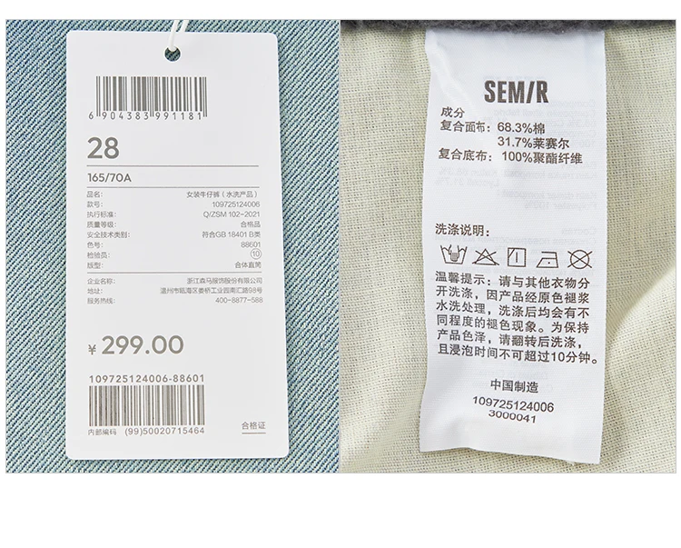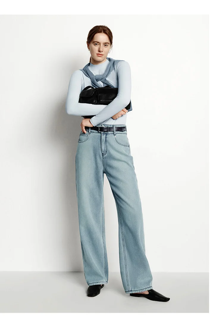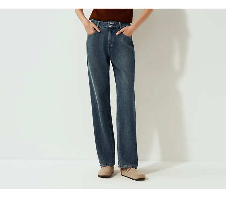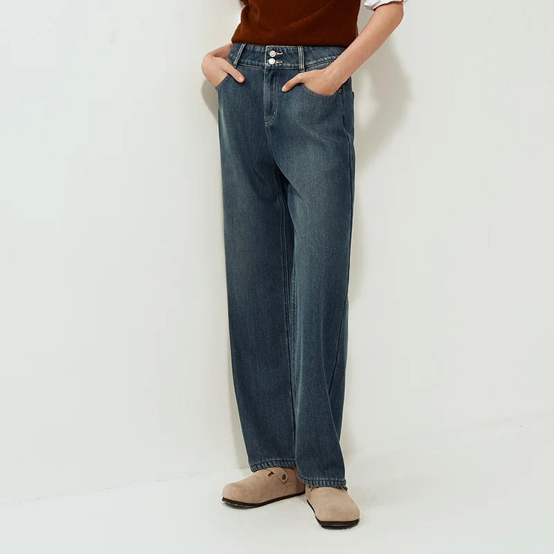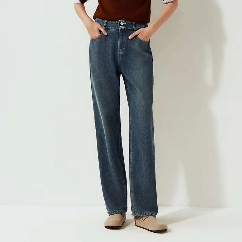 Semir Semir Jeans Donna Inverno Pile Caldo Gamba Dritta Vita Alta 2025 Nuovo Abbigliamento Donna Fresco