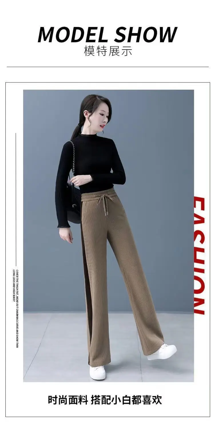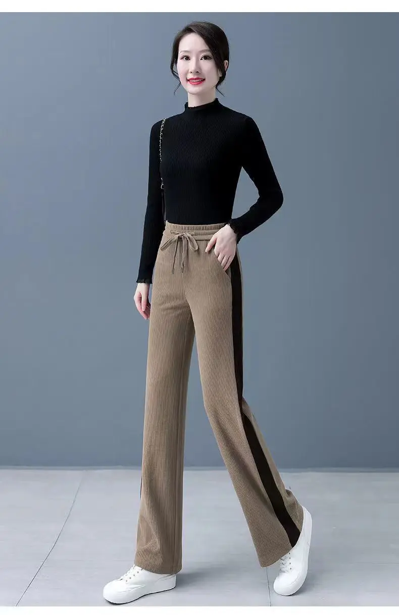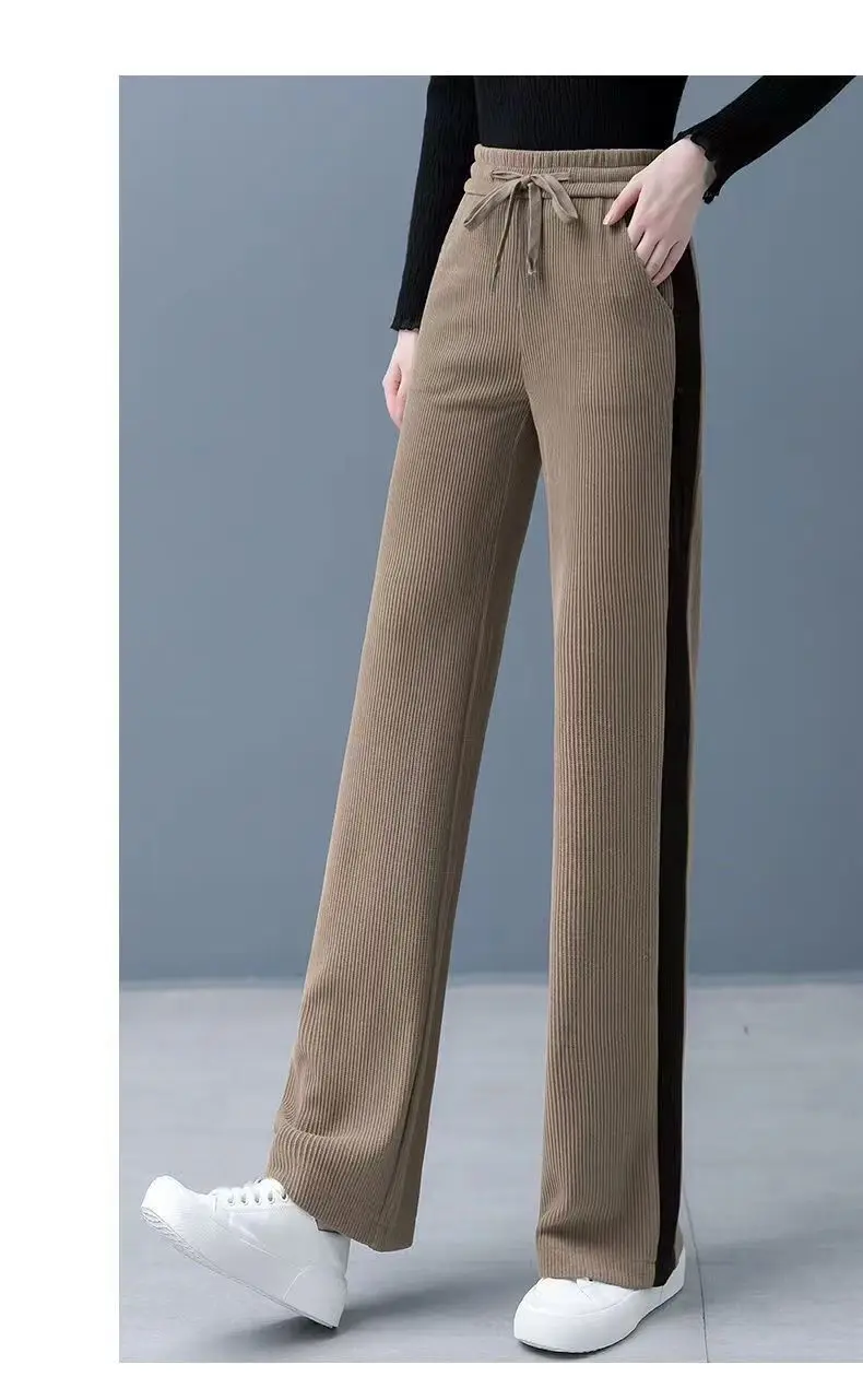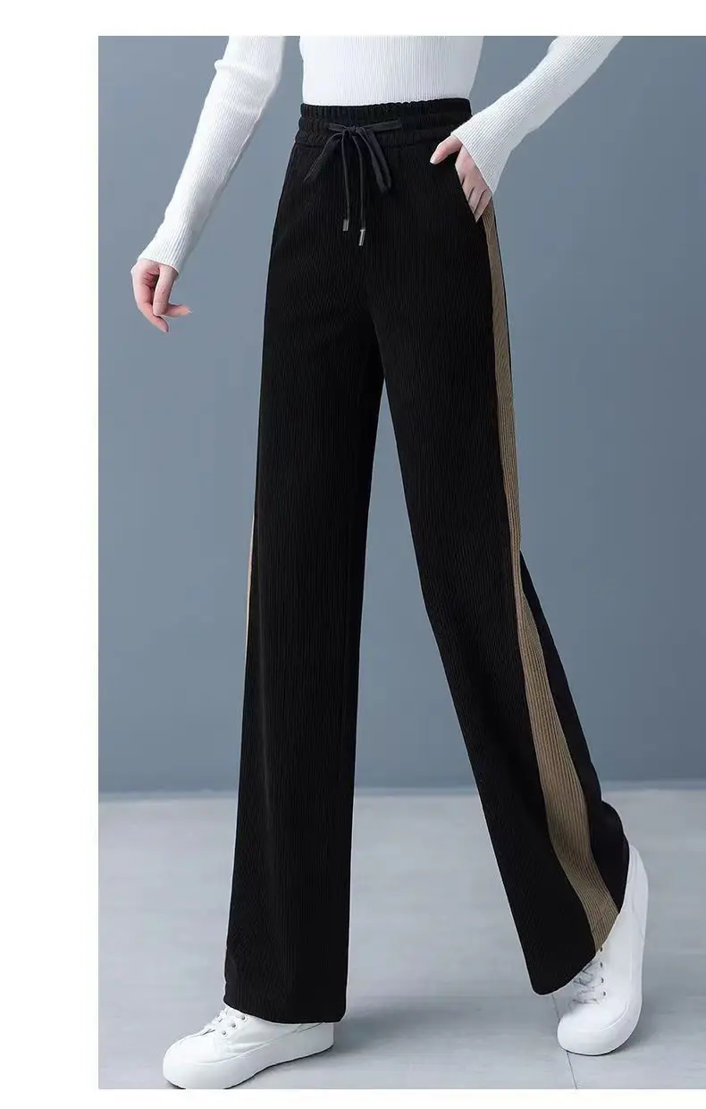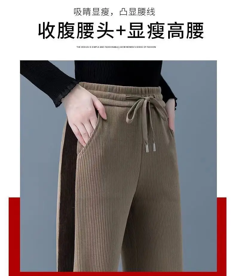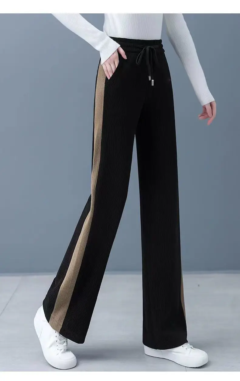 Semplicità All-match Autunno Inverno Pantaloni Donna Coulisse Tasca a contrasto di colore Elastico a vita alta Pantaloni dritti slim casual