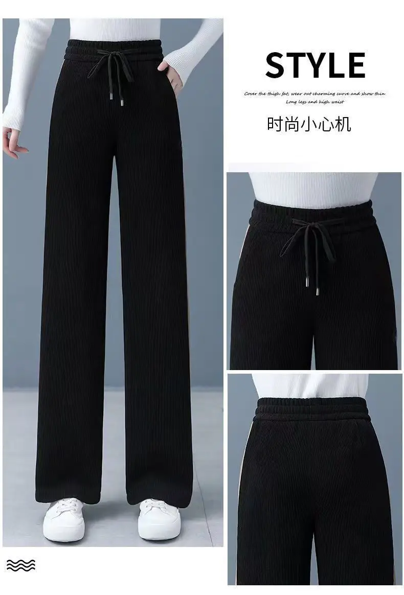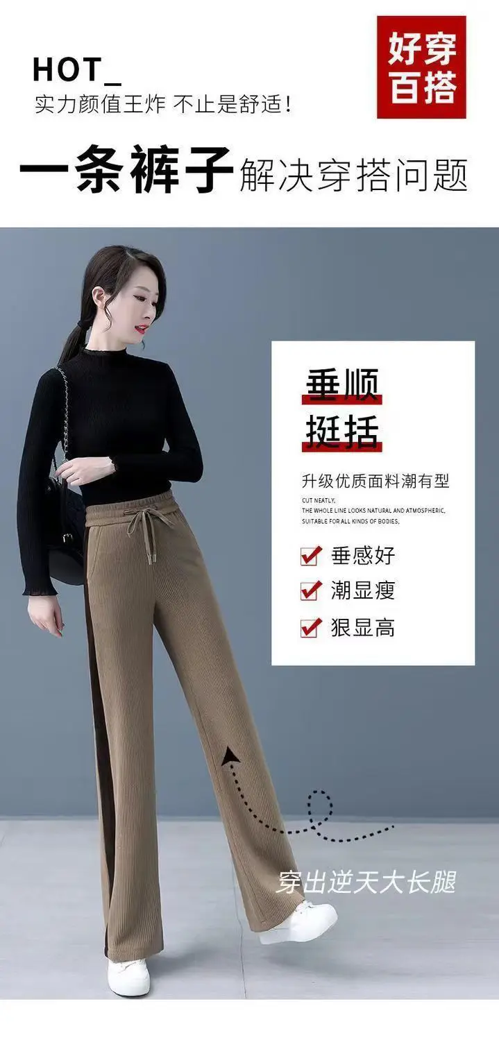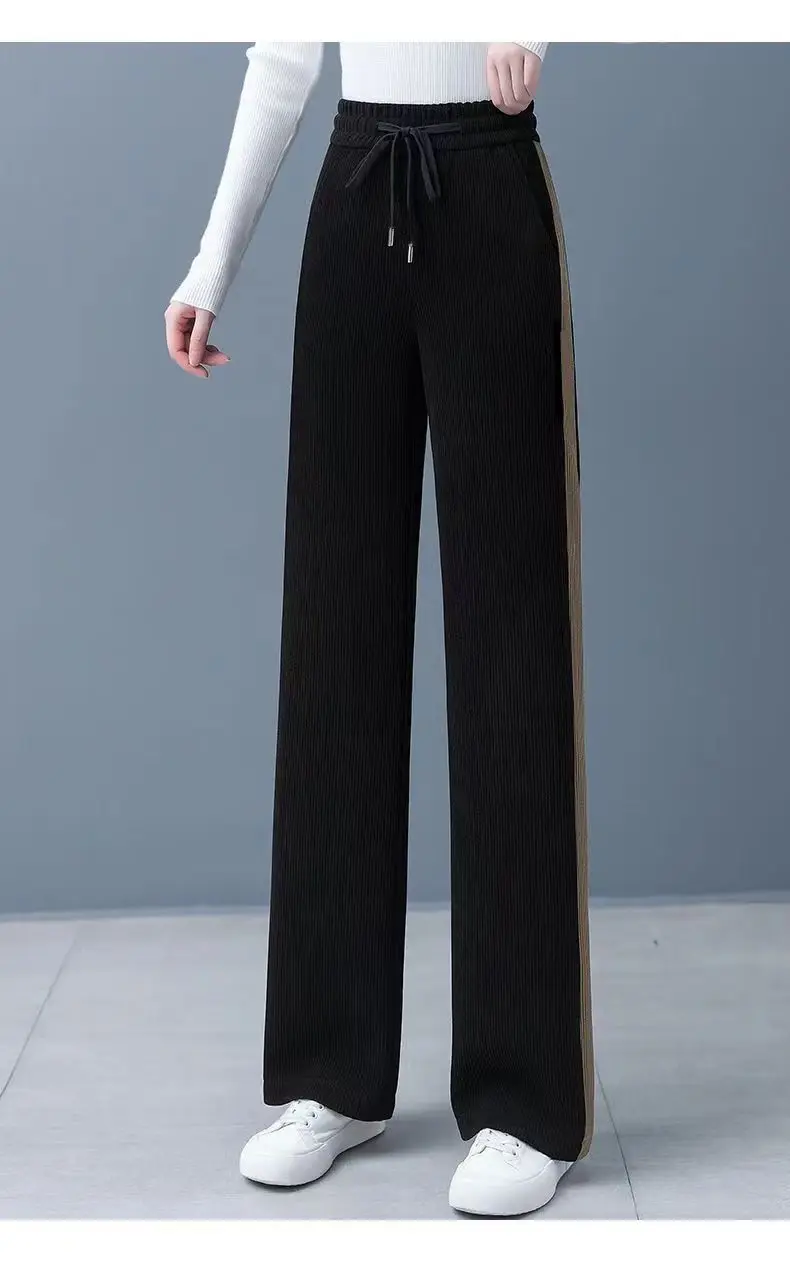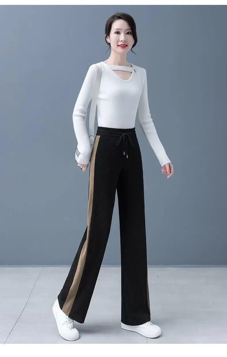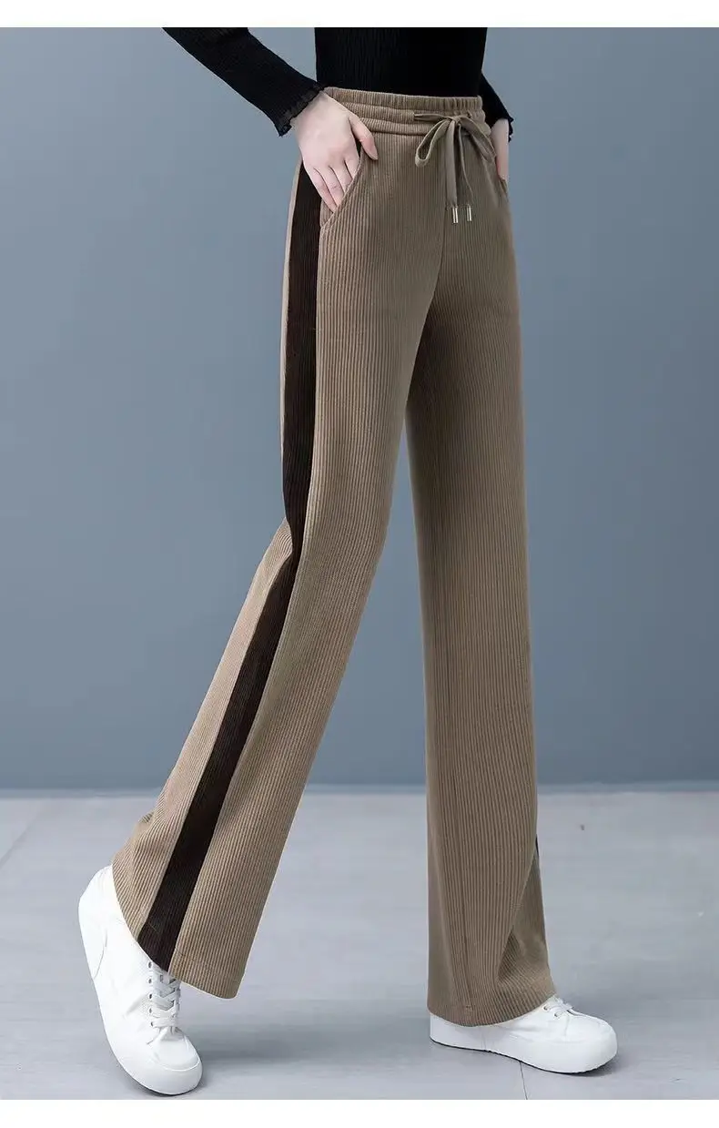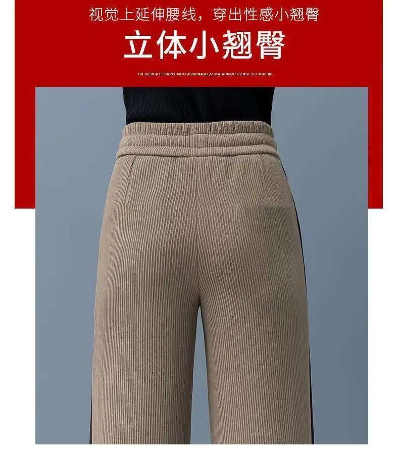 Semplicità All-match Autunno Inverno Pantaloni Donna Coulisse Tasca a contrasto di colore Elastico a vita alta Pantaloni dritti slim casual