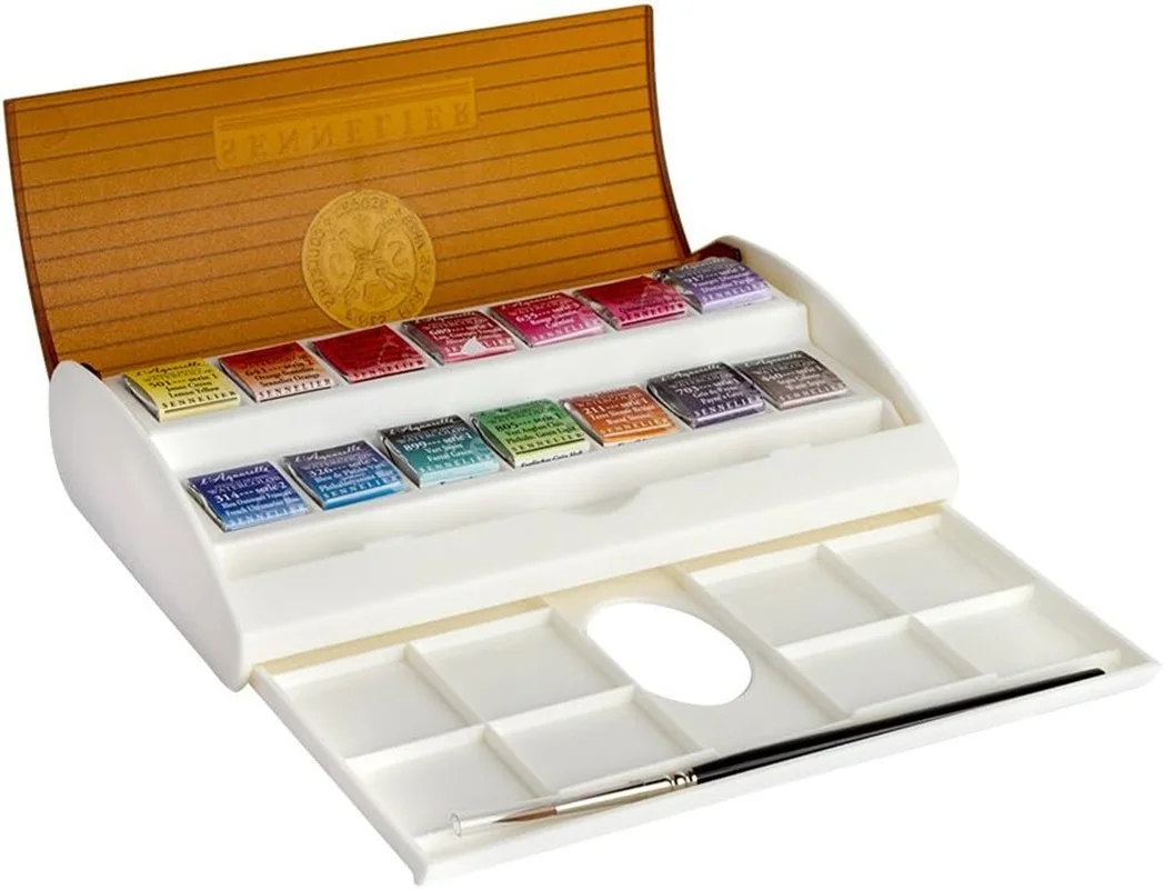 Sennelier – Set da viaggio per acquerello – 14 mezze tazze in scatola di plastica