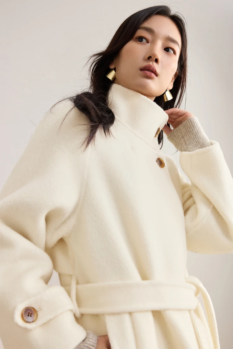 880 g di lana costruisce un "Grande muro di calore": abbondante pile corto trattiene il caloreIl colletto rialzato aderisce perfettamente, allungando la scollatura e aggiungendo un’altezza visiva di 5 cm: niente più preoccupazioni al collo cortoLe maniche raglan scolpiscono il telaio: dimagrimento dello spessore delle spalle e della schiena, nascondendo senza sforzo spalle arrotondate e schiena ampiaCintura in tessuto biadesivo: allacciala per una curva definita o lasciala aperta per un’eleganza rilassata