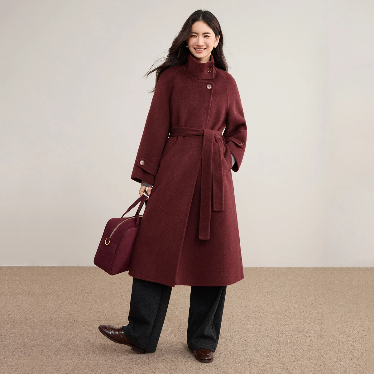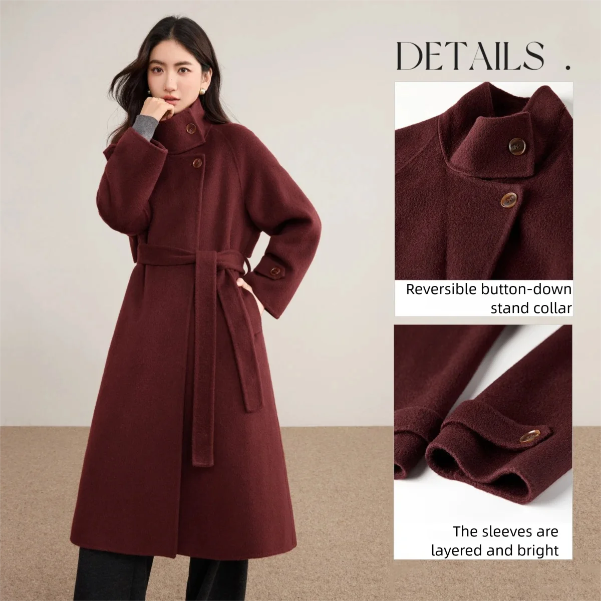 880 g di lana costruisce un "Grande muro di calore": abbondante pile corto trattiene il caloreIl colletto rialzato aderisce perfettamente, allungando la scollatura e aggiungendo un’altezza visiva di 5 cm: niente più preoccupazioni al collo cortoLe maniche raglan scolpiscono il telaio: dimagrimento dello spessore delle spalle e della schiena, nascondendo senza sforzo spalle arrotondate e schiena ampiaCintura in tessuto biadesivo: allacciala per una curva definita o lasciala aperta per un’eleganza rilassata