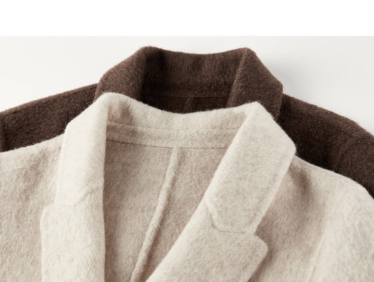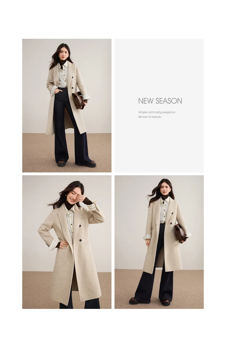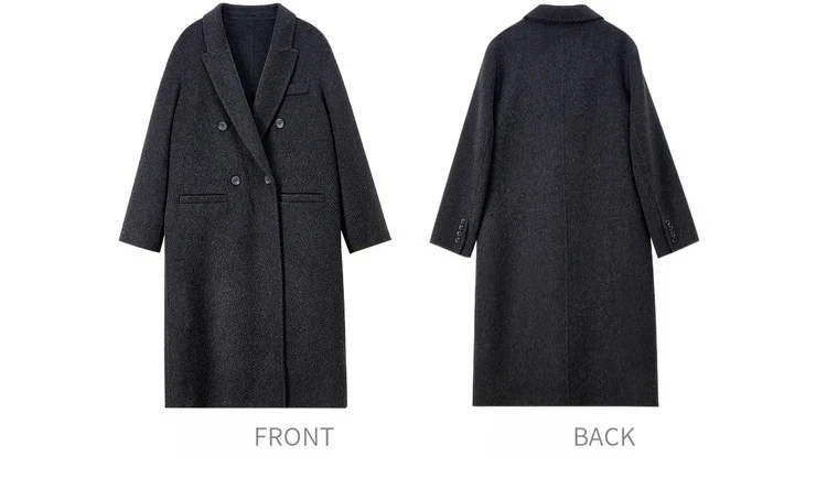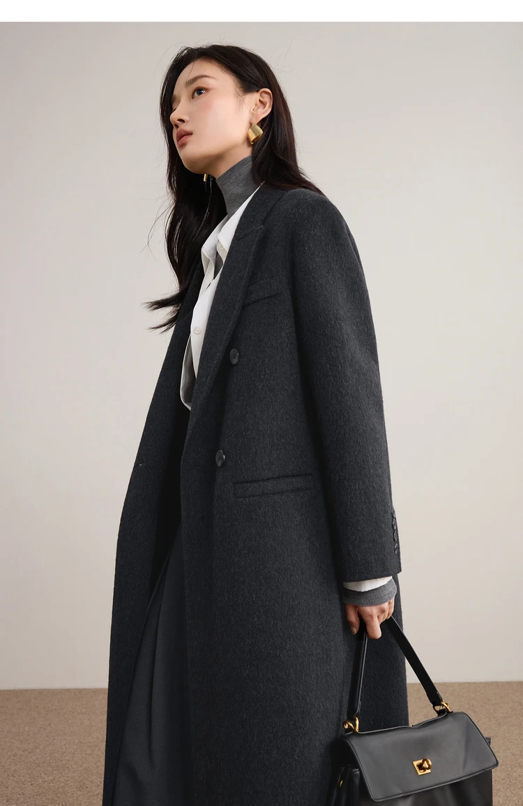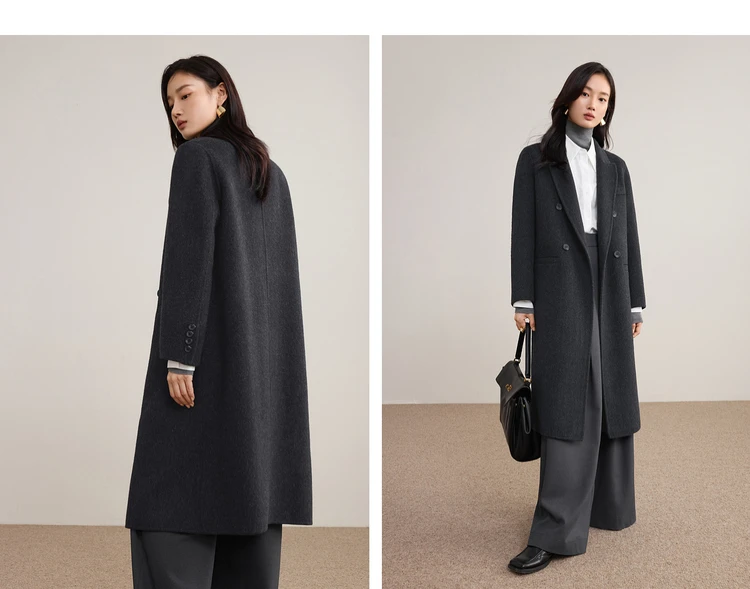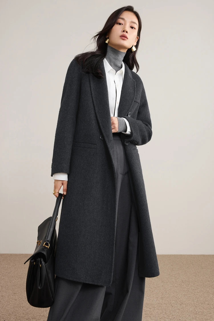 Cappotto di lana su misura di ispirazione britannicaPresenta un classico revers inglese con visiera per un look netto e raffinato.Il rilassato taglio architettonico di media lunghezza avvolge il corpo comodamente senza ingombro, consentendo una facile stratificazione pur mantenendo una presenza potente.Realizzato in morbida lana d’oro da 65 pezzi da 900 g per un calore che ti accompagna con sicurezza dagli spostamenti alle occasioni formali. Silhouette architettonica rilassata di media lunghezzaFornisce una presenza impegnativa con una forma sottile: nasconde mentre è lusinghiero, si strati dolcemente senza volume aggiunto Risvolto in punta su misura ingleseFlatte il viso con un drappeggio elegante e raffinato: è piatto con una curva naturale Pulsanti decorativi a doppia fila a contrastoMeticolosamente allineato per l’armonia visiva: funzionale e raffinato Tasche laterali discretePerfetto per riporre o riscaldare le mani: rifinito con precisione per un aspetto pulito