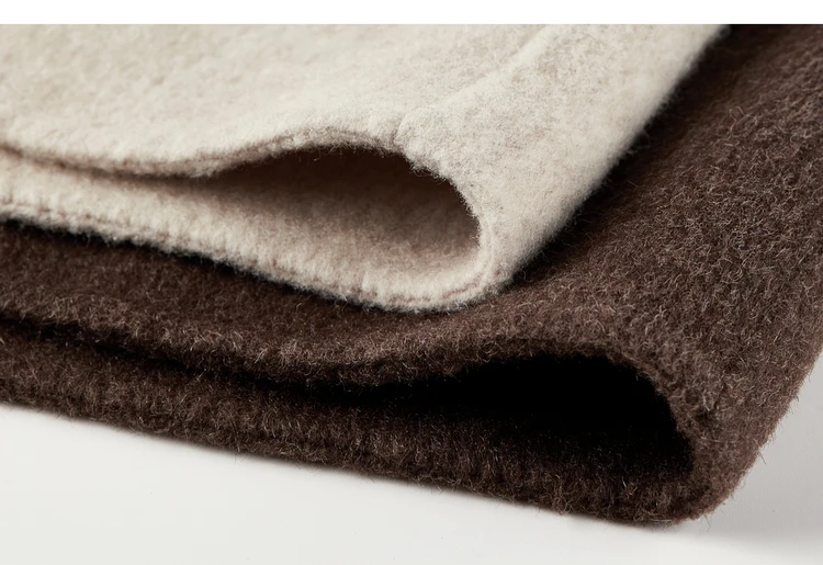 Tessuto grigio ardesia:68,6% di lana, 25,5% di poliestere, 5,9% di altre fibre (filo escluso)Tessuto di farina d’avena:69,6% di lana, 28,5% di poliestere, 1,9% di altre fibre (filo escluso)Tessuto di cammello:68,0% lana, 28,2% poliestere, 3,8% altre fibre (filo escluso)