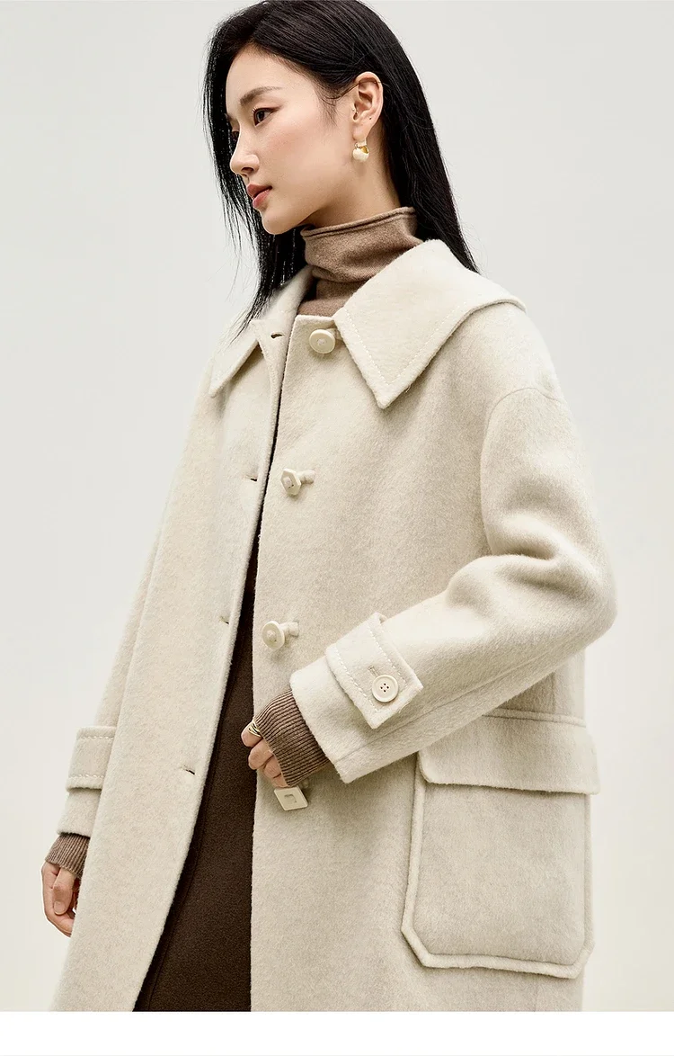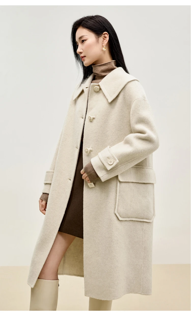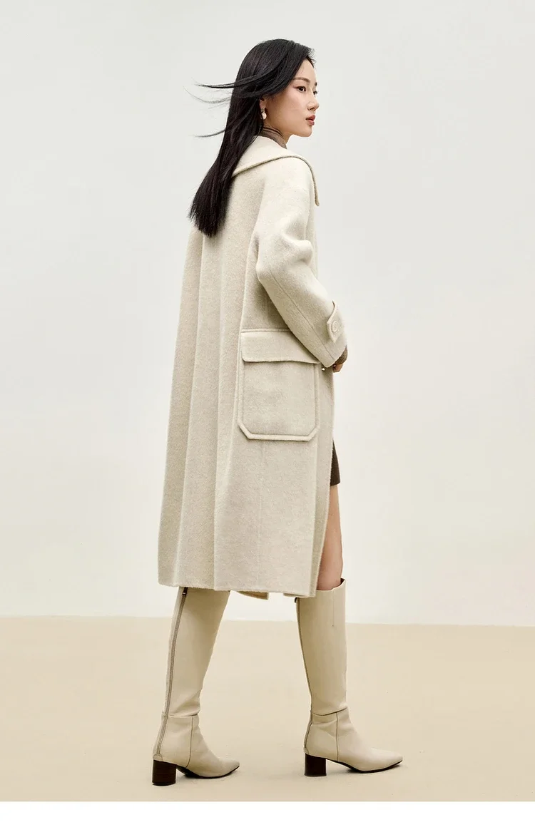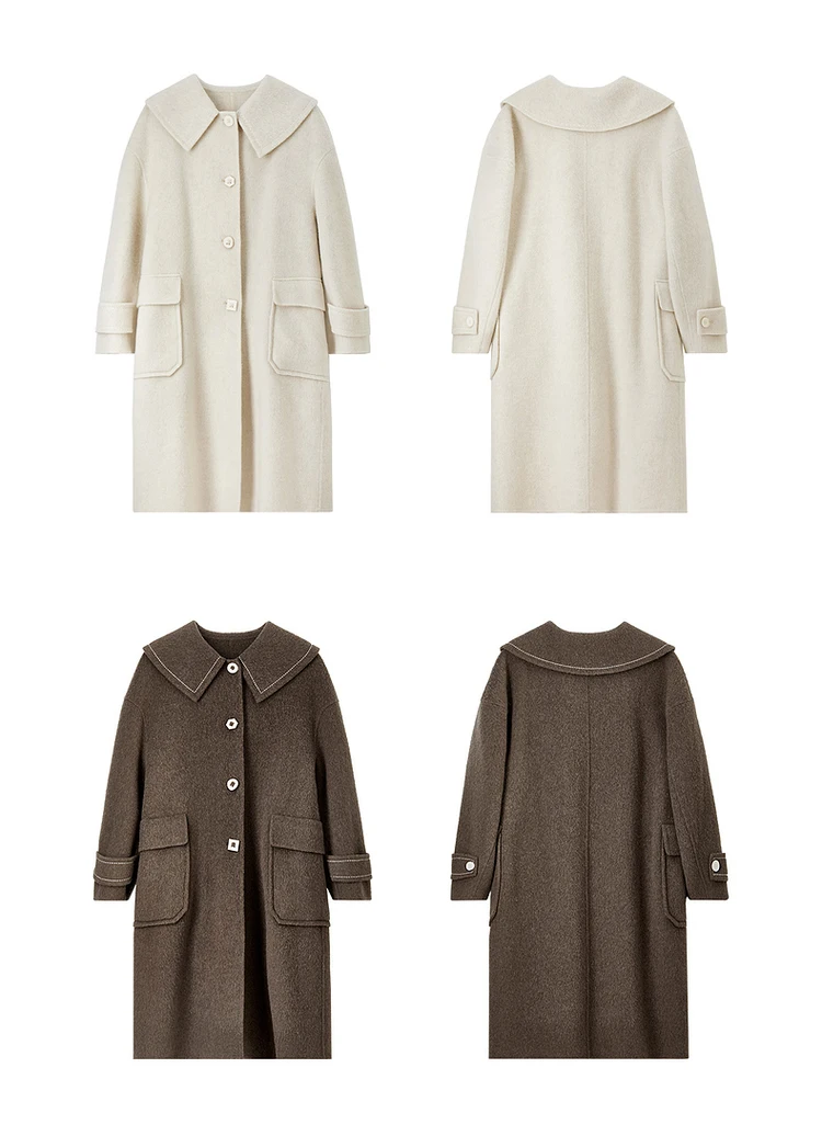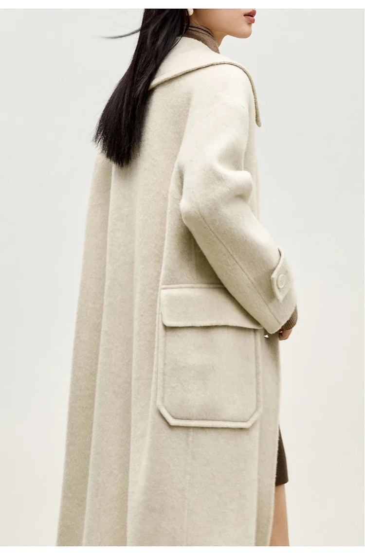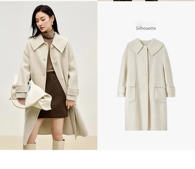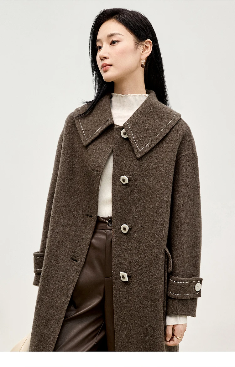 SENTUBILA Cappotto di lana da donna minimalista 2025 Inverno Elegante colletto alla marinara Cappotti monopetto Pendolarismo Cappotto caldo da donna W44O55973