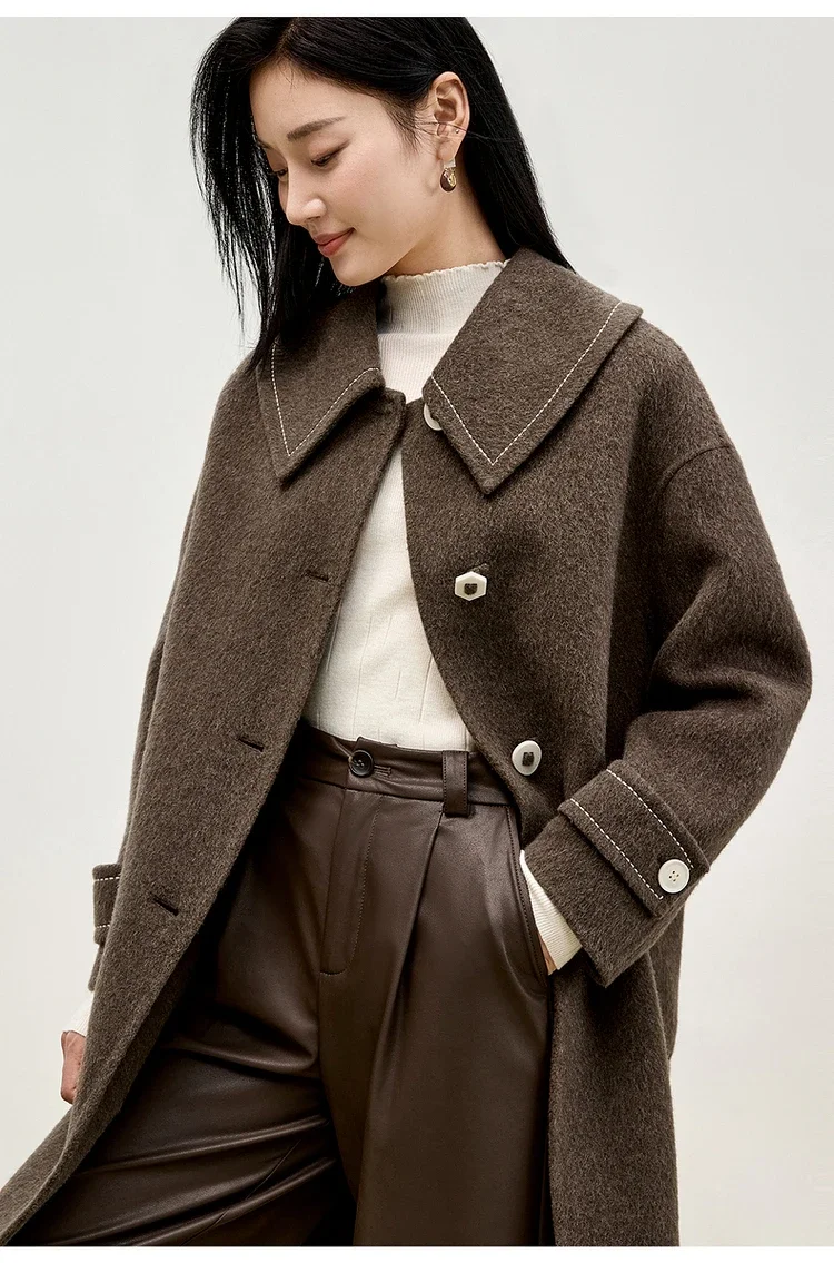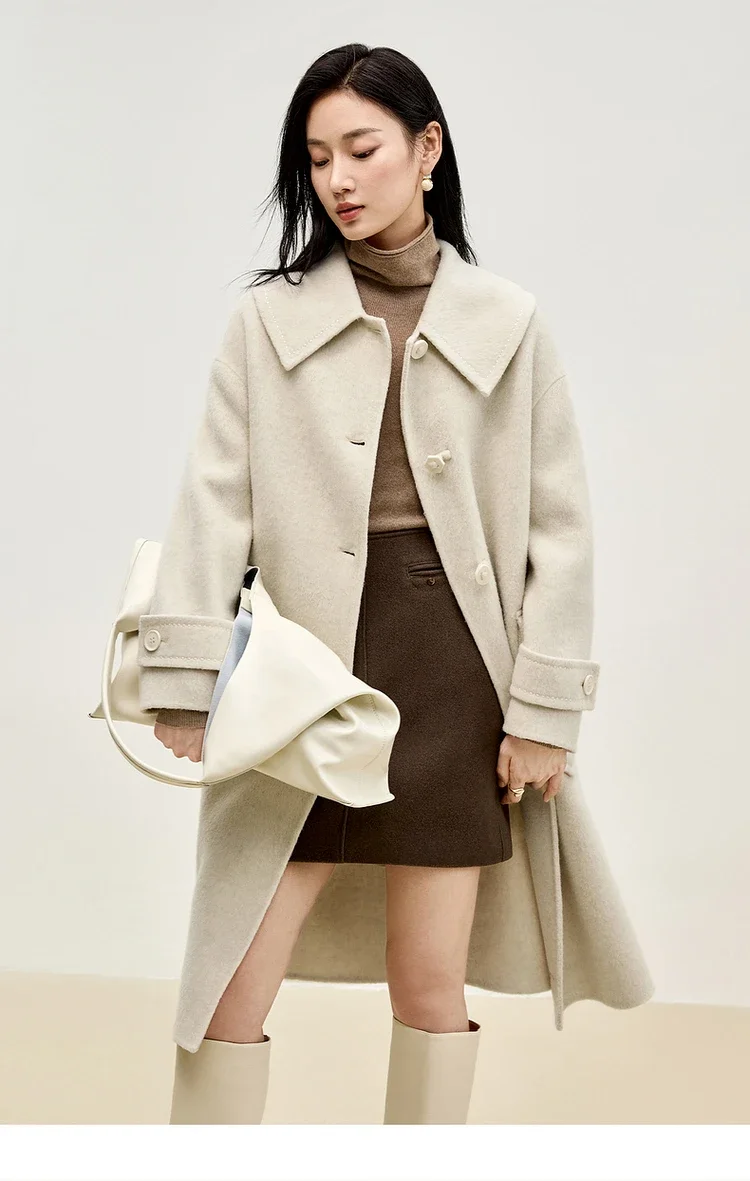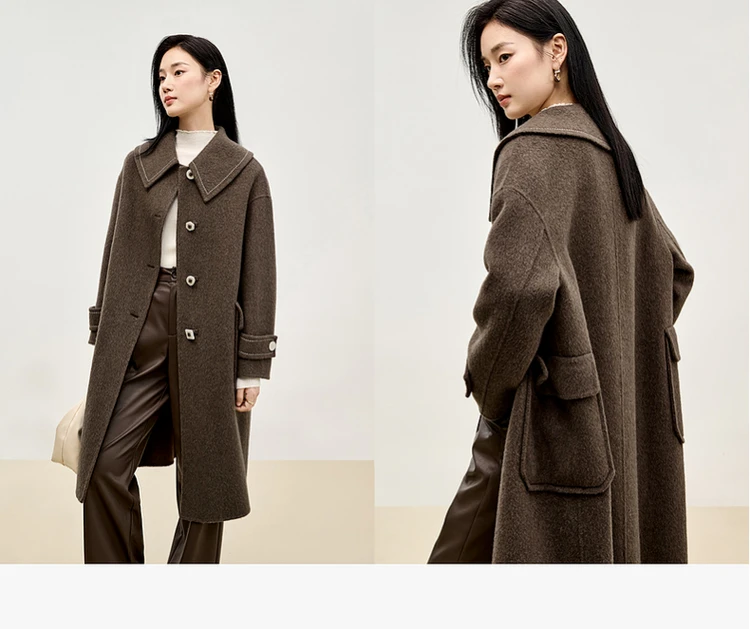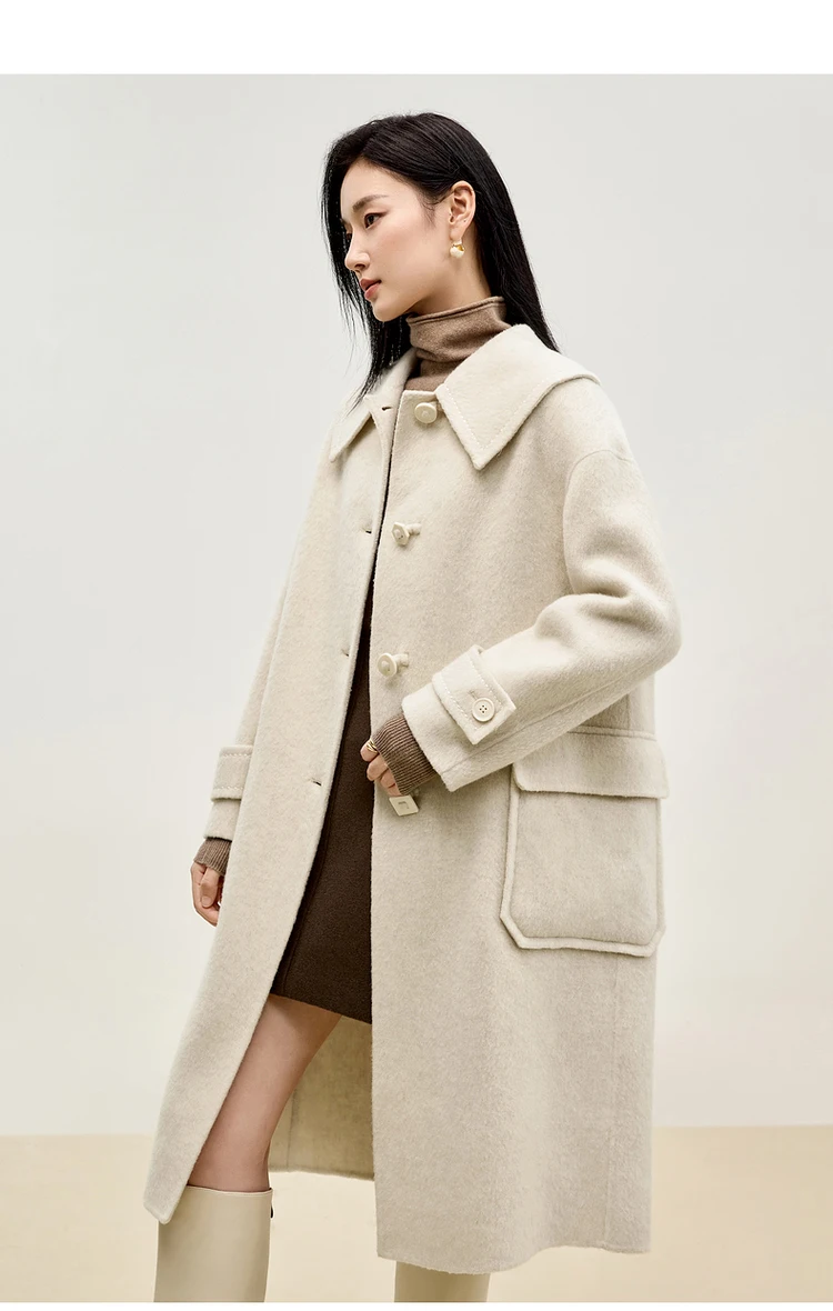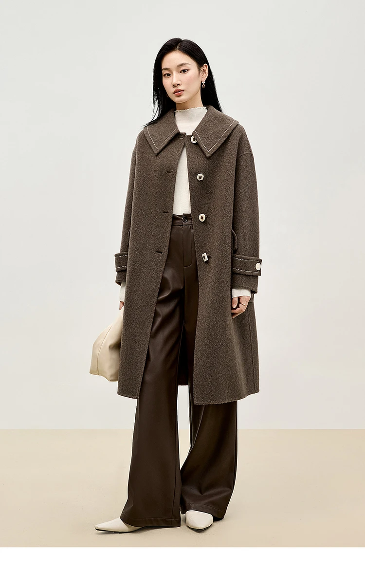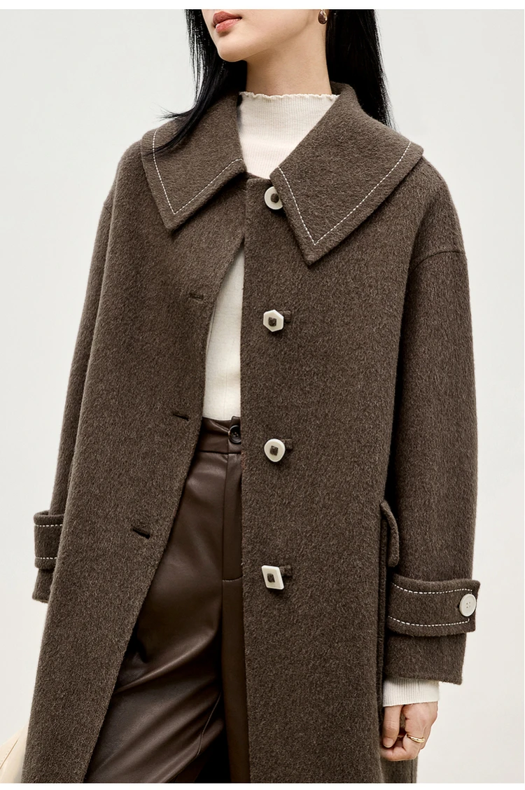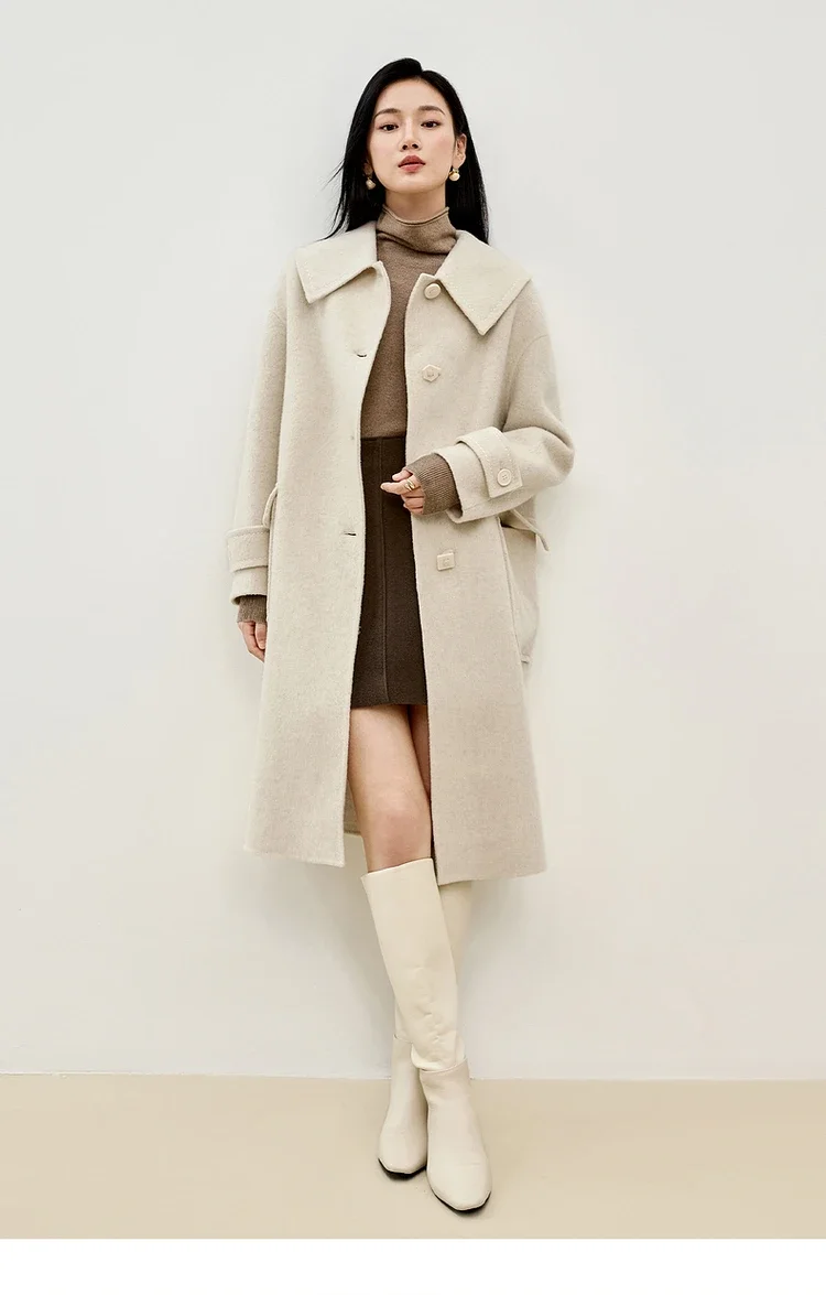 SENTUBILA Cappotto di lana da donna minimalista 2025 Inverno Elegante colletto alla marinara Cappotti monopetto Pendolarismo Cappotto caldo da donna W44O55973