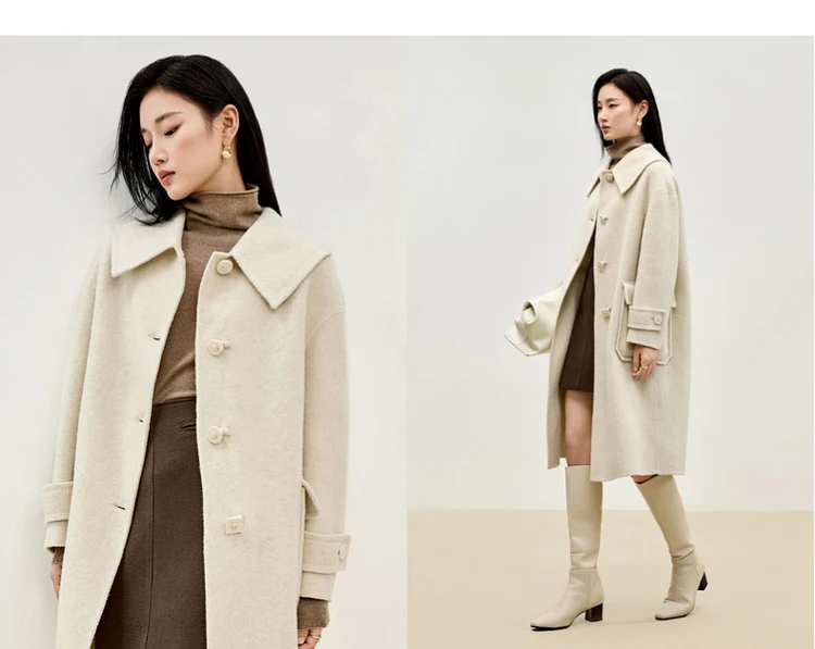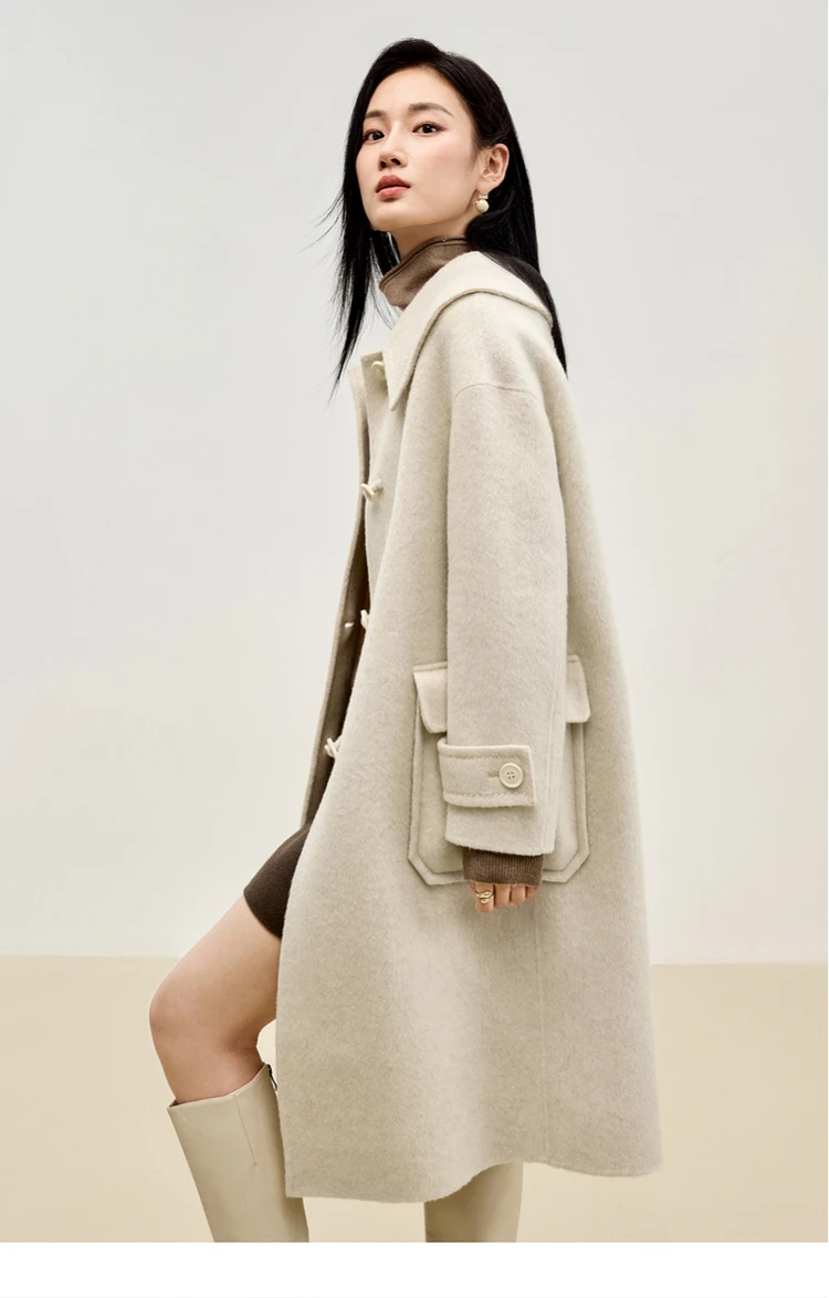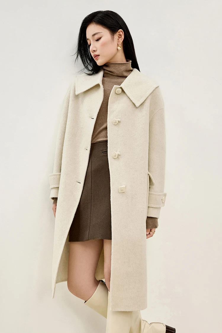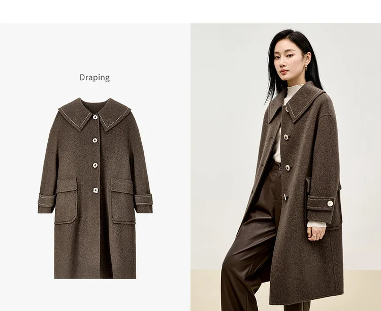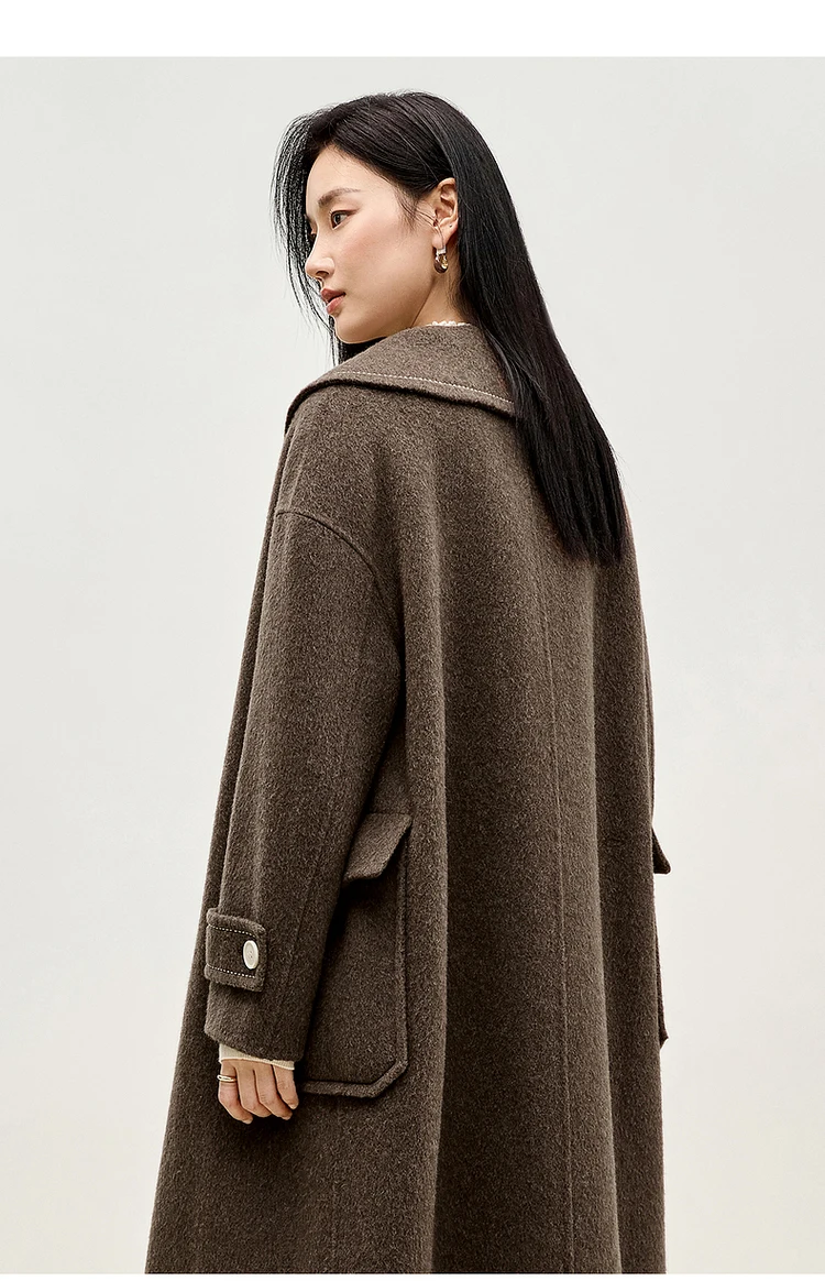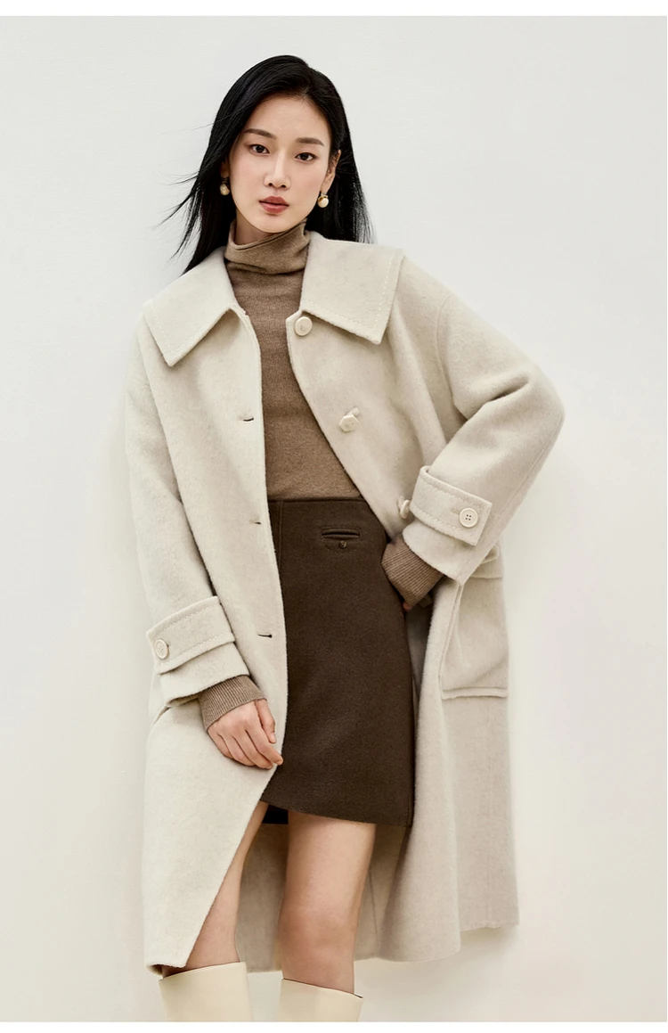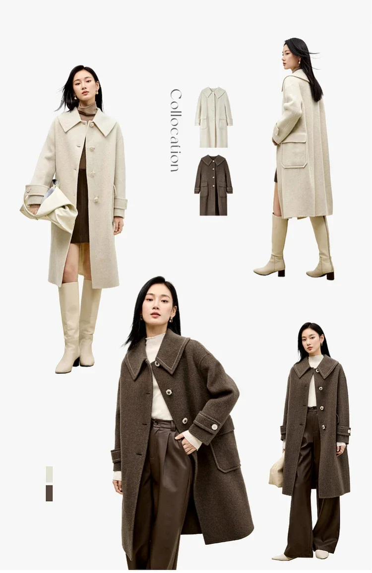 SENTUBILA Cappotto di lana da donna minimalista 2025 Inverno Elegante colletto alla marinara Cappotti monopetto Pendolarismo Cappotto caldo da donna W44O55973