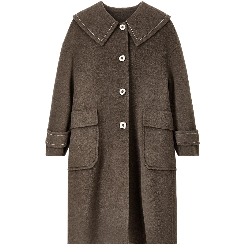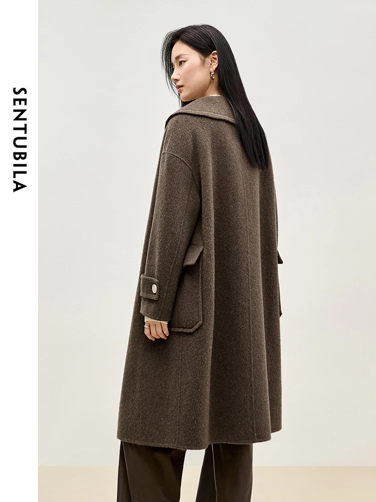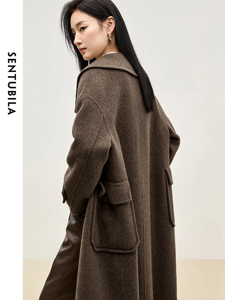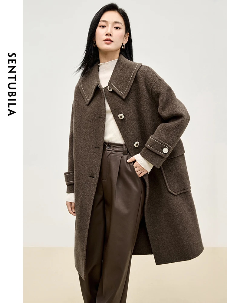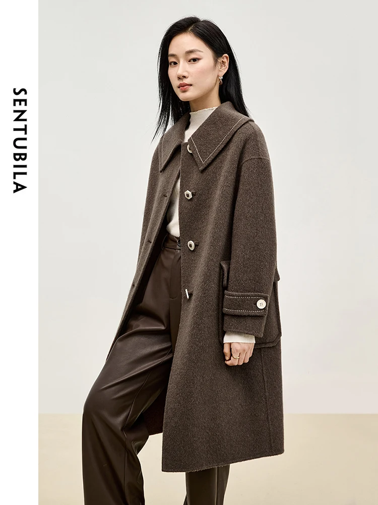 SENTUBILA Cappotto di lana da donna minimalista 2025 Inverno Elegante colletto alla marinara Cappotti monopetto Pendolarismo Cappotto caldo da donna W44O55973