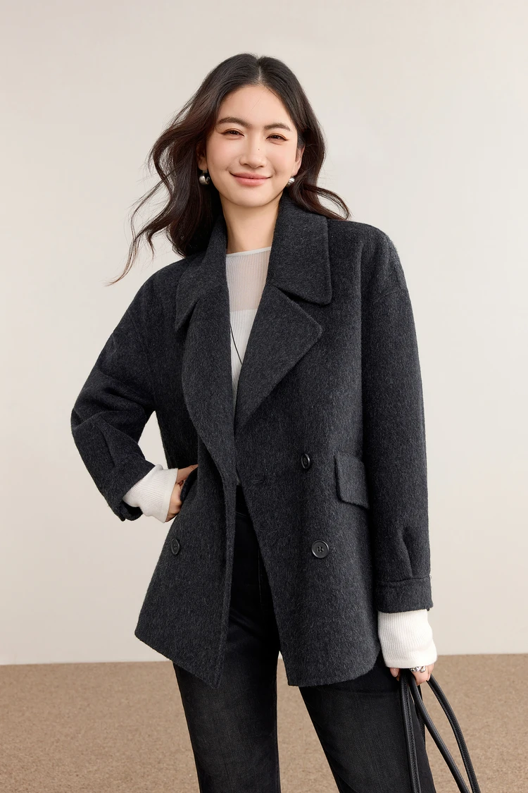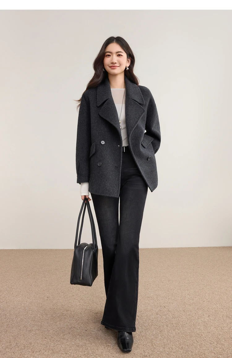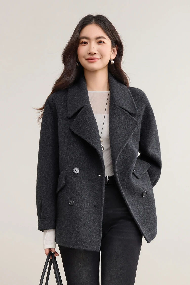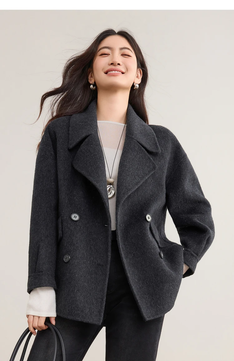 SENTUBILA Cappotto di lana double face da donna 2025 Cappotto invernale da pendolare caldo doppio petto stile britannico W54OC8775