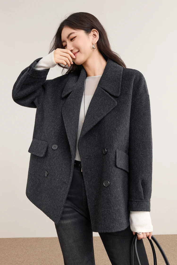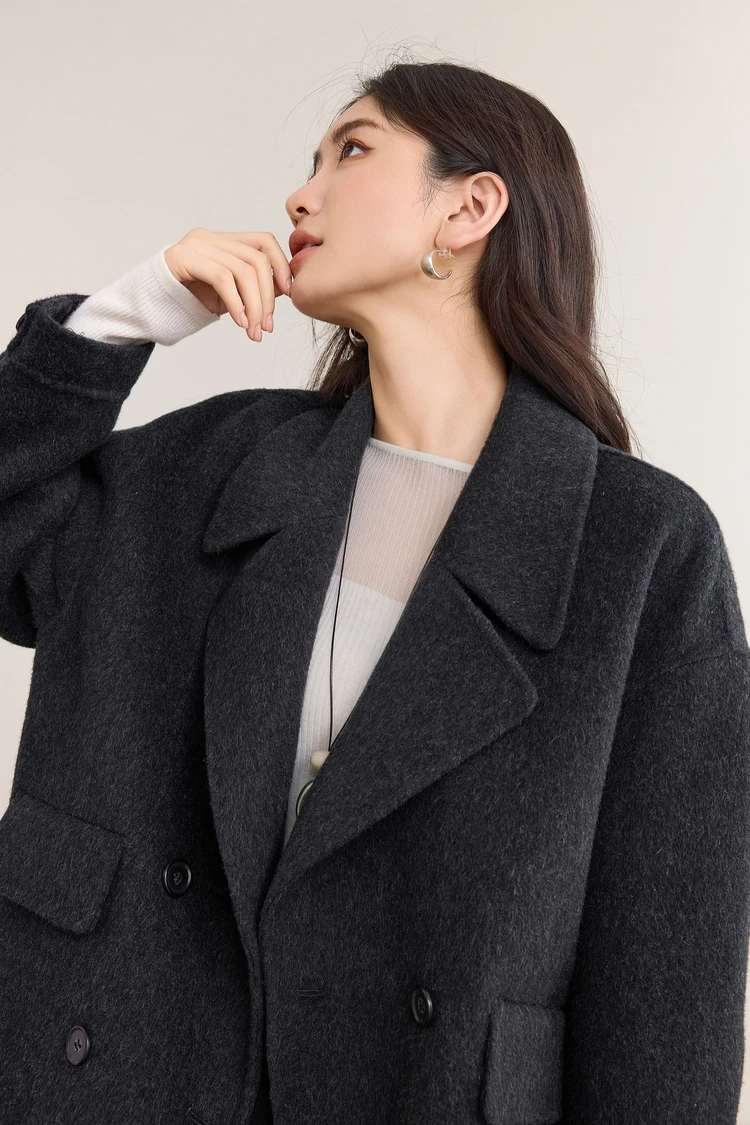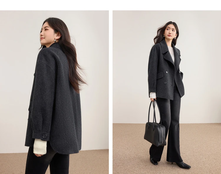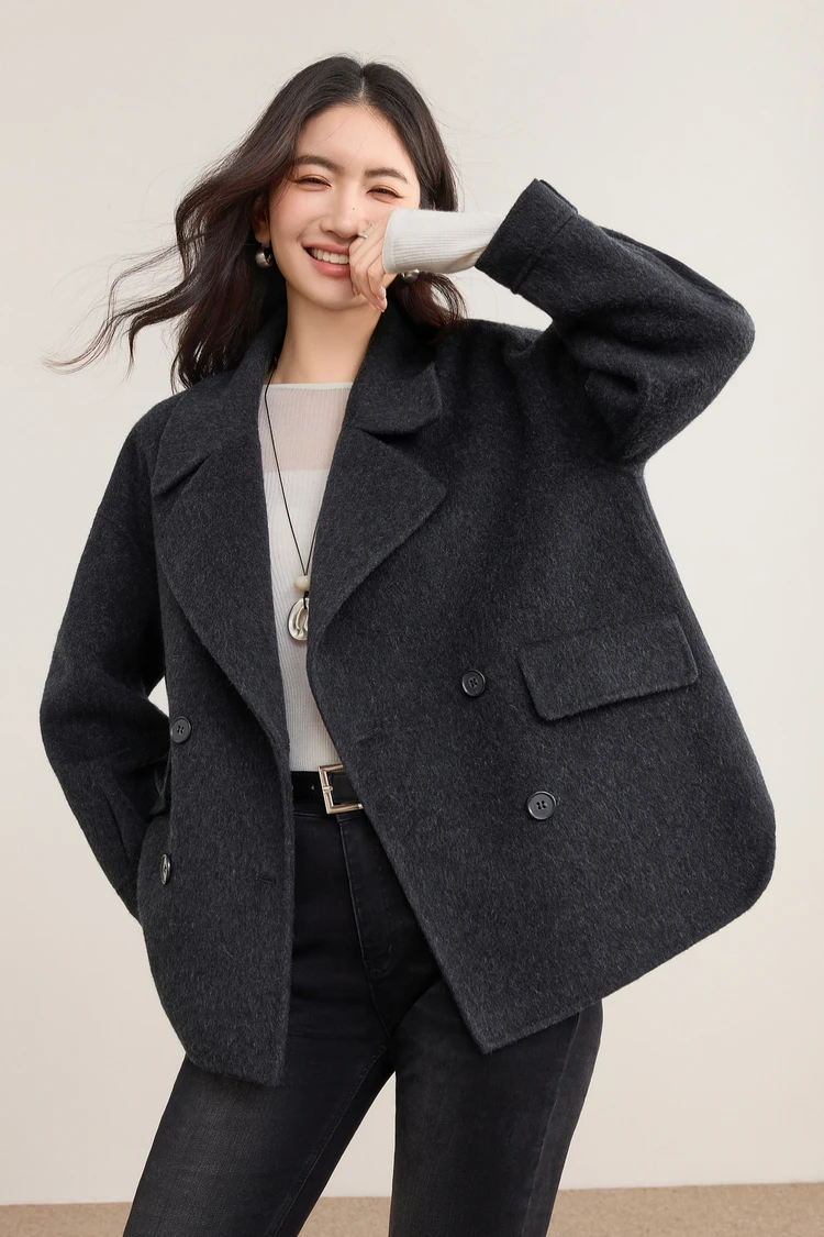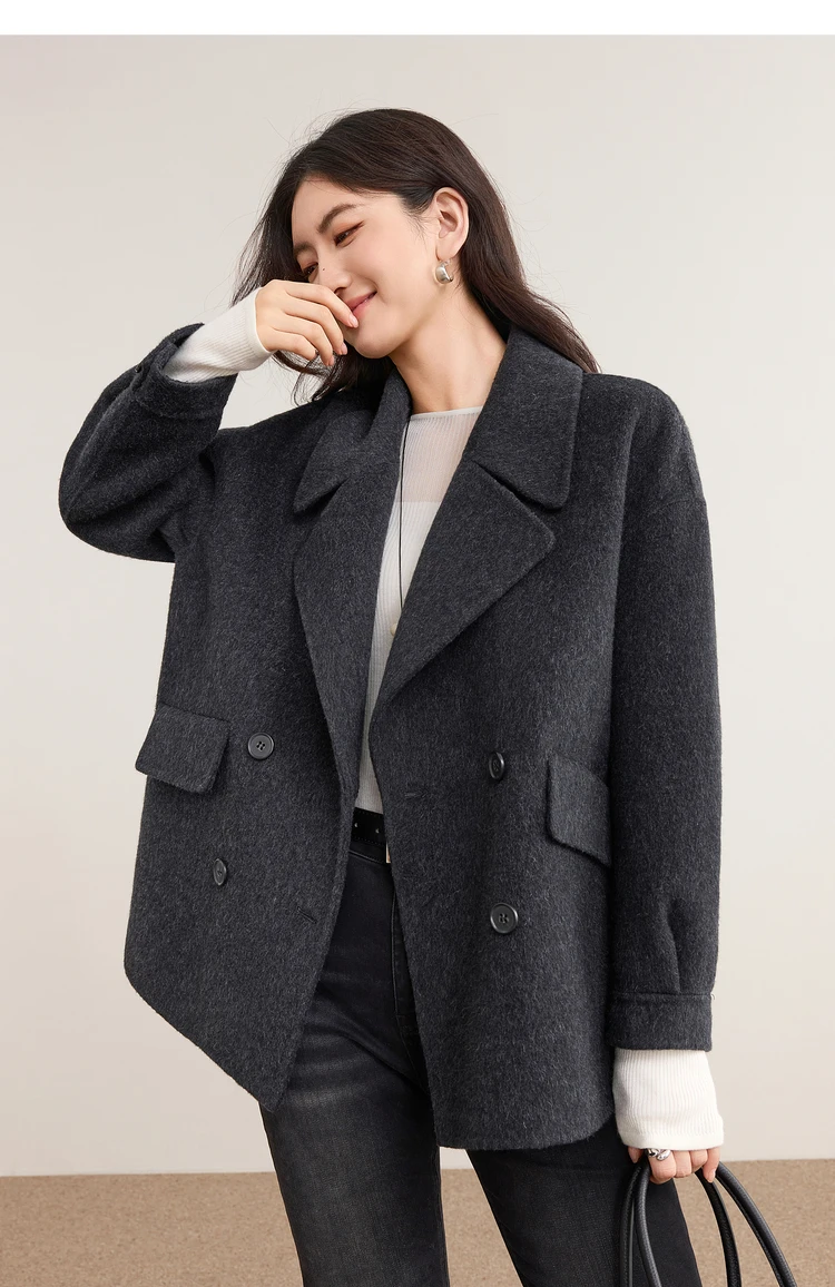 SENTUBILA Cappotto di lana double face da donna 2025 Cappotto invernale da pendolare caldo doppio petto stile britannico W54OC8775