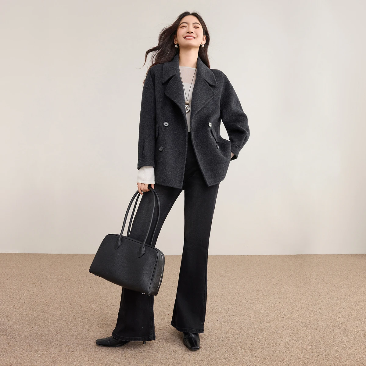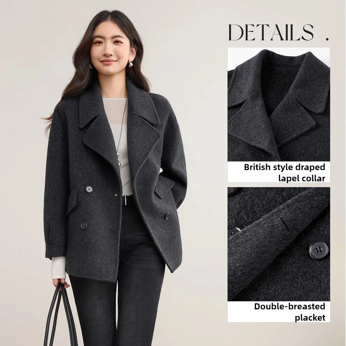 SENTUBILA Cappotto di lana double face da donna 2025 Cappotto invernale da pendolare caldo doppio petto stile britannico W54OC8775