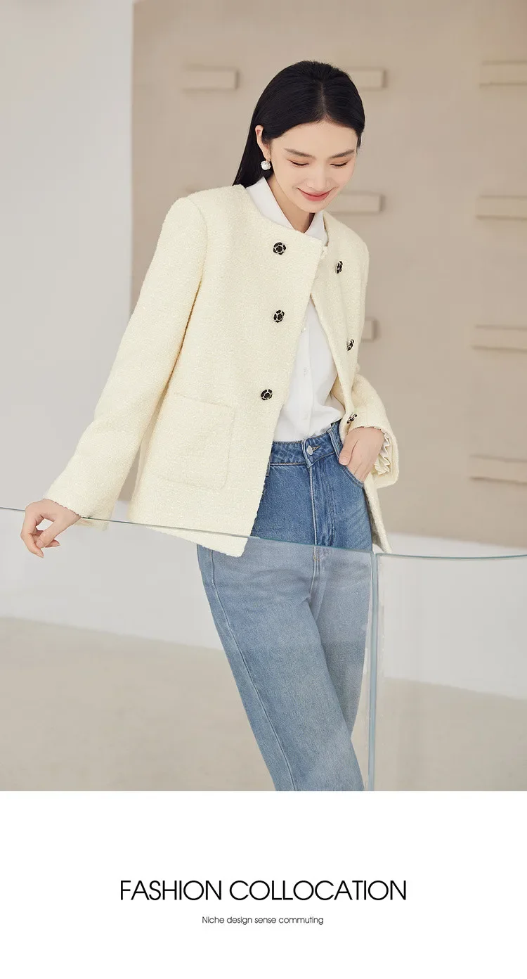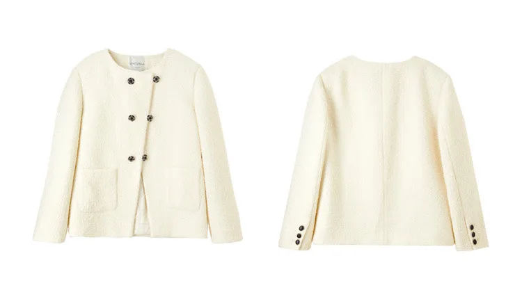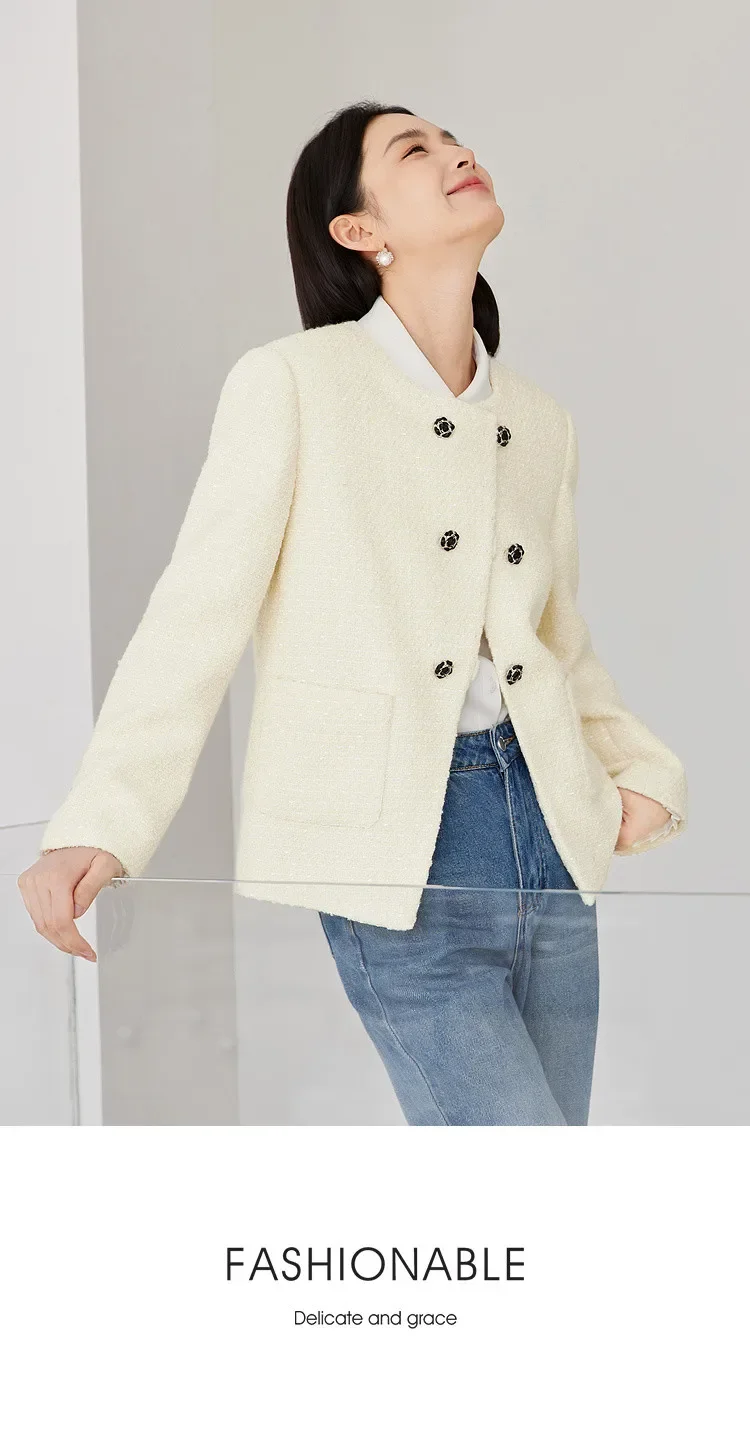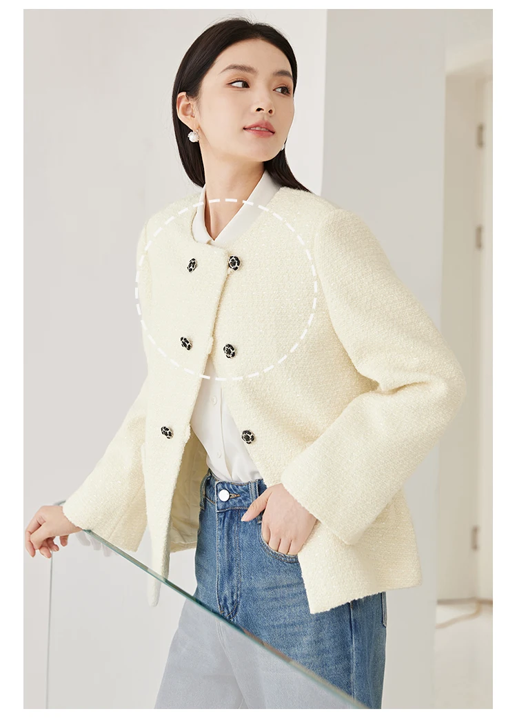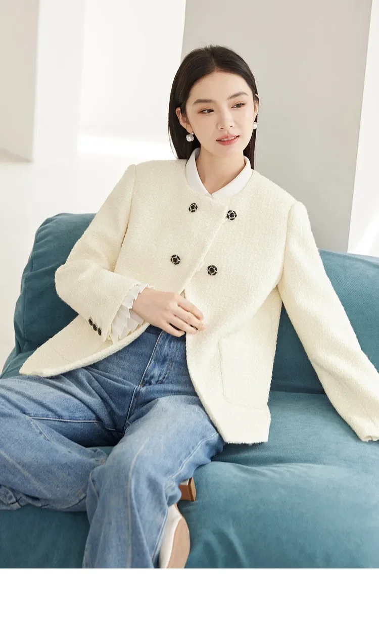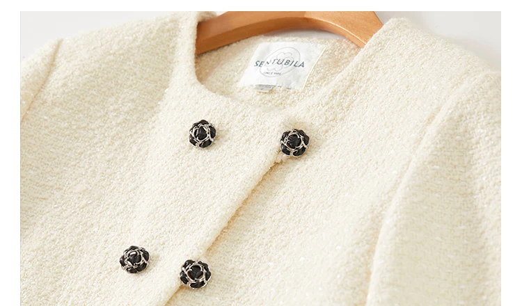 SENTUBILA Giacca corta in tweed di lana 2025 Inverno girocollo doppio petto Cappotto elegante allentato Capispalla da donna 144W57982X