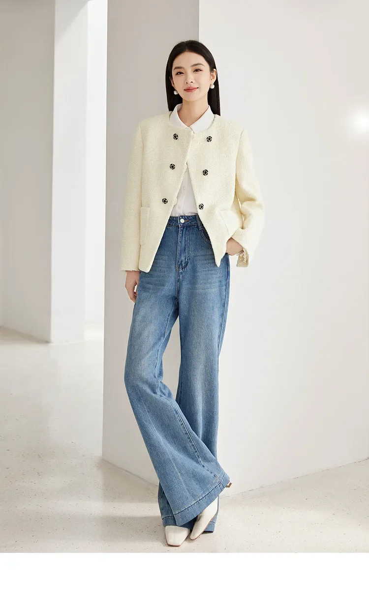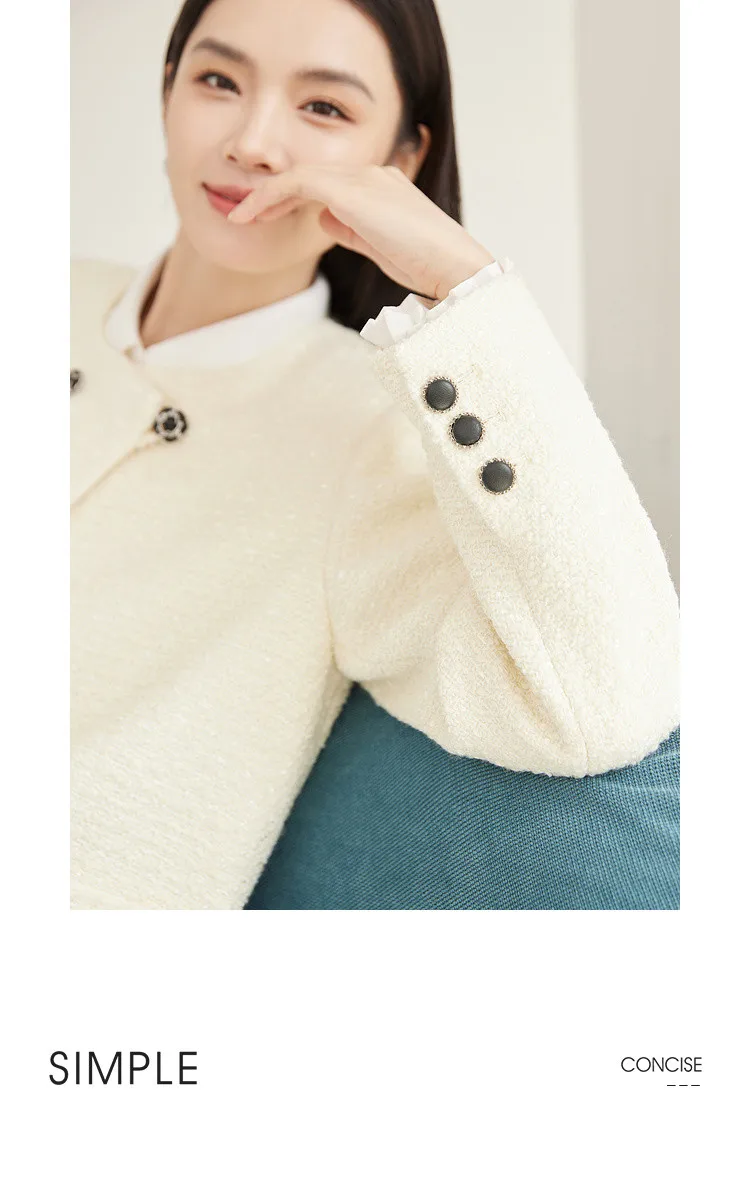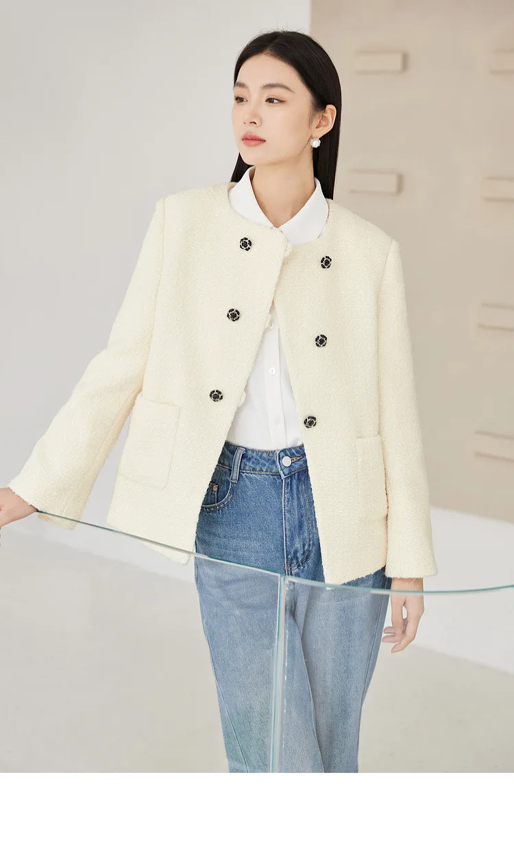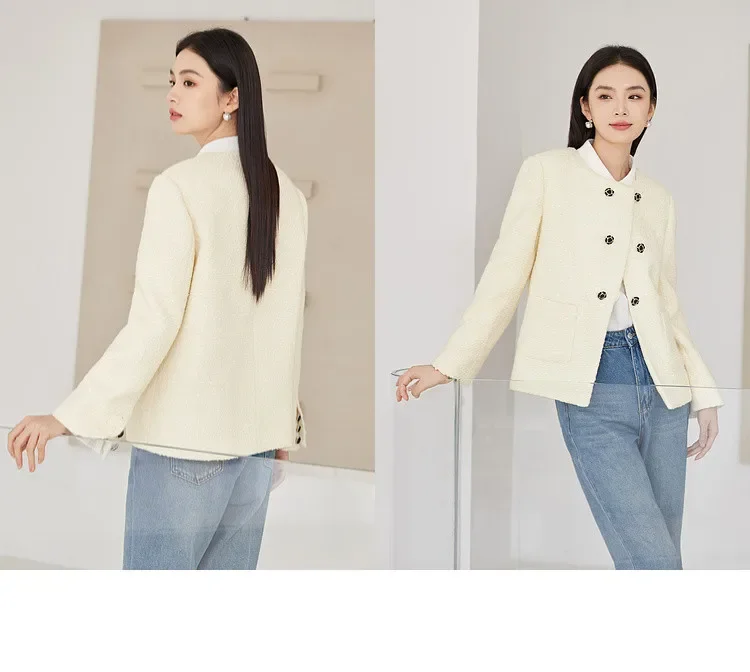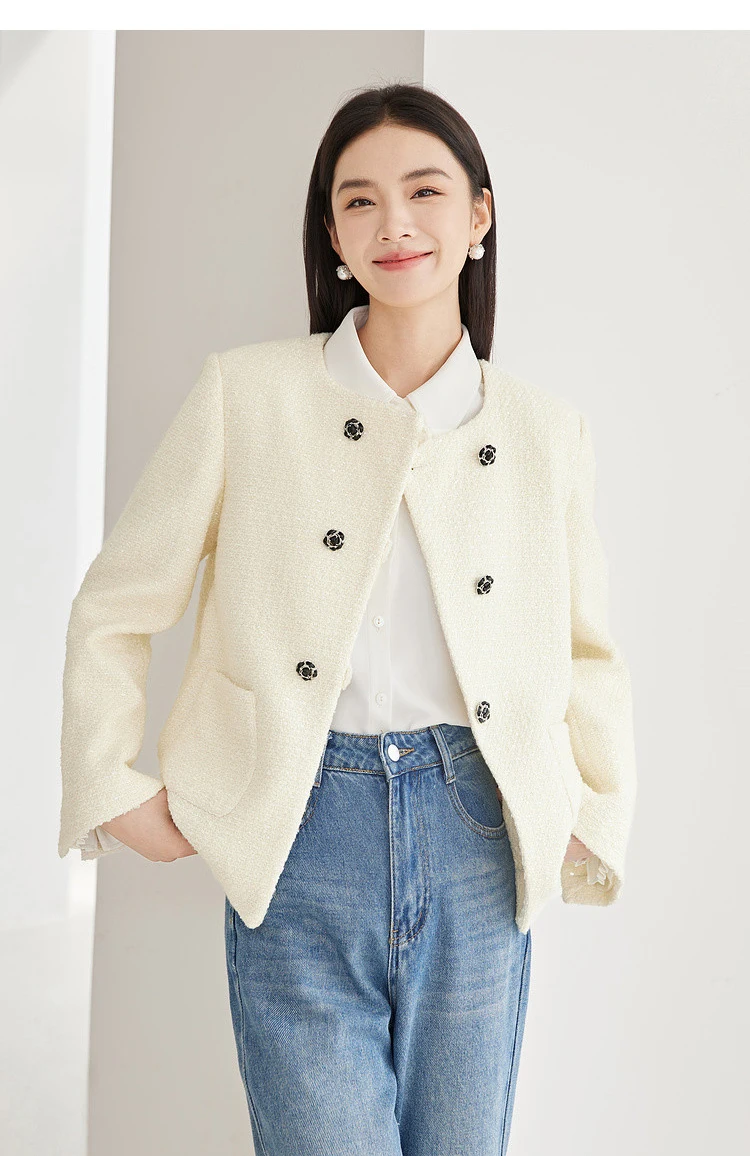 SENTUBILA Giacca corta in tweed di lana 2025 Inverno girocollo doppio petto Cappotto elegante allentato Capispalla da donna 144W57982X