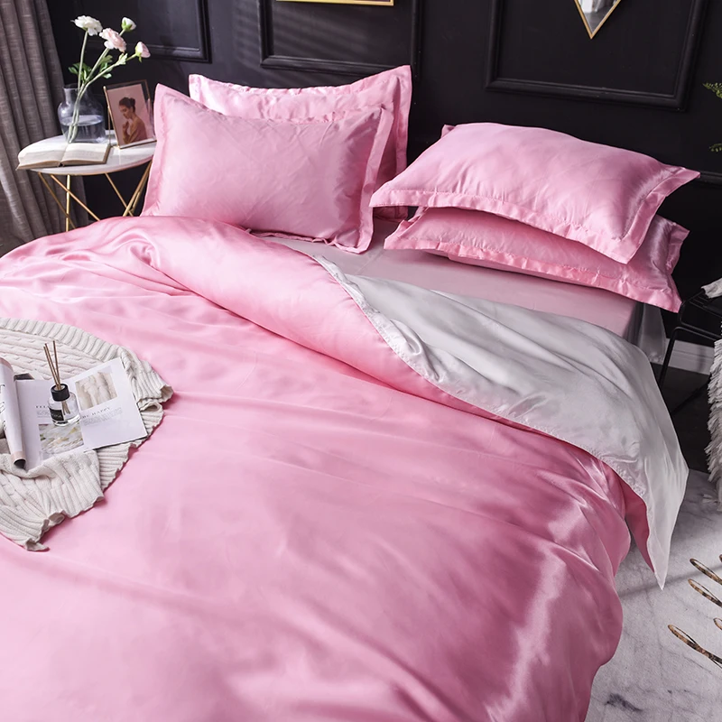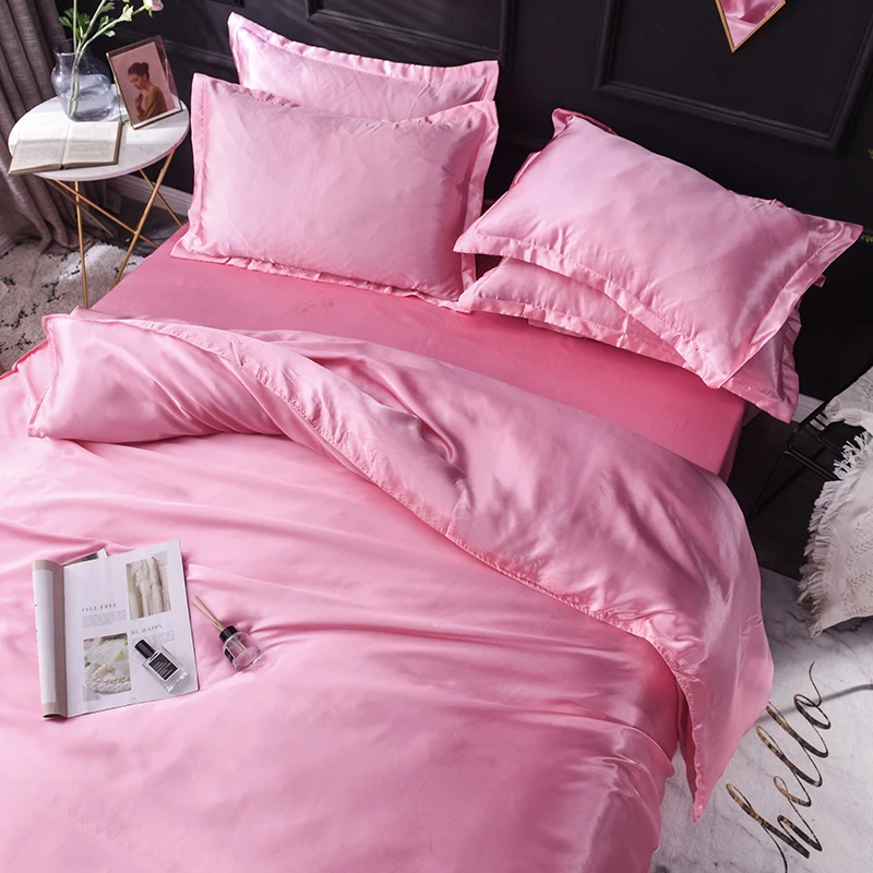 10 recensioni per Set biancheria da letto in seta solida con lenzuolo Copripiumino Federa in raso Lenzuolo singolo per coppia King Queen Twin Size