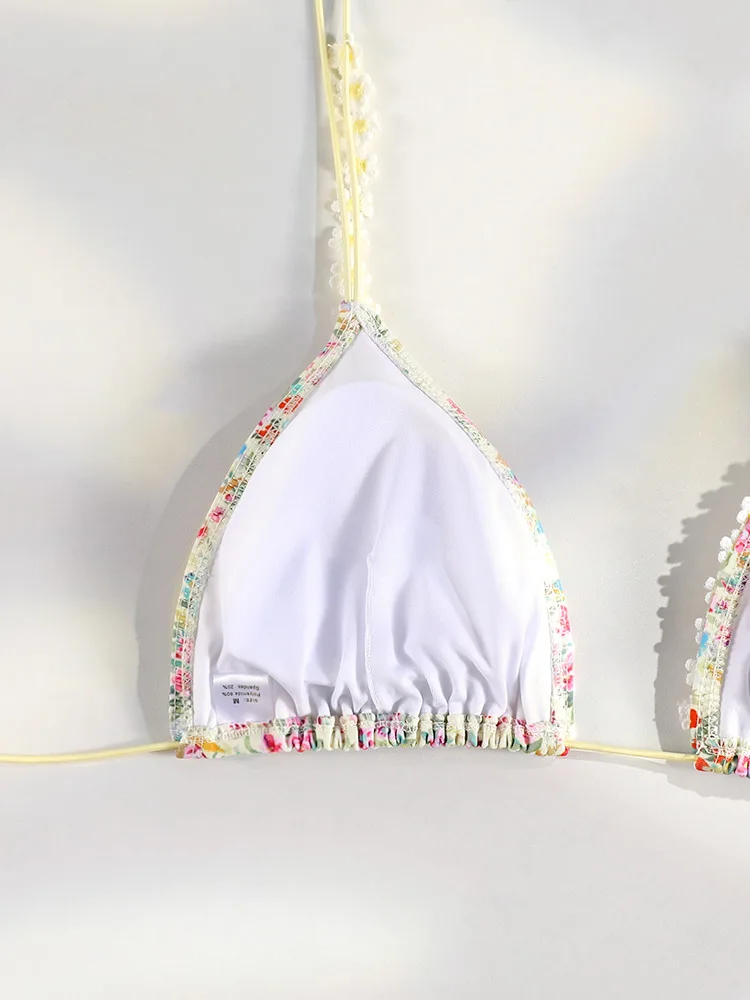 Set bikini bordato con stampa floreale Costumi da bagno sexy Donna 2025 Bikini Costume da bagno Micro perizoma Fasciatura Costumi da bagno