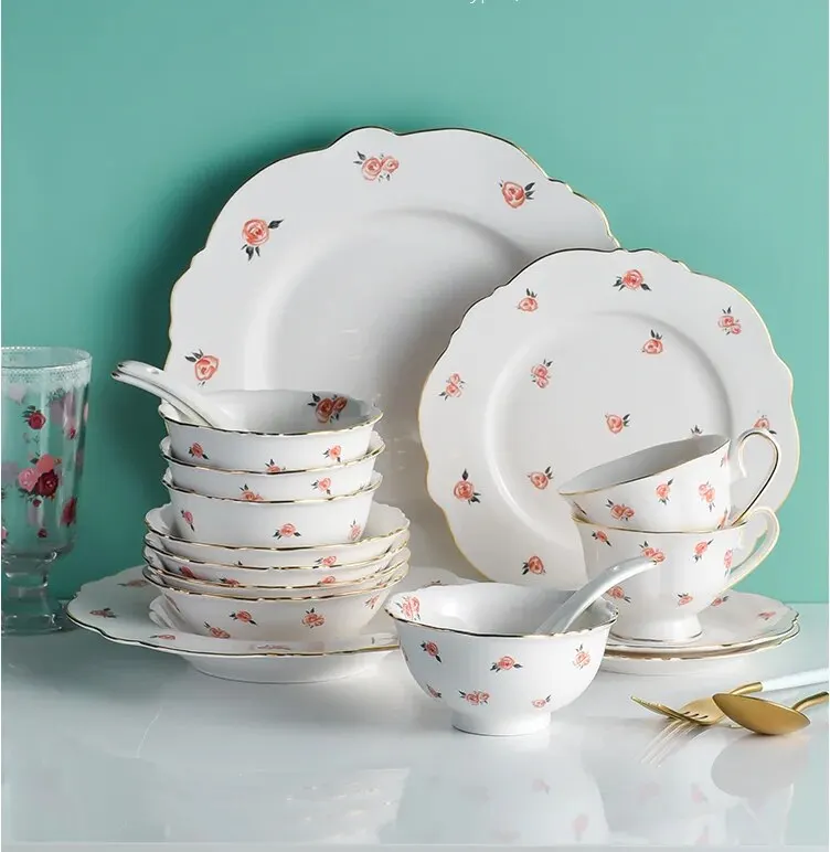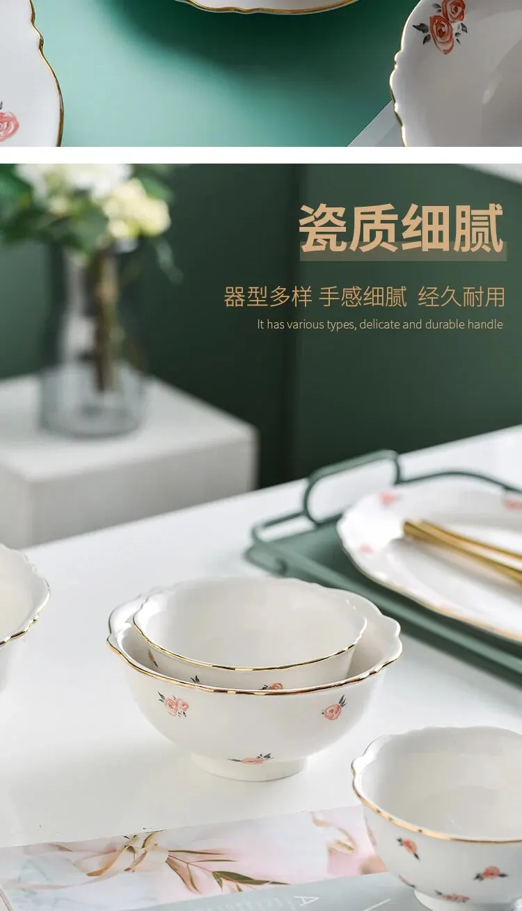 Set ciotola e piatto in ceramica New Bone China Phnom Penh Rose Stoviglie Dessert Piatto Bistecca occidentale Colazione