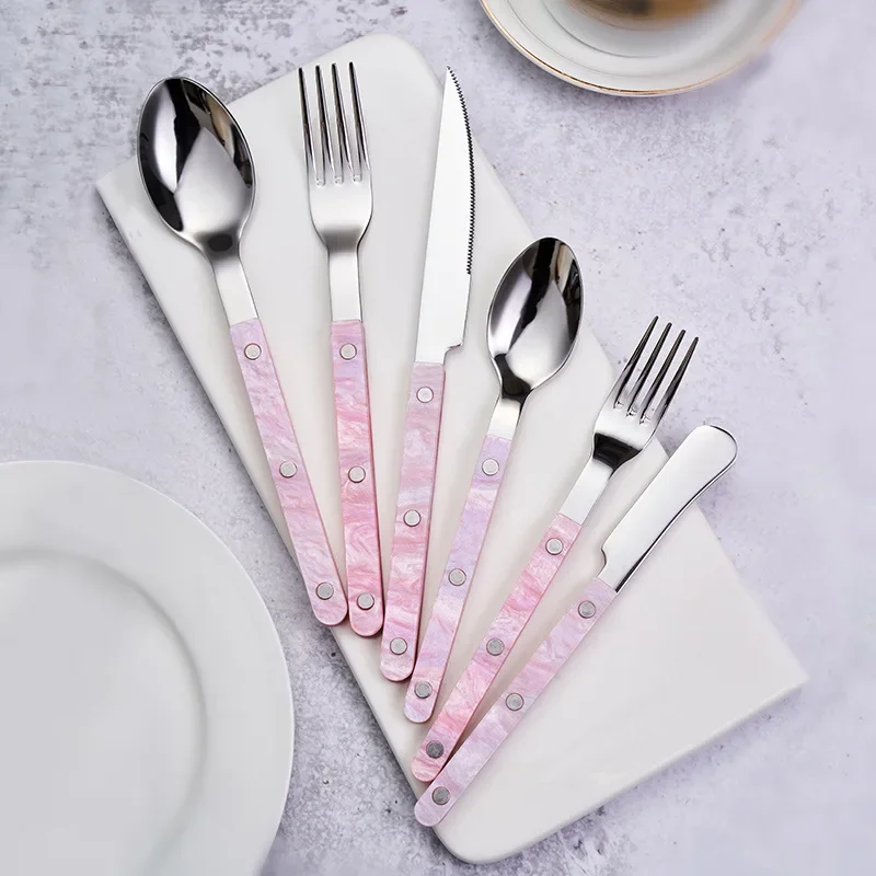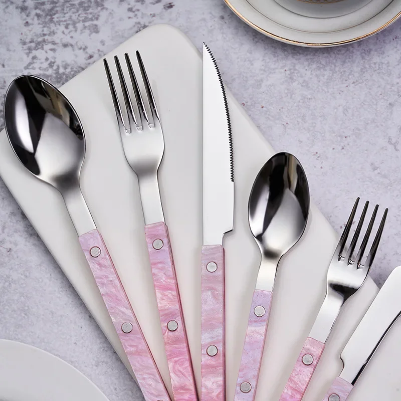 ✨ Elegante set di posate rosa in acciaio inossidabile 304✨— Dino con stile e durata premium!