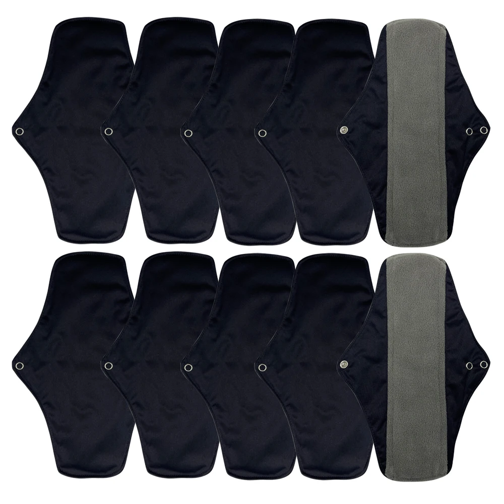 Assorbenti mestruali riutilizzabili per donna, assorbenti lavabili in carbone di bambù, assorbenti per periodo in tessuto da donna, set da 10 pezzi