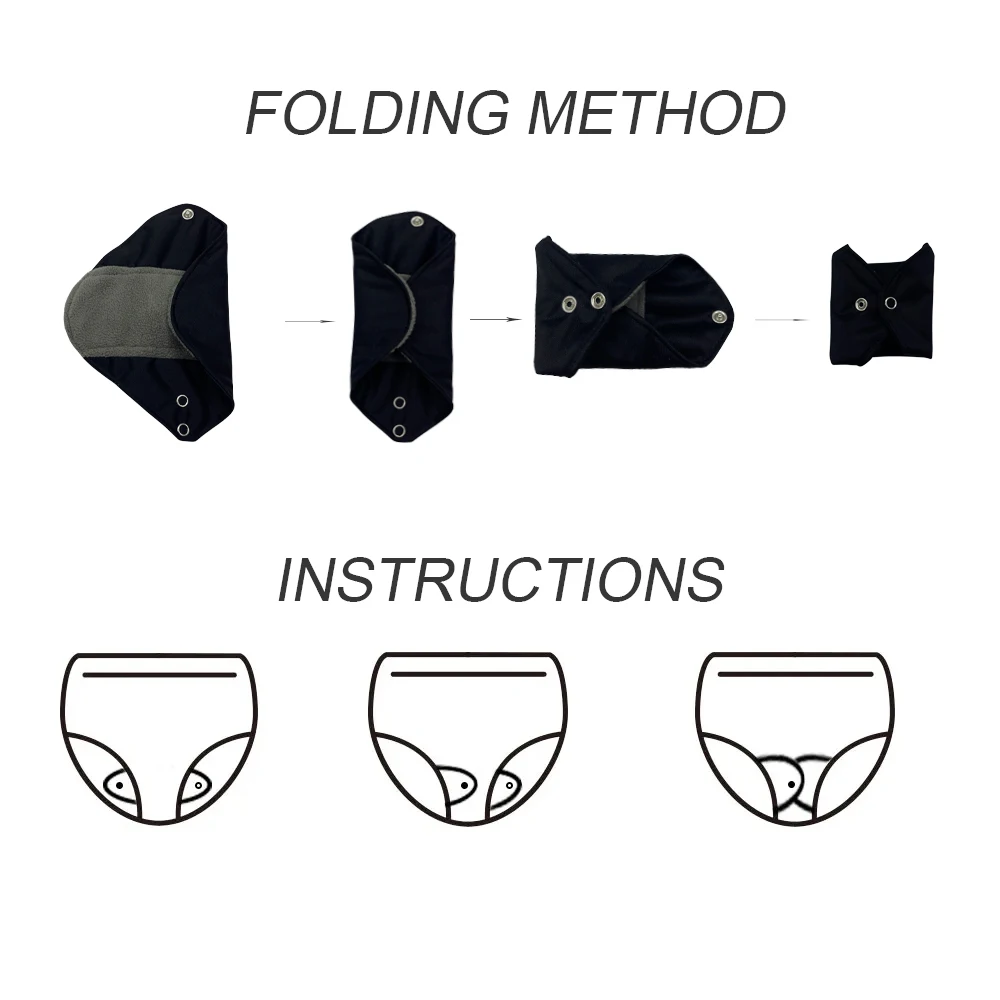 Indossa il strato di carbone di bambù super morbido (lato di colore grigio) accanto alla pelle mentre il lato stampato del pad tocca la tua biancheria intima.Luogo semplicemente il cuscinetto nella tua biancheria intima e allaccia le alette insieme sotto il Snap.