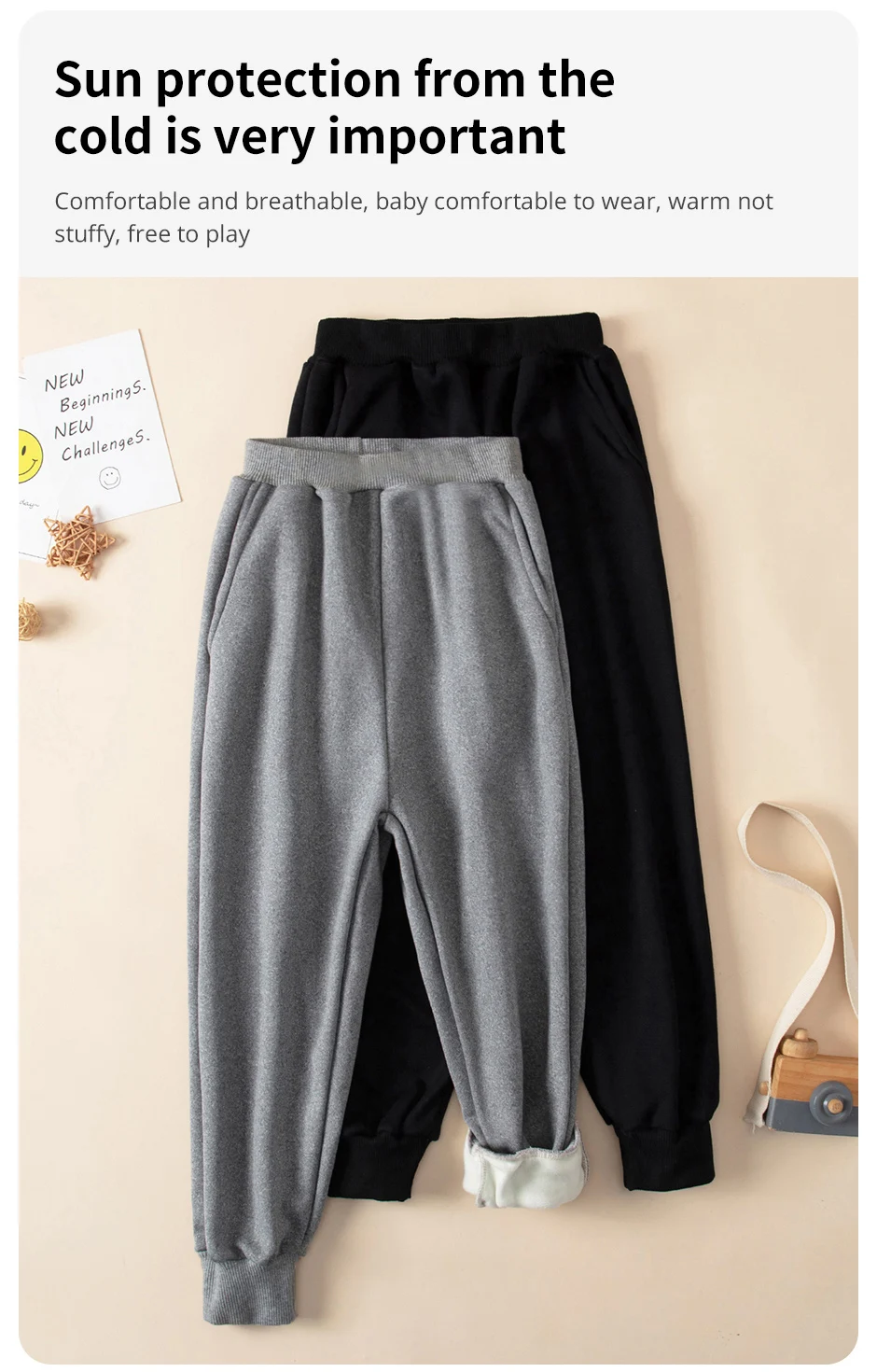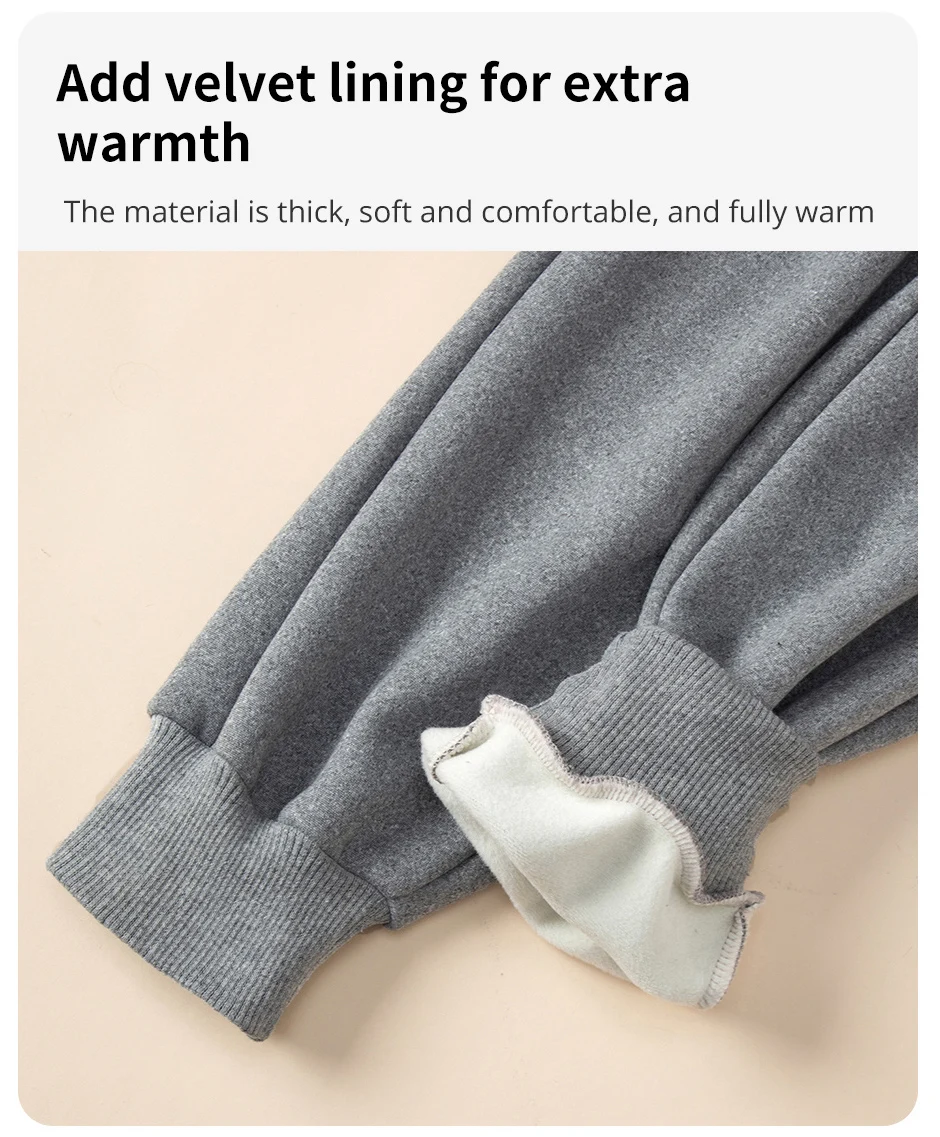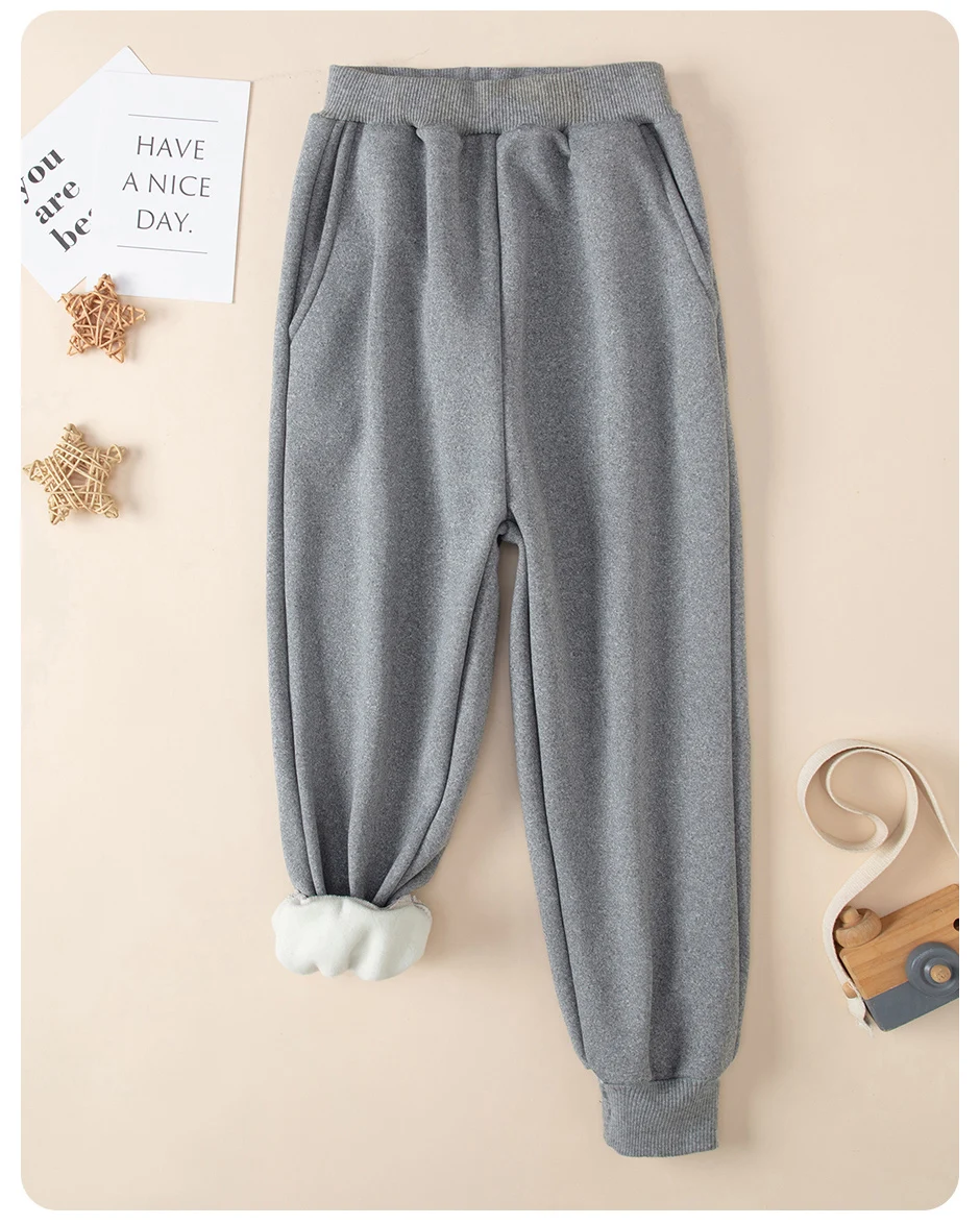 Set da 2 pezzi di pantaloni Harem spessi e caldi in tinta unita autunno/inverno per bambini per ragazzi e ragazze Pantaloni sportivi e in pile neri grigi