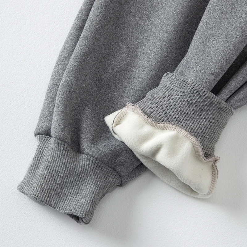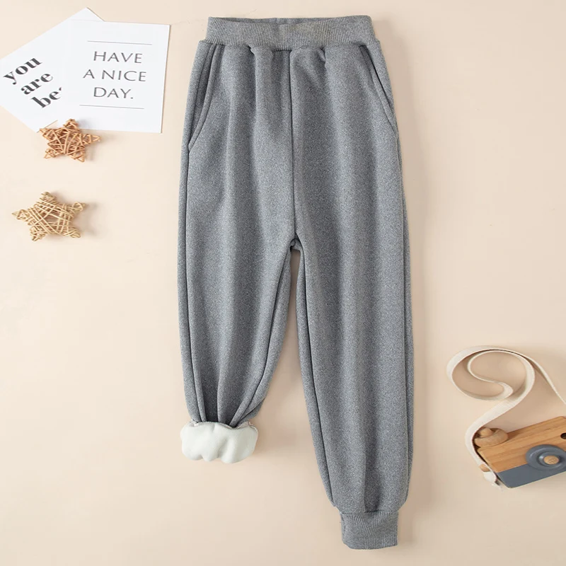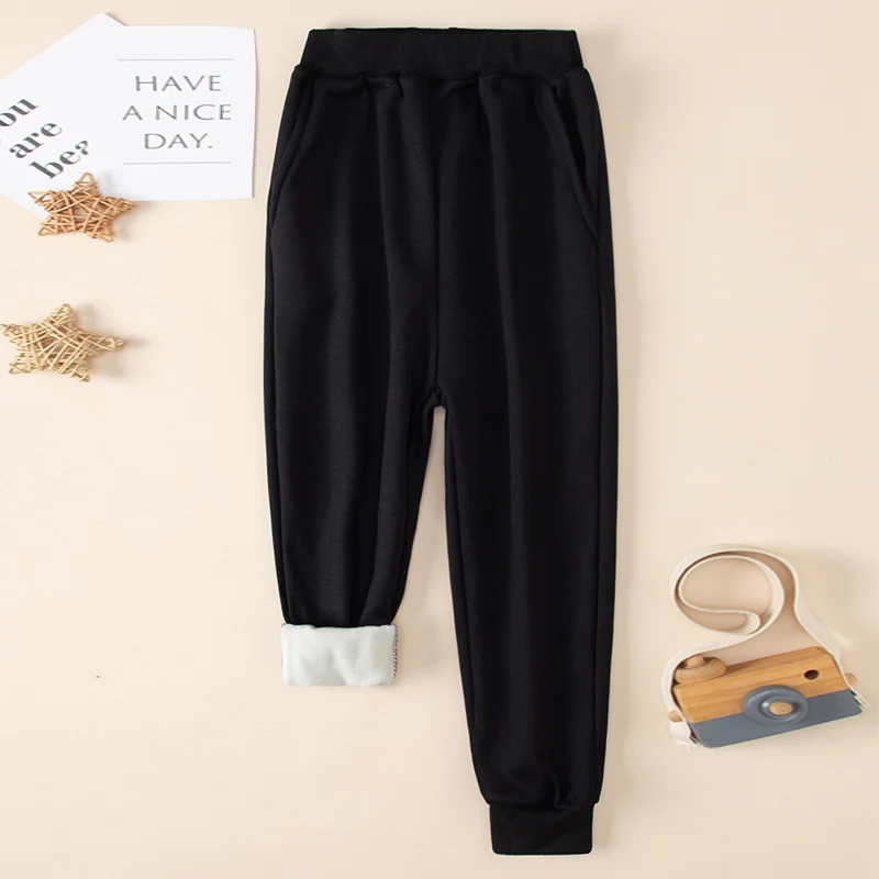Set da 2 pezzi di pantaloni Harem spessi e caldi in tinta unita autunno/inverno per bambini per ragazzi e ragazze Pantaloni sportivi e in pile neri grigi