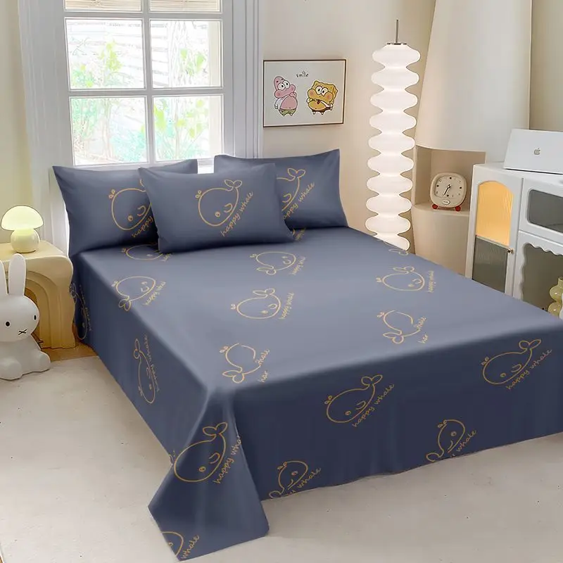 Set da 3 pezzi Lenzuola piatte stampate lavate per la casa Confortevole copriletto Queen King Size Lenzuolo traspirante con 2 fodere per cuscini