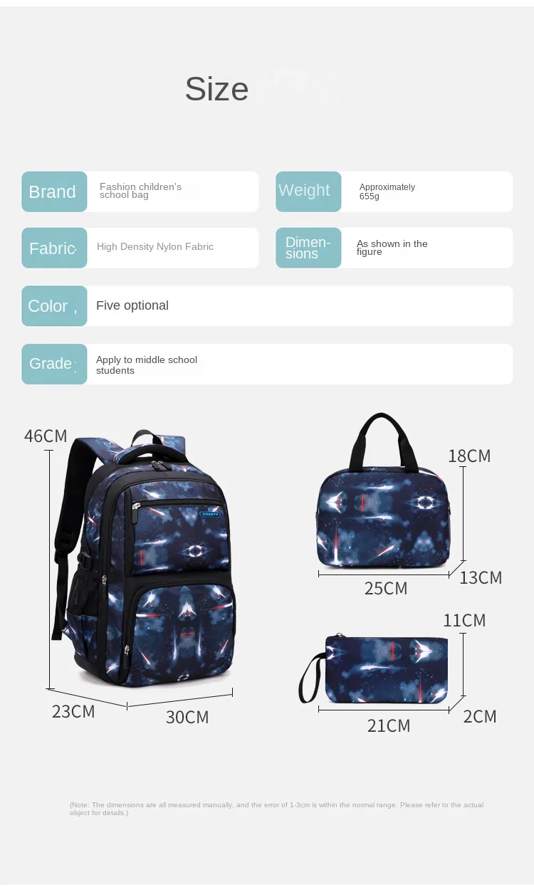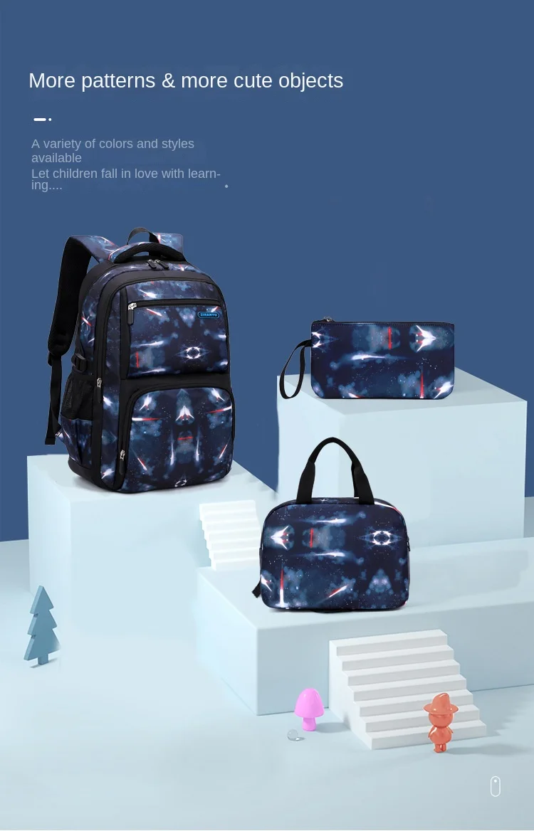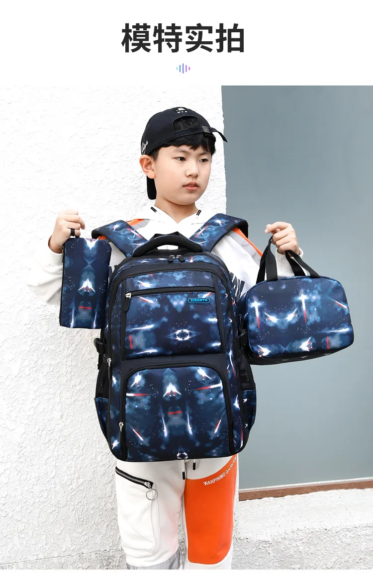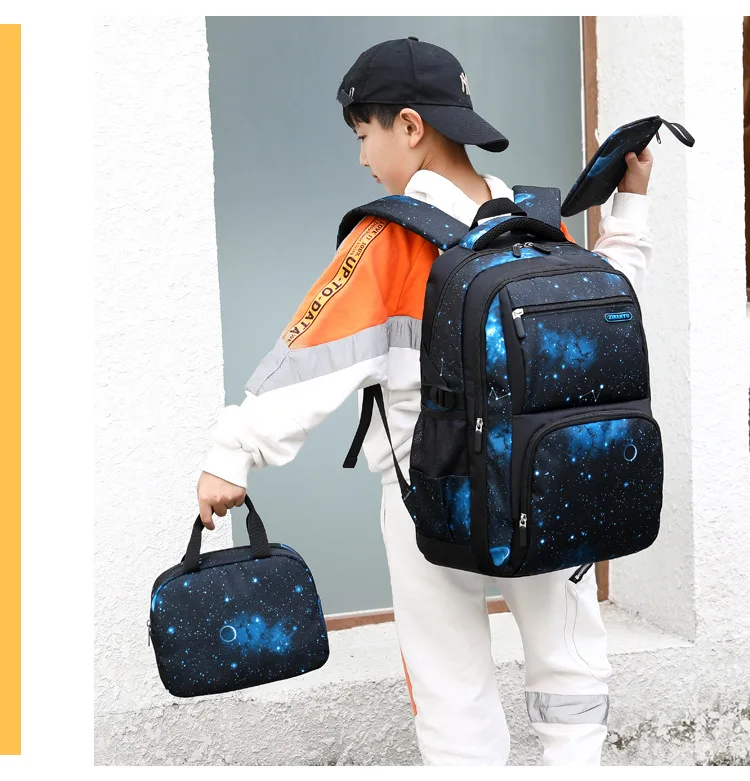 Set da 3 zaini scolastici per bambini modello cielo stellato zaino per studenti per ragazzi borsa da scuola con astuccio per il pranzo