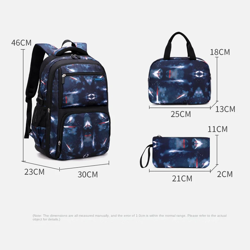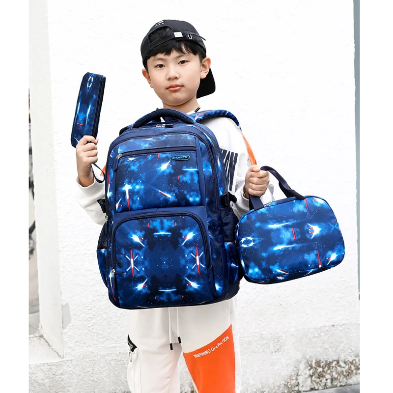Set da 3 zaini scolastici per bambini modello cielo stellato zaino per studenti per ragazzi borsa da scuola con astuccio per il pranzo