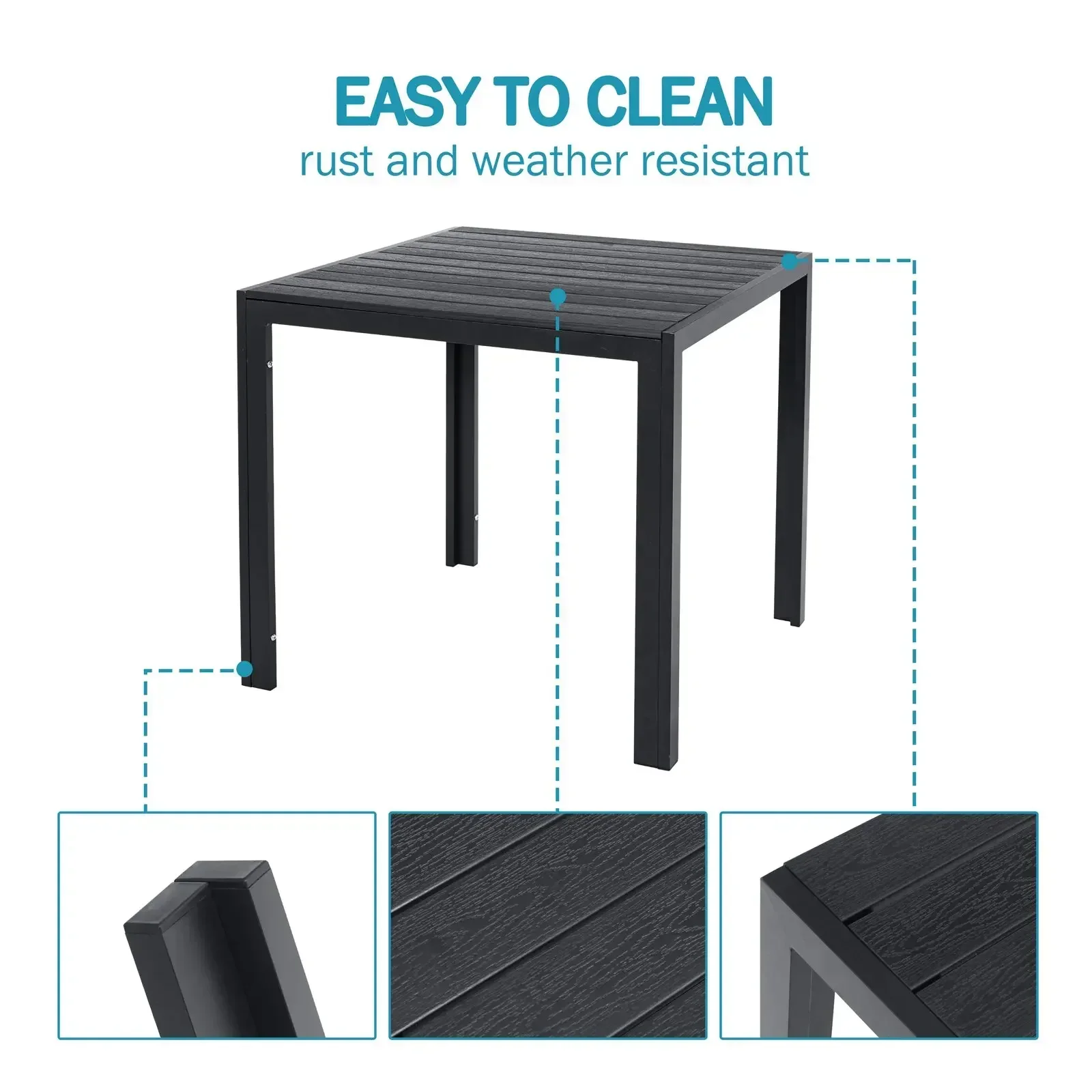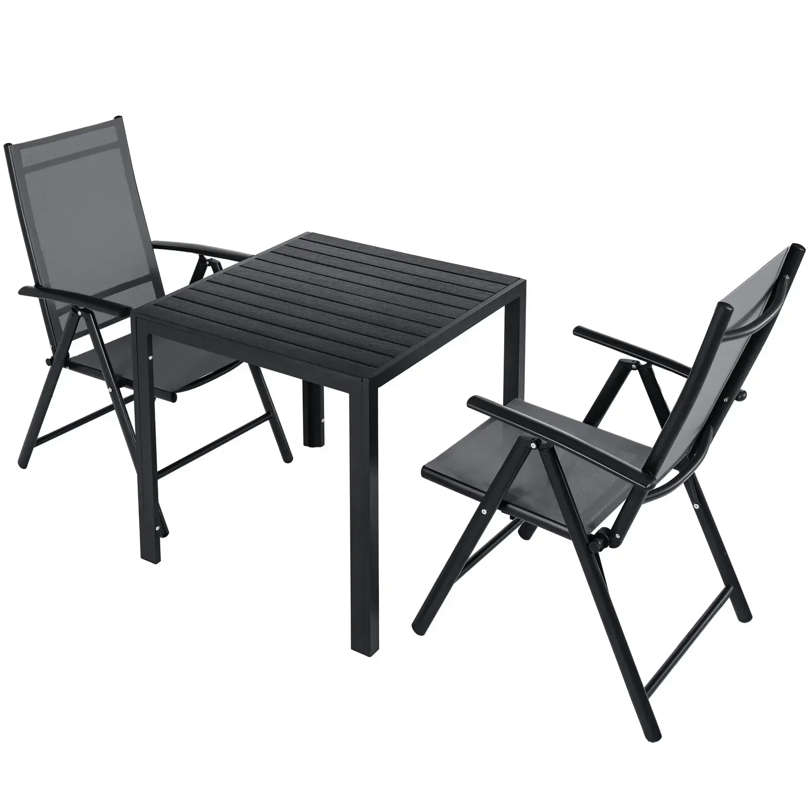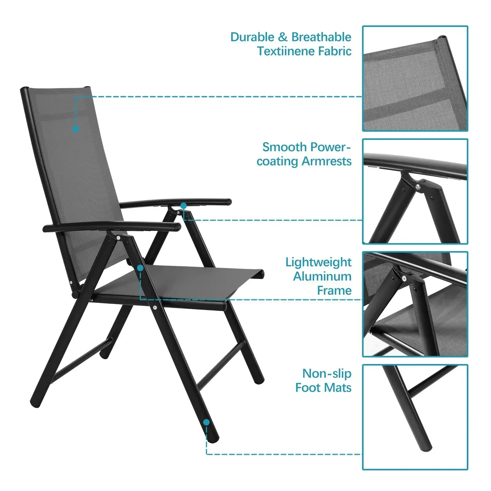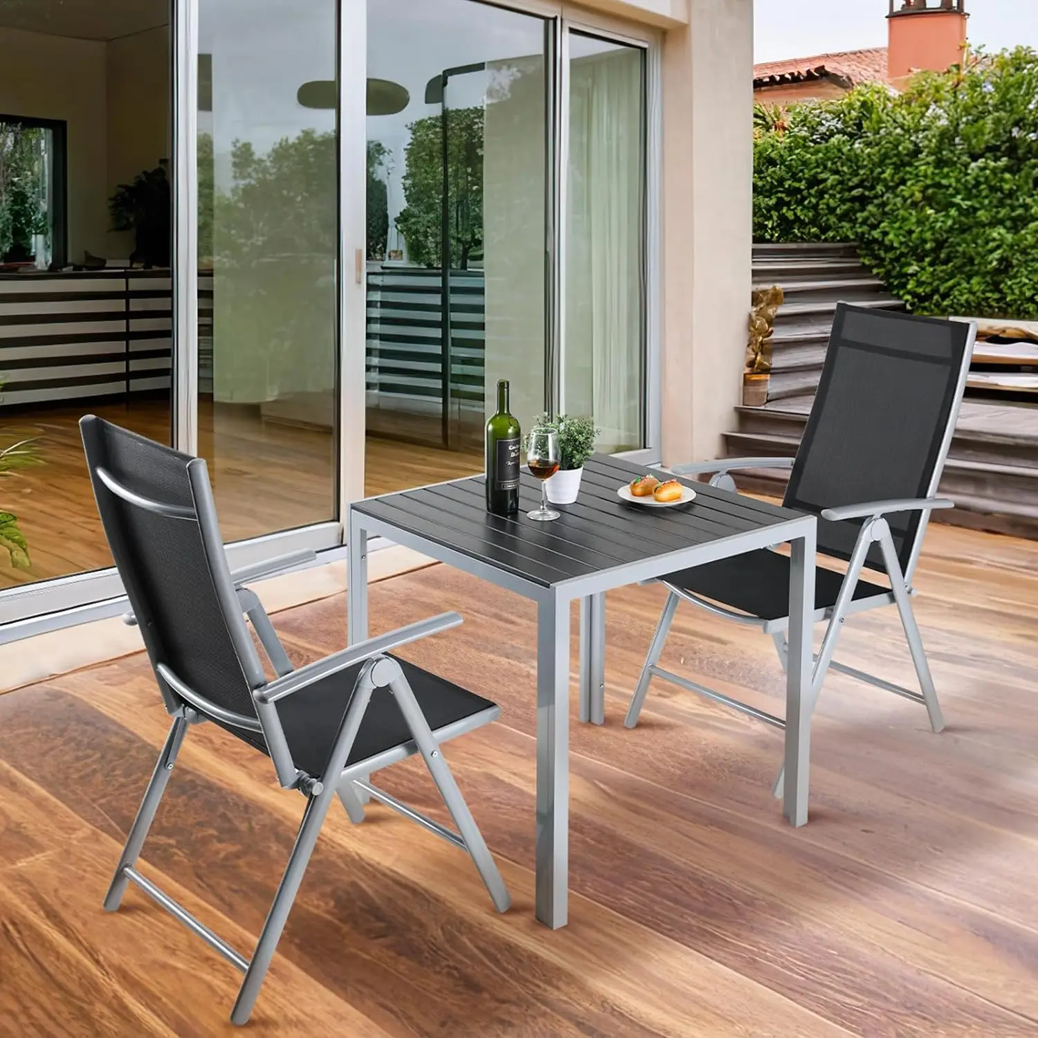Set da balcone da 5 pezzi Mobili da giardino Sedute in alluminio Tavolo da giardino 4 sedie pieghevoli Mobili da giardino con schienale alto regolabile a 7 vie Nero, Grigio, Colore legno