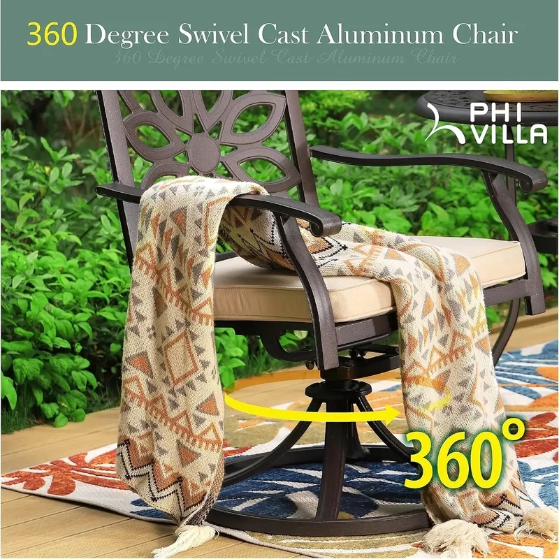 Set da bistrot da patio in 3 pezzi, con 2 sedie girevoli extra larghe con cuscini e tavolo da pranzo rotondo con foro per ombrelloneDisponibilità: 5 disponibili