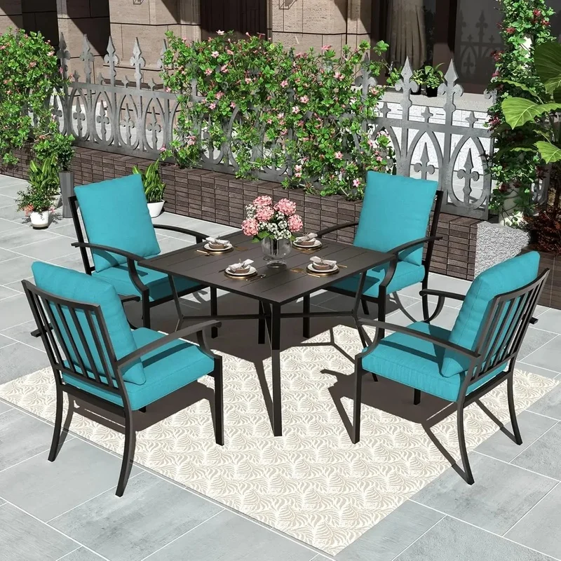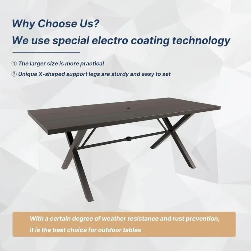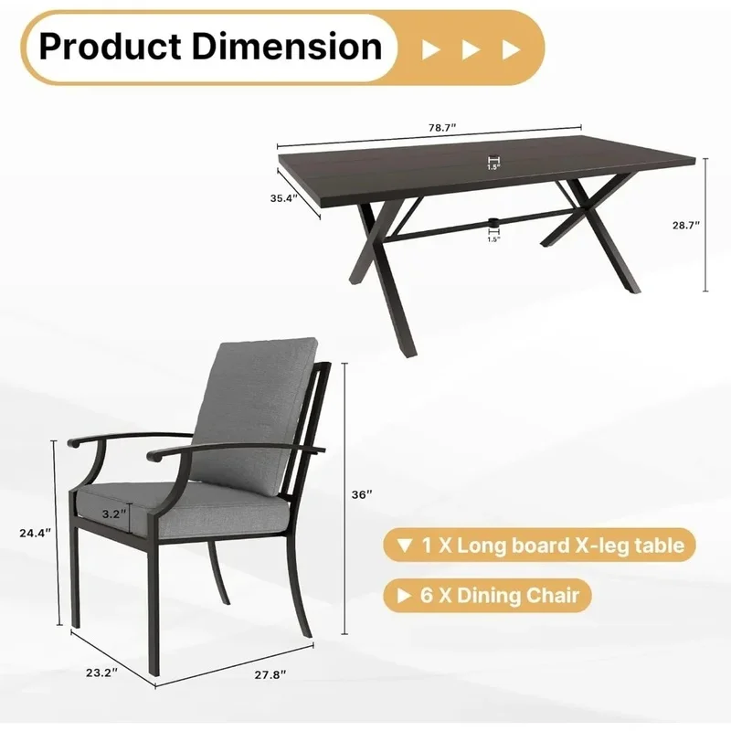 Set da pranzo da esterno rettangolare da 7 pezzi con foro per ombrellone – Tavolo da patio e sedie per giardino e prato