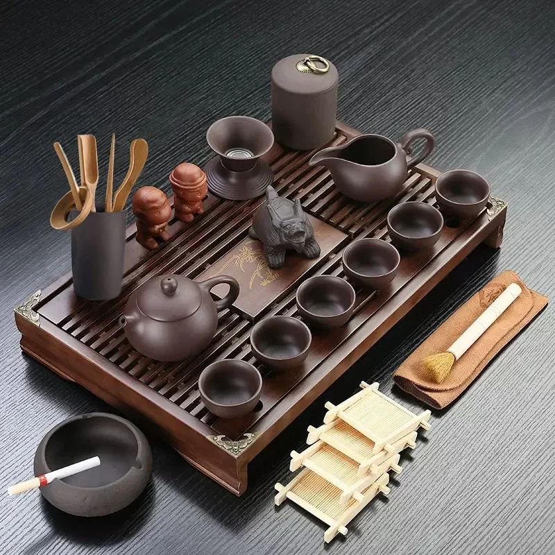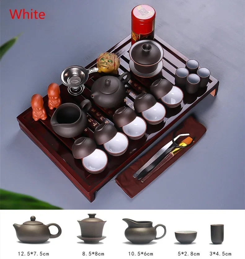 Set da tè in ceramica Kung Fu vassoio in legno massello teiera 27 pezzi Tea Suit cerimonia del tè cinese