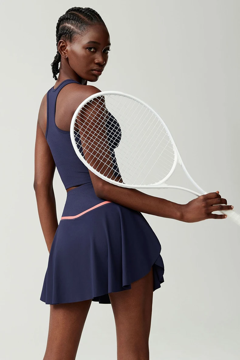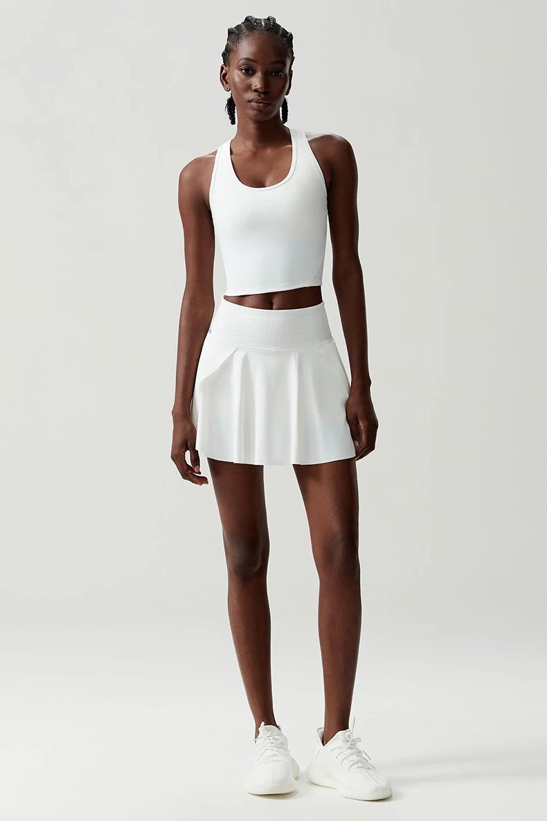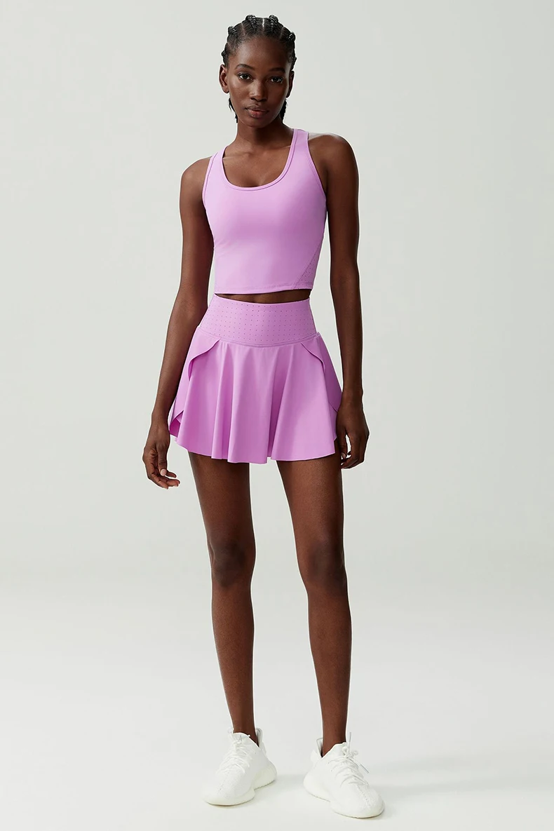 Set da yoga fitness da donna in due pezzi Tuta da corsa per esterni traspirante Gonna da tennis elastica morbida Abbigliamento da allenamento Abbigliamento sportivo corto