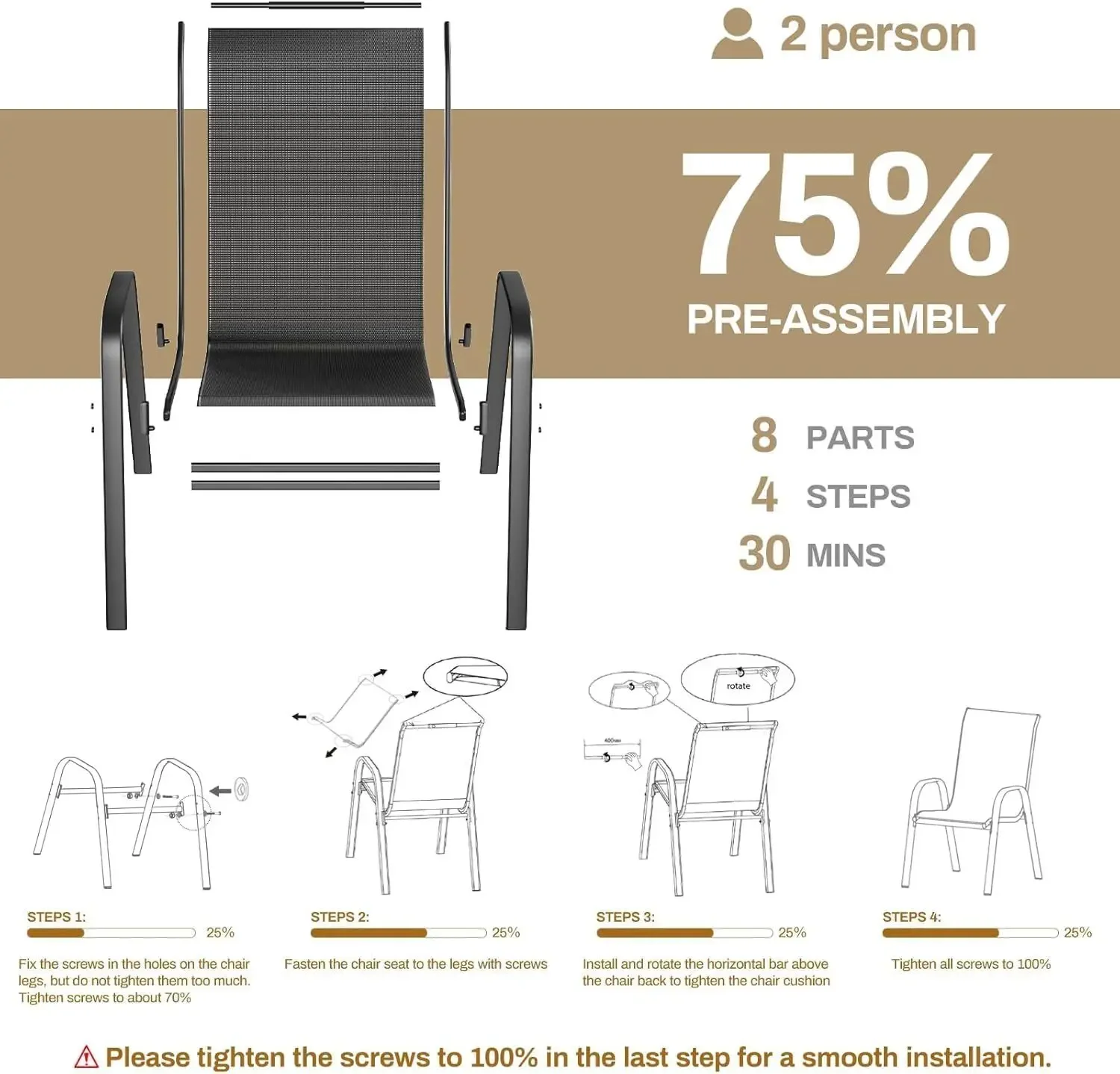 【TUTTO WEATHER & CAREFREE】 Il textilene resistente allo sbiadimento offre una eccellente durabilità e mantiene queste comode sedie da esterno come nuovamente per un lungo tempo. Aggiterà un punto focale istantaneo fino al tuo cortile e decora la tua stagione dopo la stagione domestica.