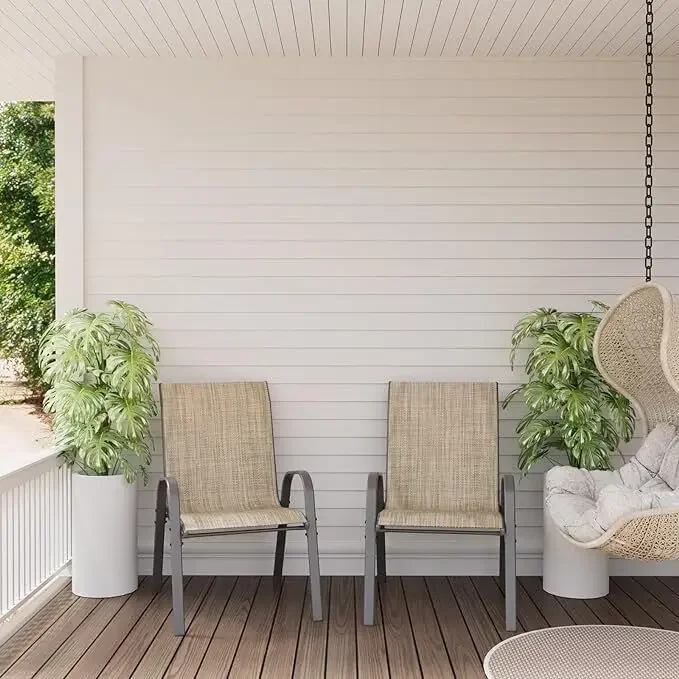 Patio Chairs Set of 6, Outdoor Stackable Dining Chairs for All Weather, Breathable Garden Outdoor Furniture for Backyard Deck