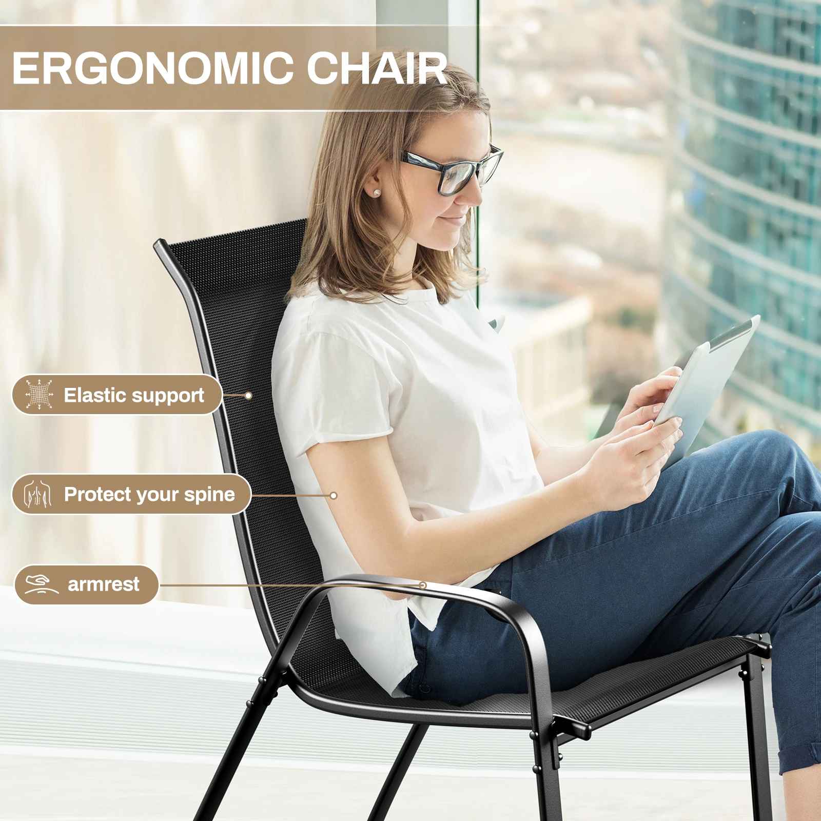 Set di 6 sedie da giardino, sedie da pranzo impilabili da esterno per tutte le stagioni, mobili da giardino traspiranti per terrazza da cortile
