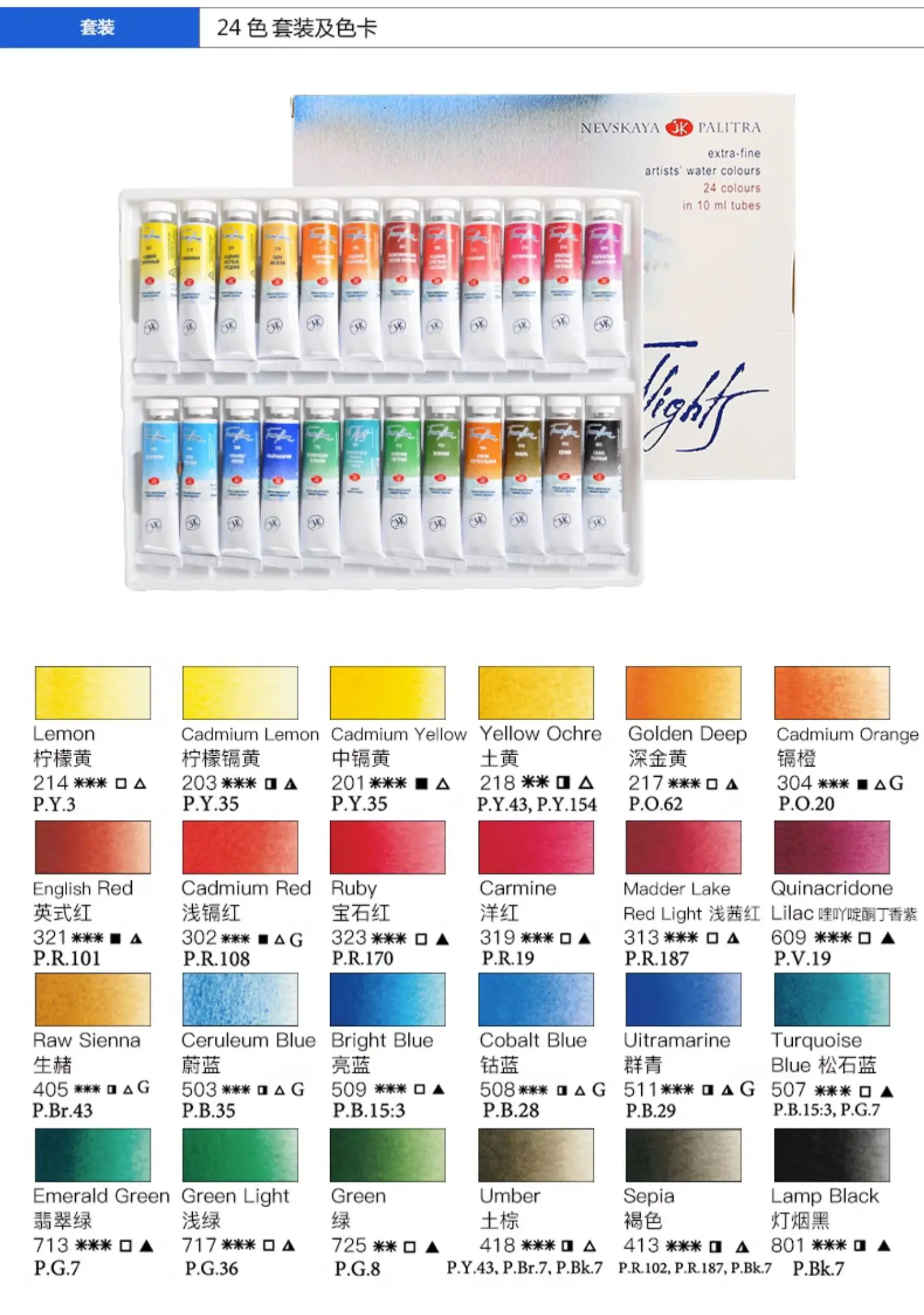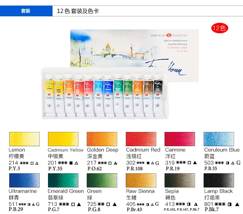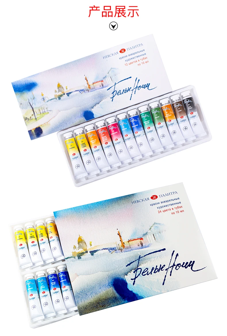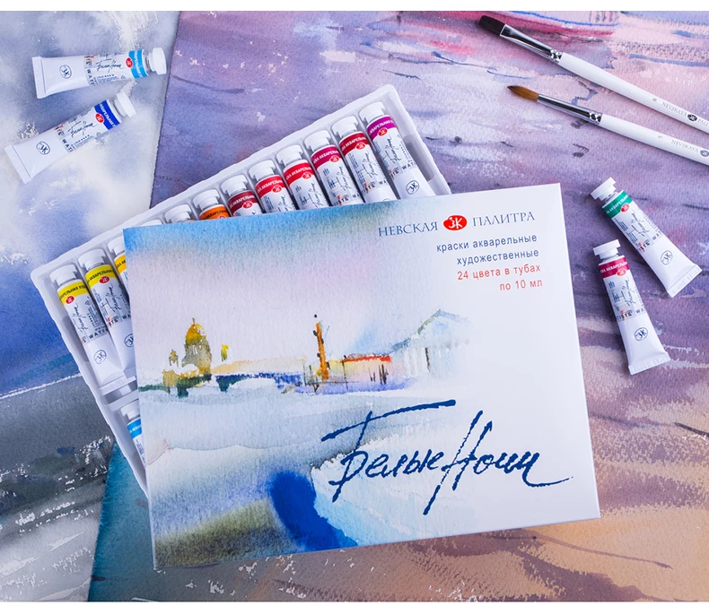 Set di acquerelli professionali per notti bianche russe 12/24 tubi da 10 ml per artisti, materiali artistici premium per artisti e hobbisti