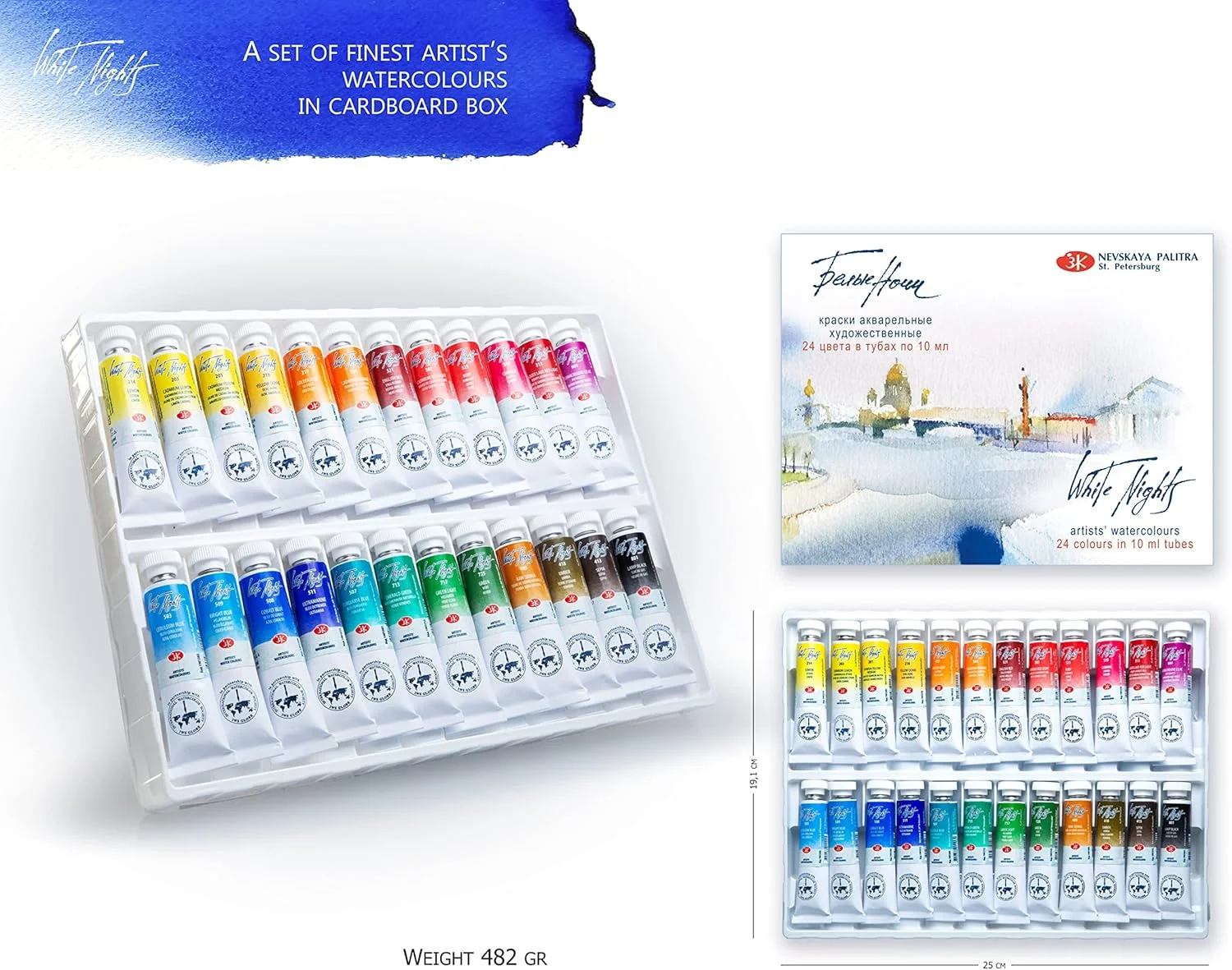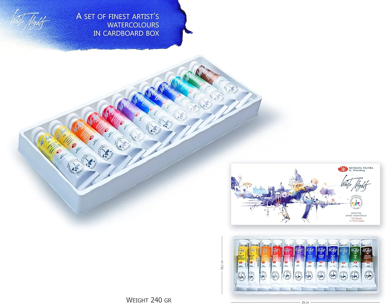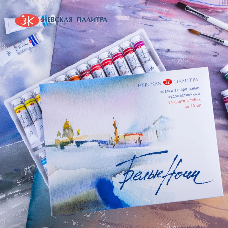 Set di acquerelli professionali per notti bianche russe 12/24 tubi da 10 ml per artisti, materiali artistici premium per artisti e hobbisti