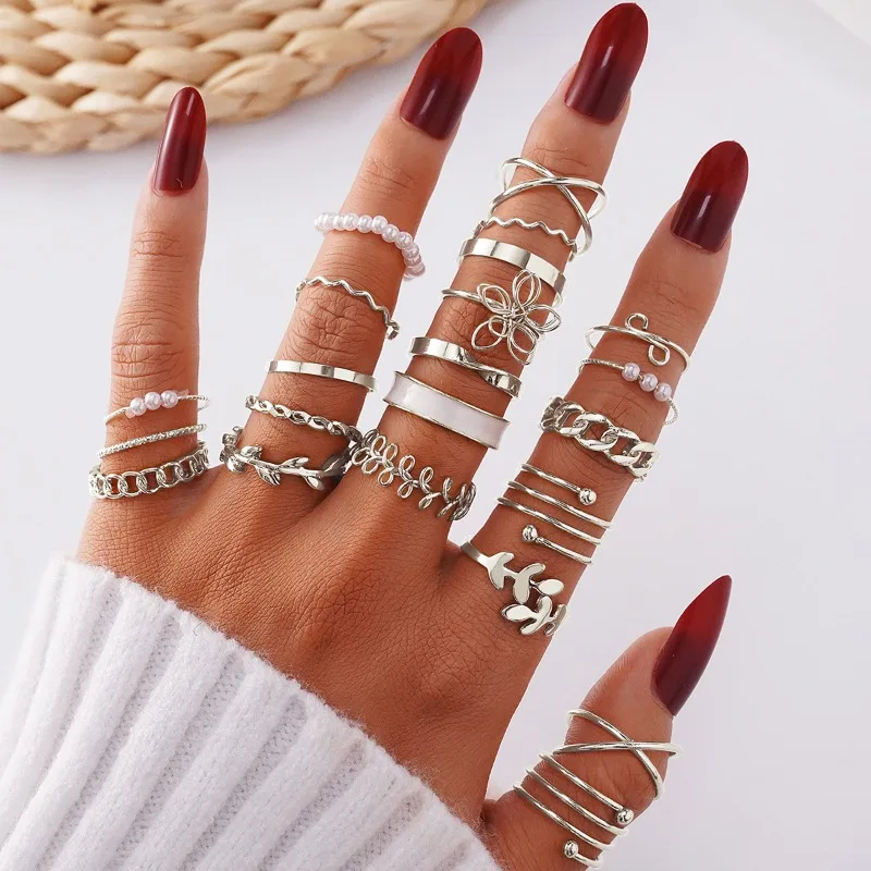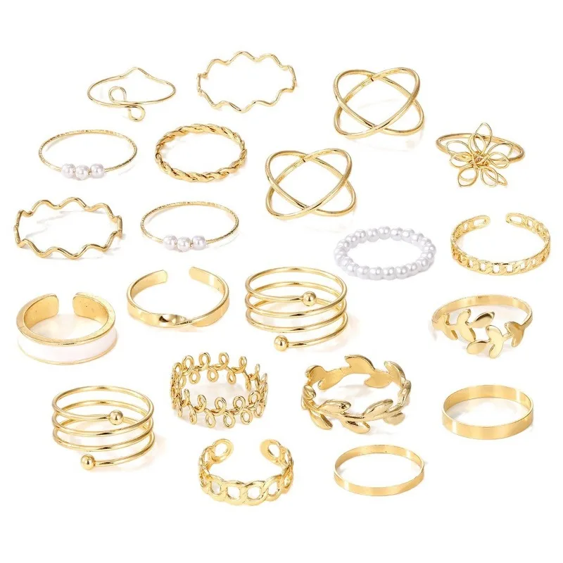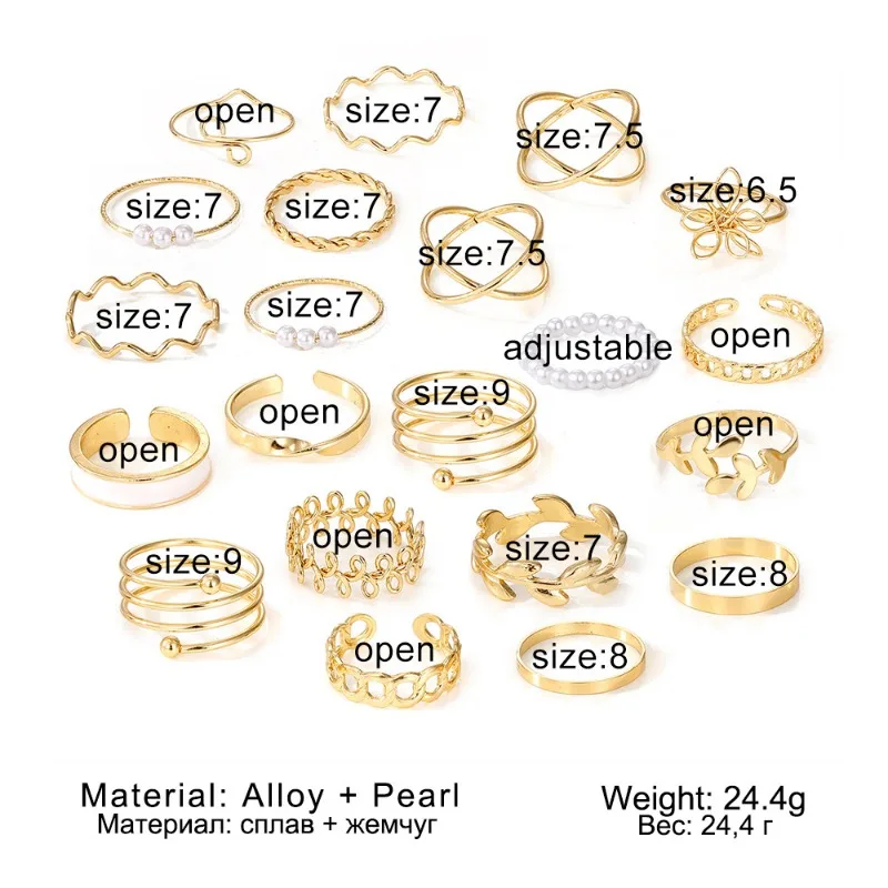 Set di anelli regolabili da donna con perle semplici e amore alla moda da 21 pezzi con apertura regolabile 1Set di anelli regolabili da donna con perle semplici e amore alla moda da 21 pezzi con apertura regolabile