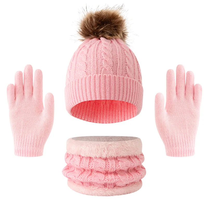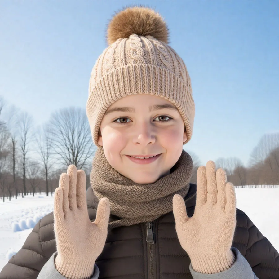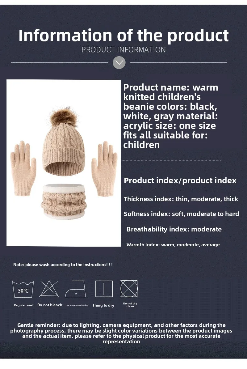 Set di cappelli e guanti da collo per bambini autunno e inverno 3 pezzi 2-12 anni, carino, comodo e caldo, cappelli per ragazzi e ragazze